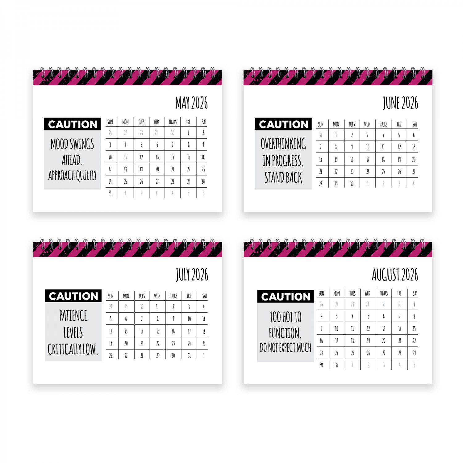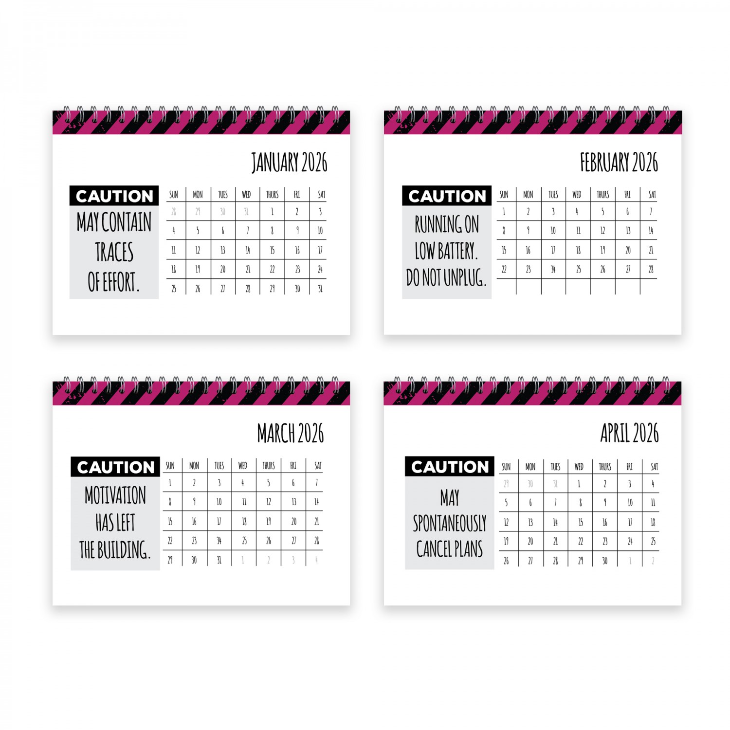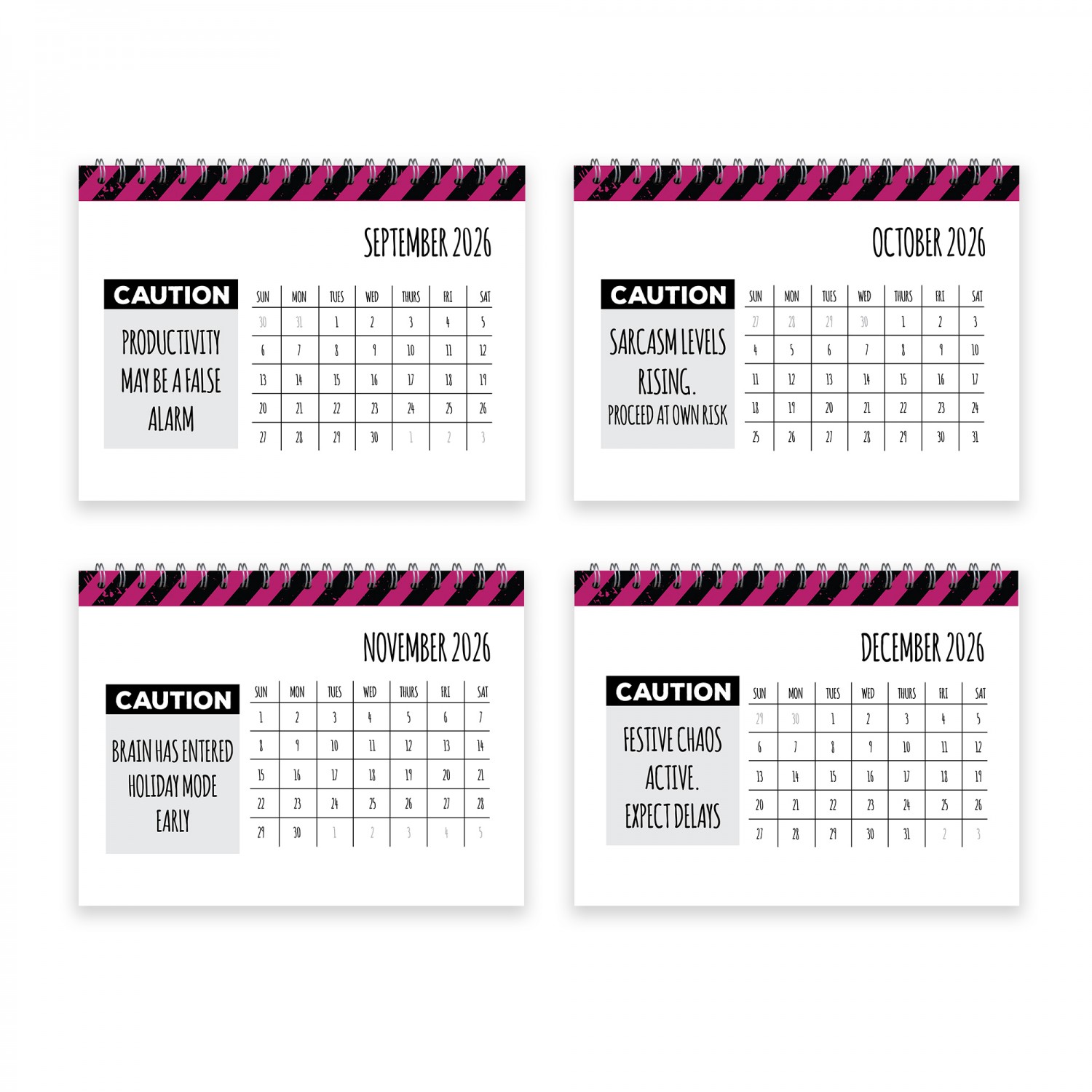 ✔ 2026 funny desk flipbook calendar with bold caution-themed design