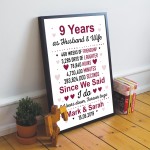 9th Anniversary Gift Personalised Framed Print 9th Anniversary