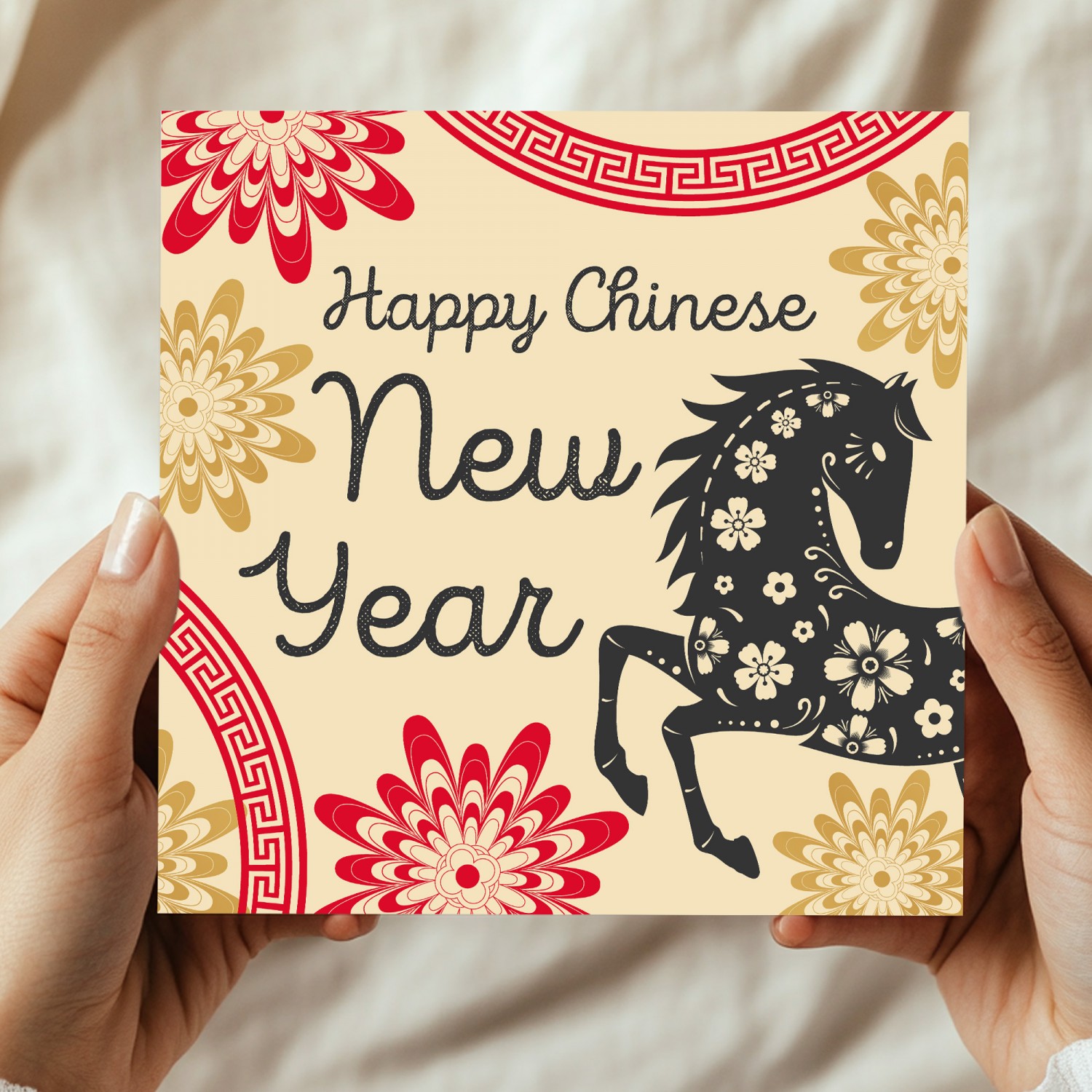 This Chinese New Year card 2026 is perfect for celebrating the Lunar New Year, Spring Festival, and Year of the Horse celebrations. The elegant Horse (Luna) design represents strength, energy, confidence, and forward momentum - ideal for welcoming the new year with positive wishes.