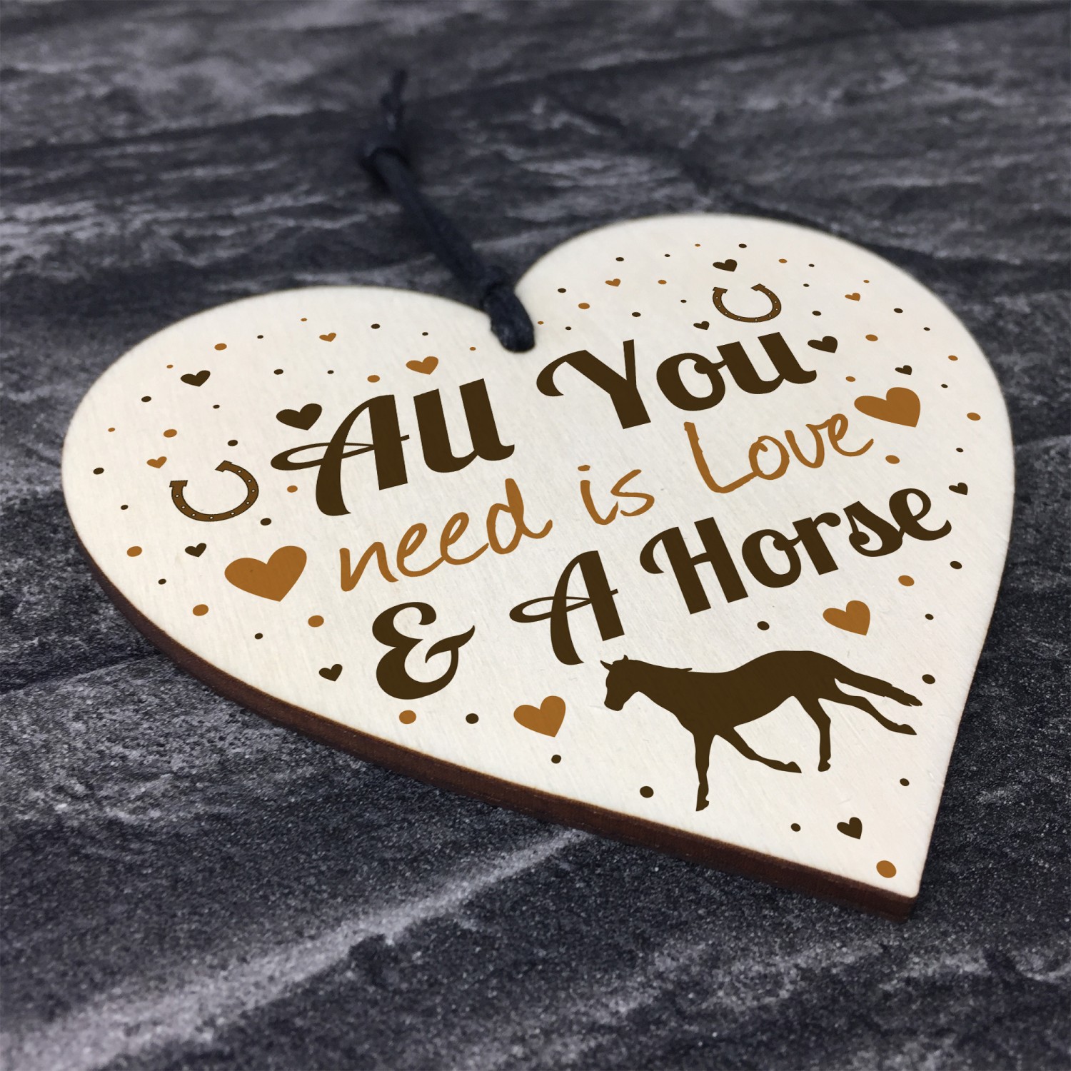 A gorgeous wooden heart plaque printed with a beautiful message that is the perfect gift for any HORSE LOVER, perfect to hang in a girls bedroom or even in a stables!. Give this gift with love and put a smile on the recipients face every time they read it.