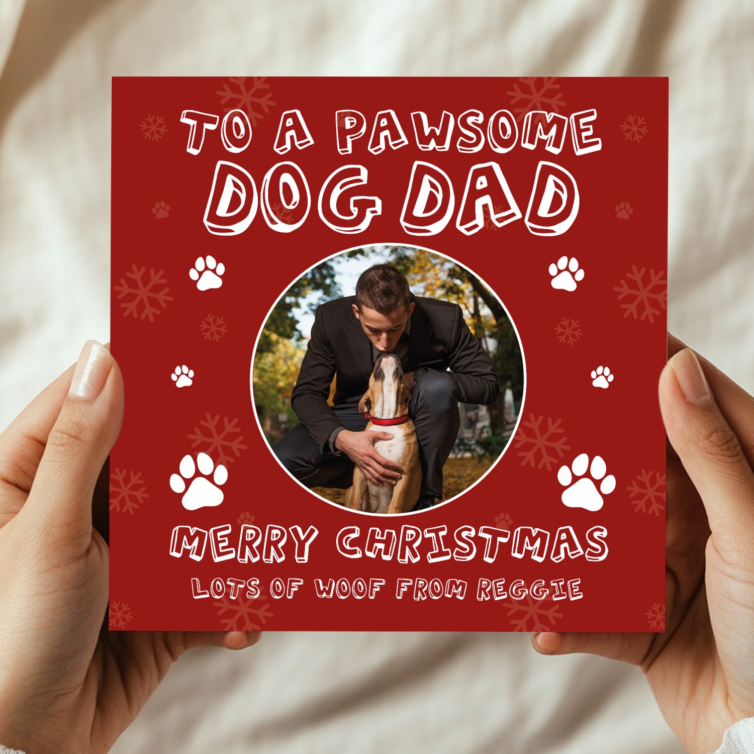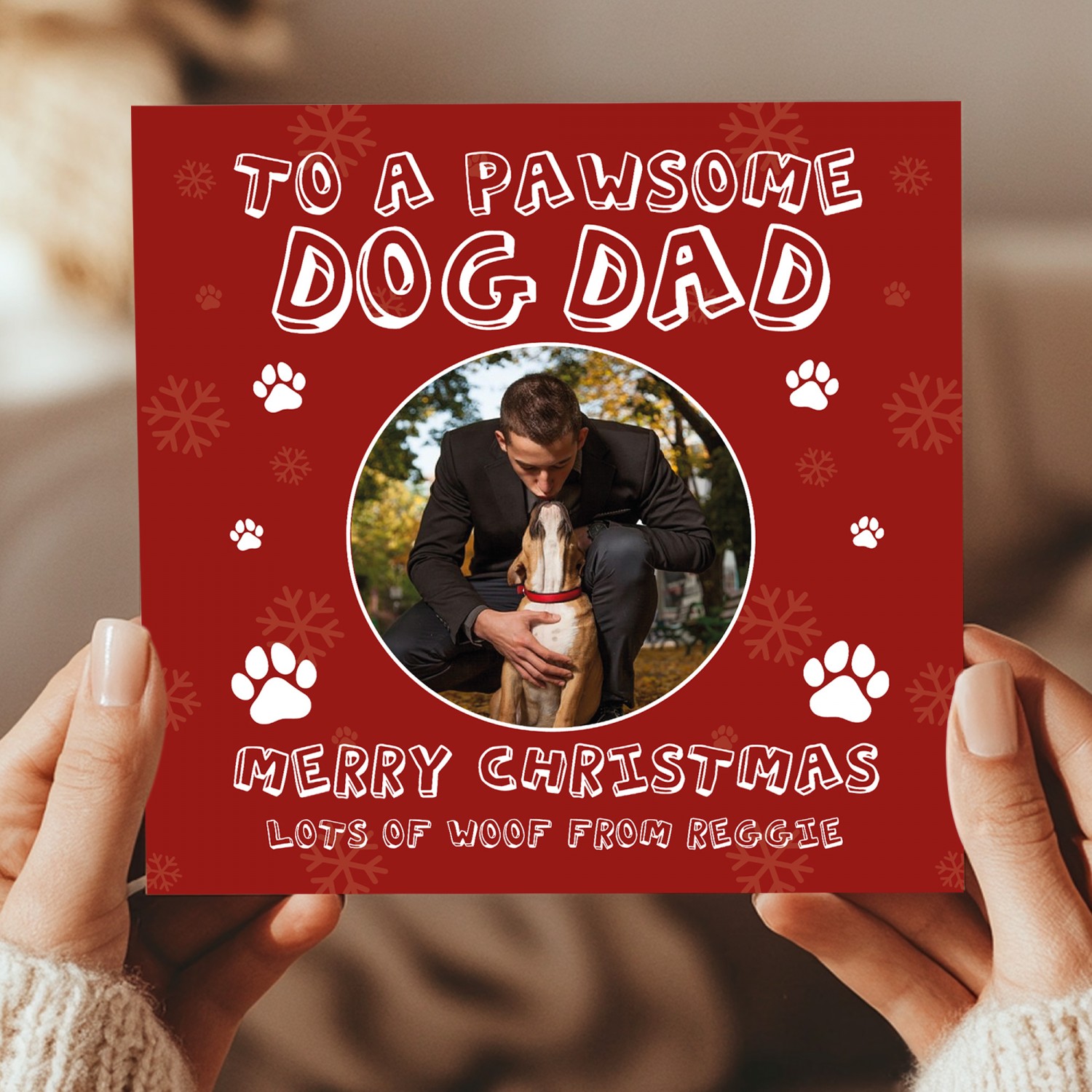 Merry Christmas Card For Pawsome Dog Dad Personalised Photo Card