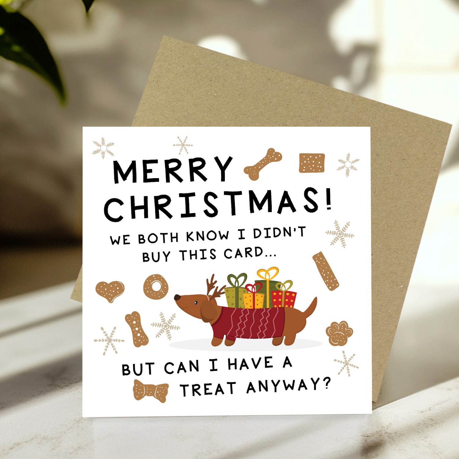 Merry Christmas Card From Puppy Dog With Kraft Envelope Funny