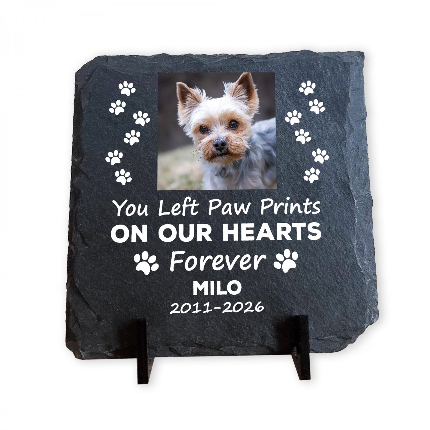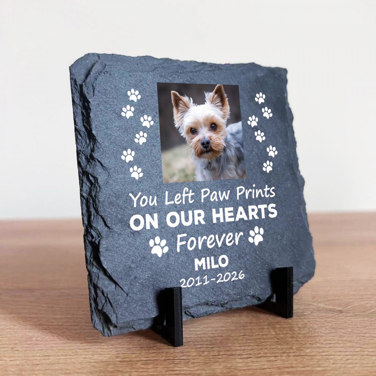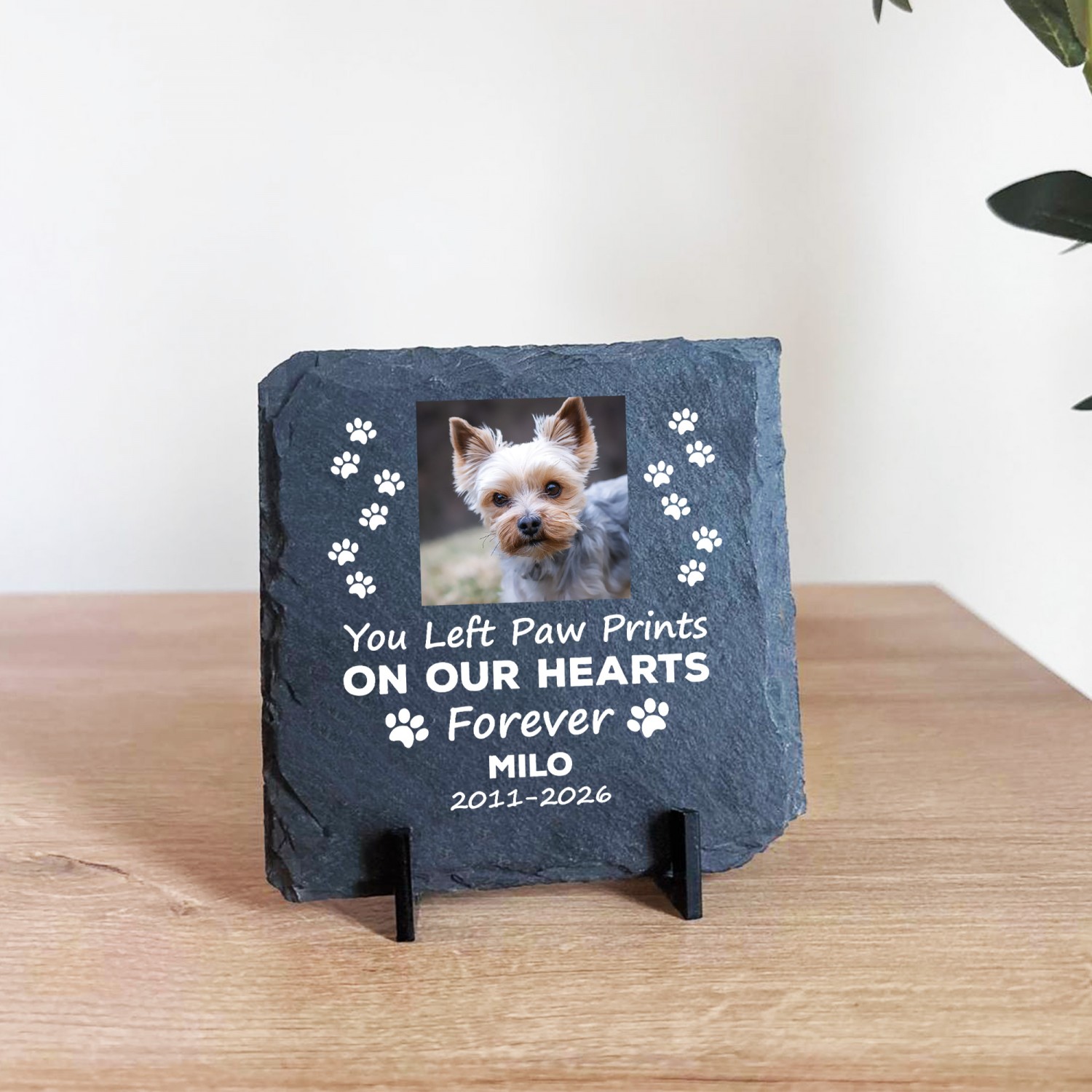 Personalised Slate Pet Memorial Plaque with Photo Custom Engraved Dog or Cat Remembrance Keepsake Freestanding Natural Slate Tribute 10x10cm