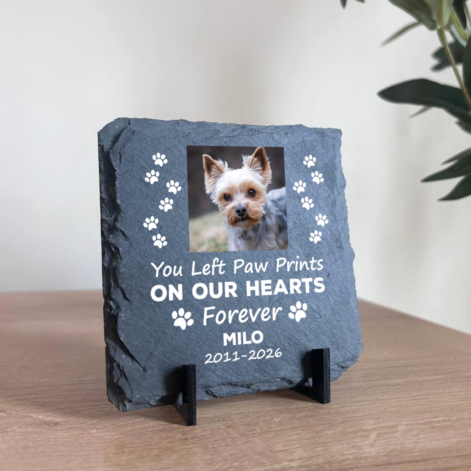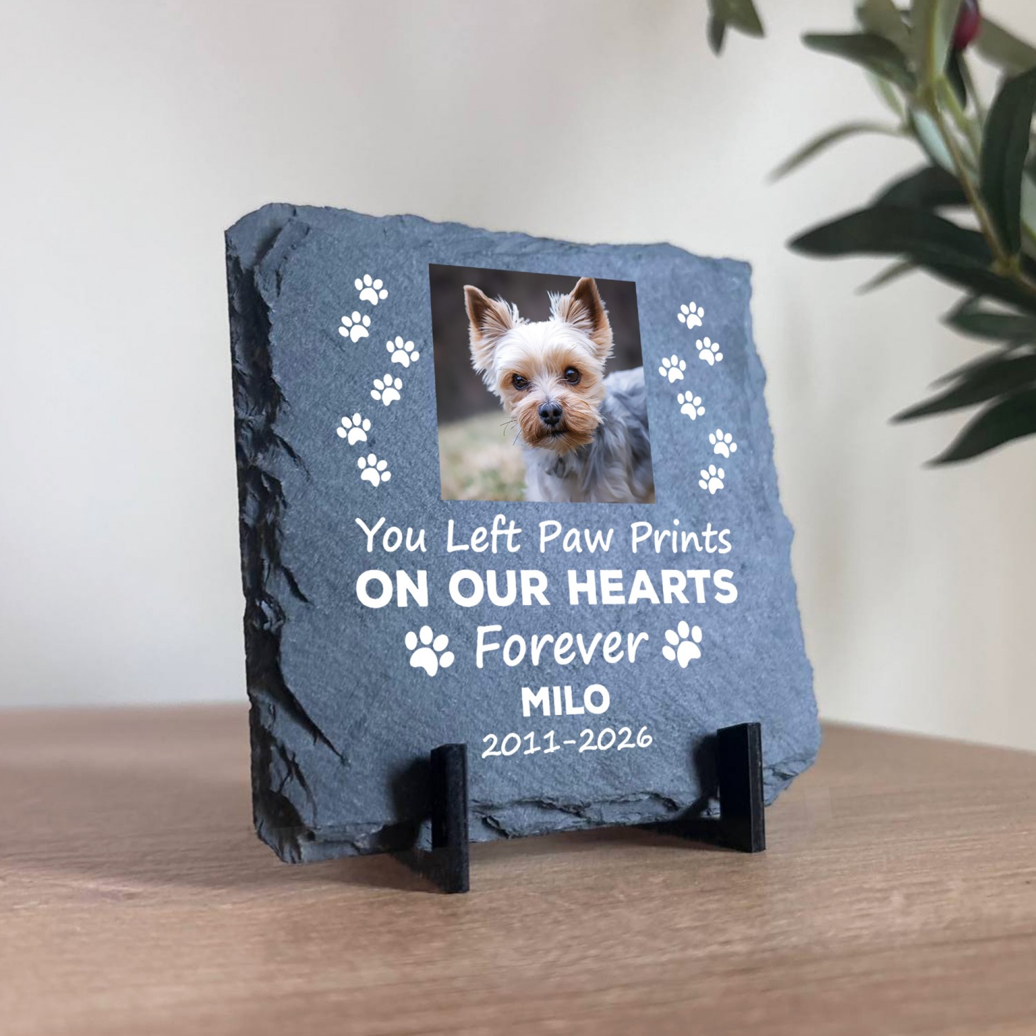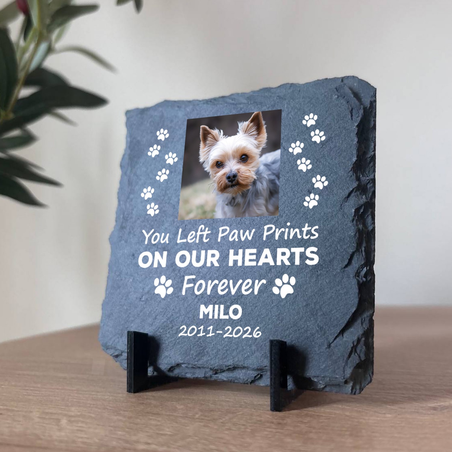 Personalised Slate Pet Memorial Plaque with Photo Custom Engraved Dog or Cat Remembrance Keepsake Freestanding Natural Slate Tribute 10x10cm