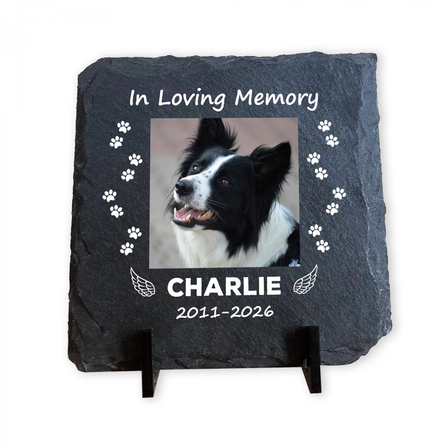 Personalised Slate Pet Memorial Plaque with Photo Custom Engraved Dog or Cat Remembrance Keepsake Freestanding Natural Slate Tribute 10x10cm