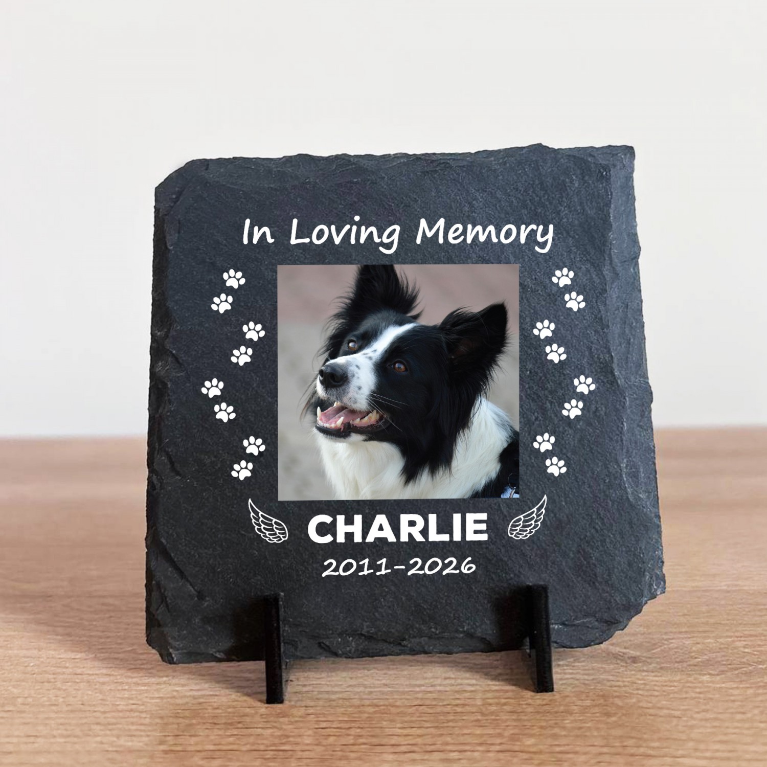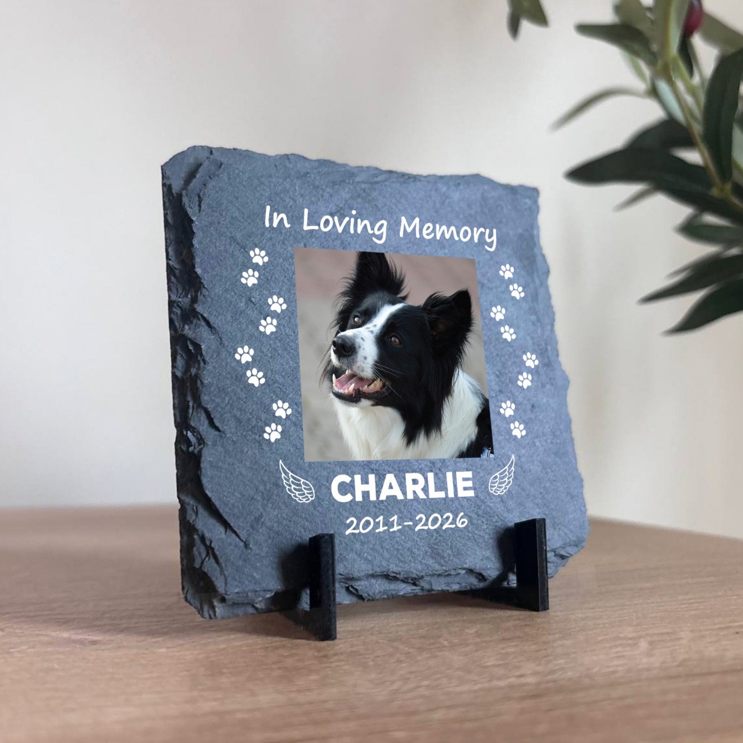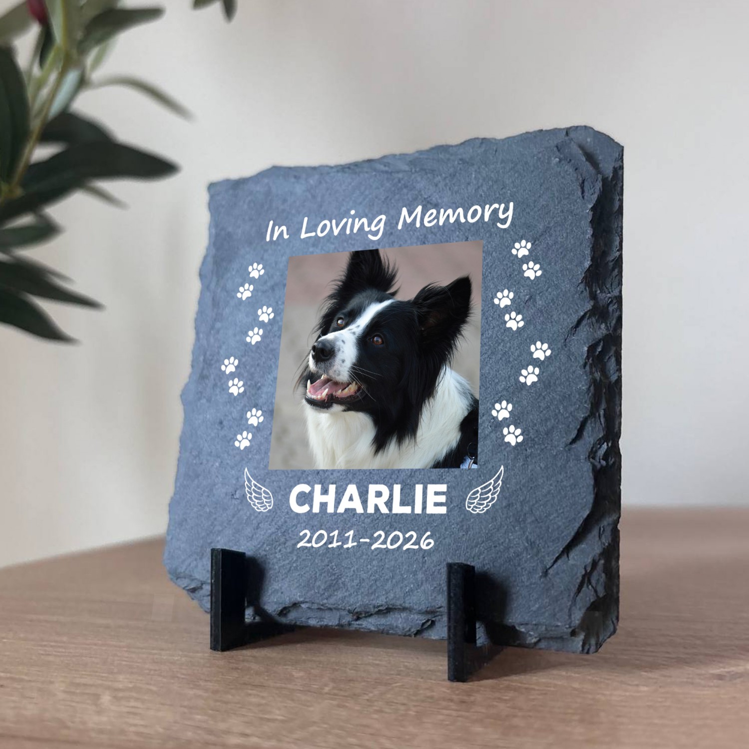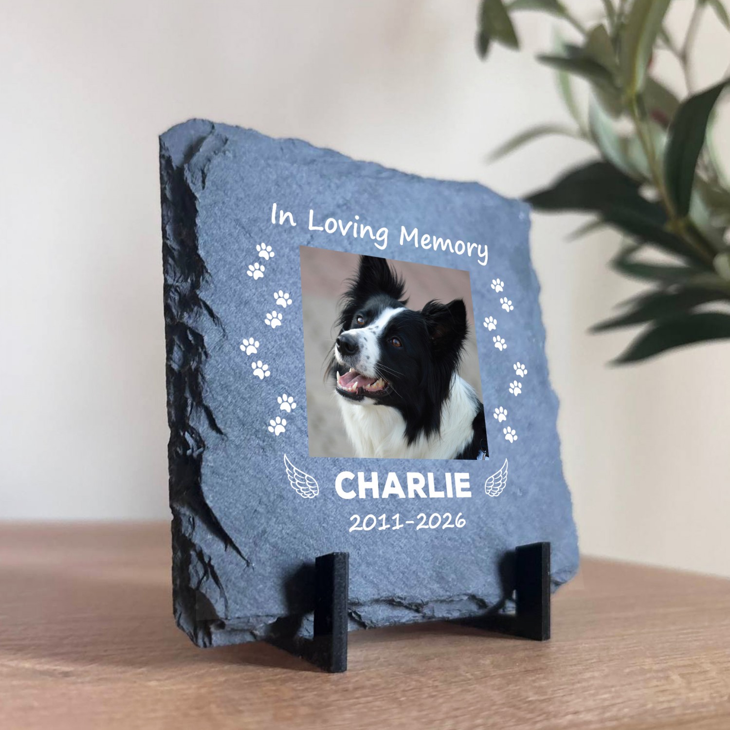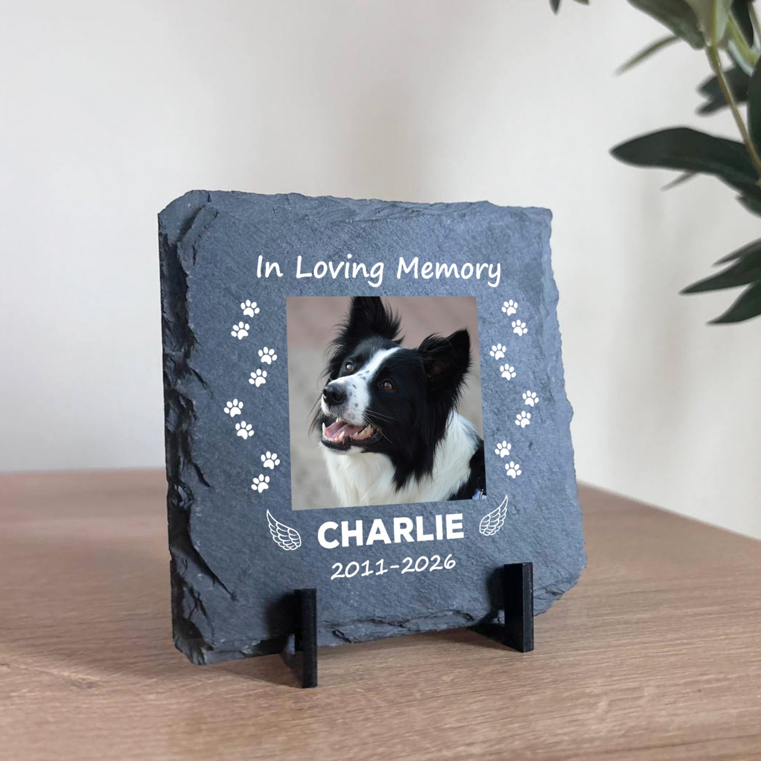 Made from genuine natural slate and professionally printed with your chosen photo name and dates this elegant pet remembrance plaque captures precious memories in a heartfelt and lasting way. Whether for a dog cat or any cherished pet this personalised memorial gift offers comfort during difficult times and creates a meaningful keepsake to treasure forever.