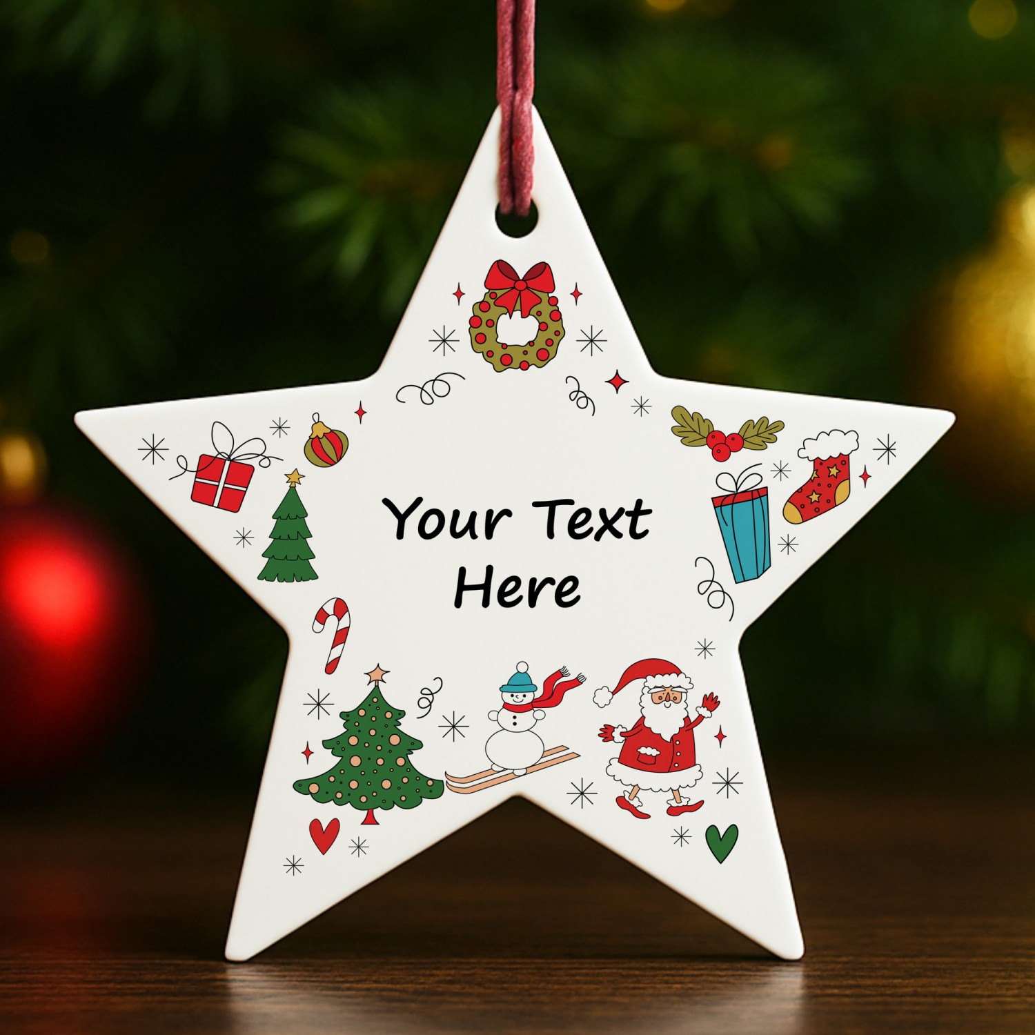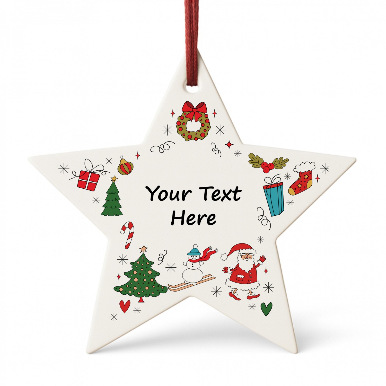 Ideal as a personalised Christmas bauble for families, children, couples, or friends, this star also makes a thoughtful gift for special occasions such as housewarmings, engagements, weddings, or a baby�s first Christmas. Its versatile custom text option means it can be tailored to celebrate any milestone, creating a keepsake that will be cherished year after year.