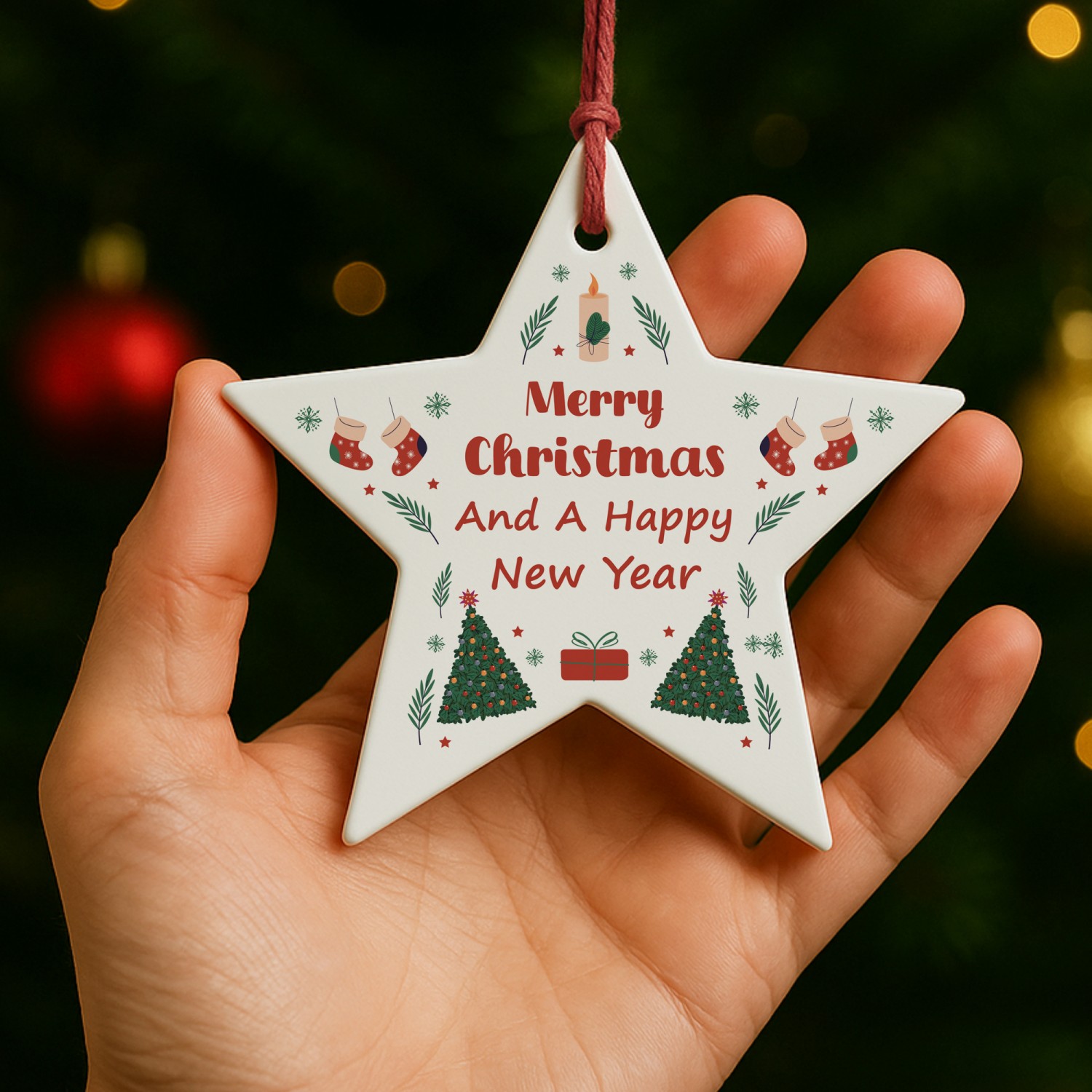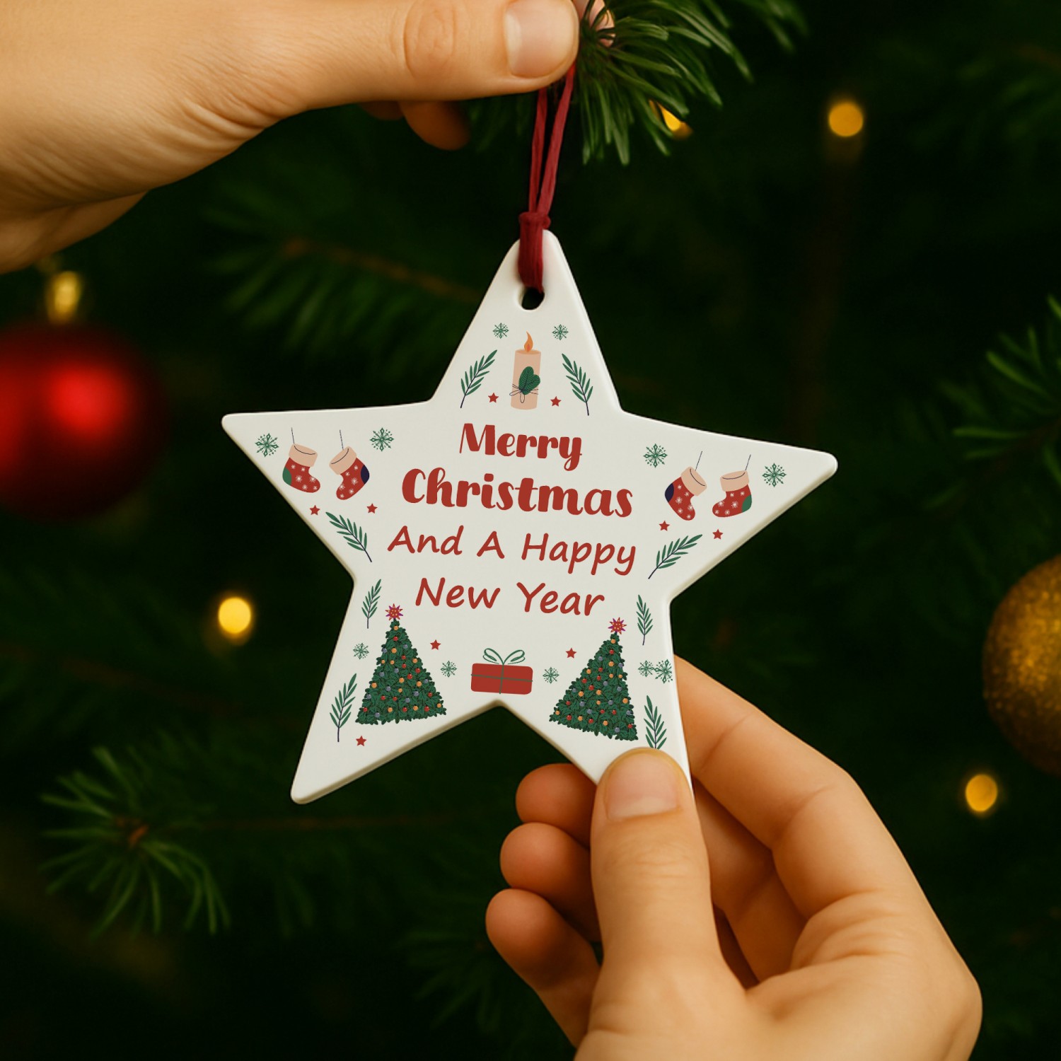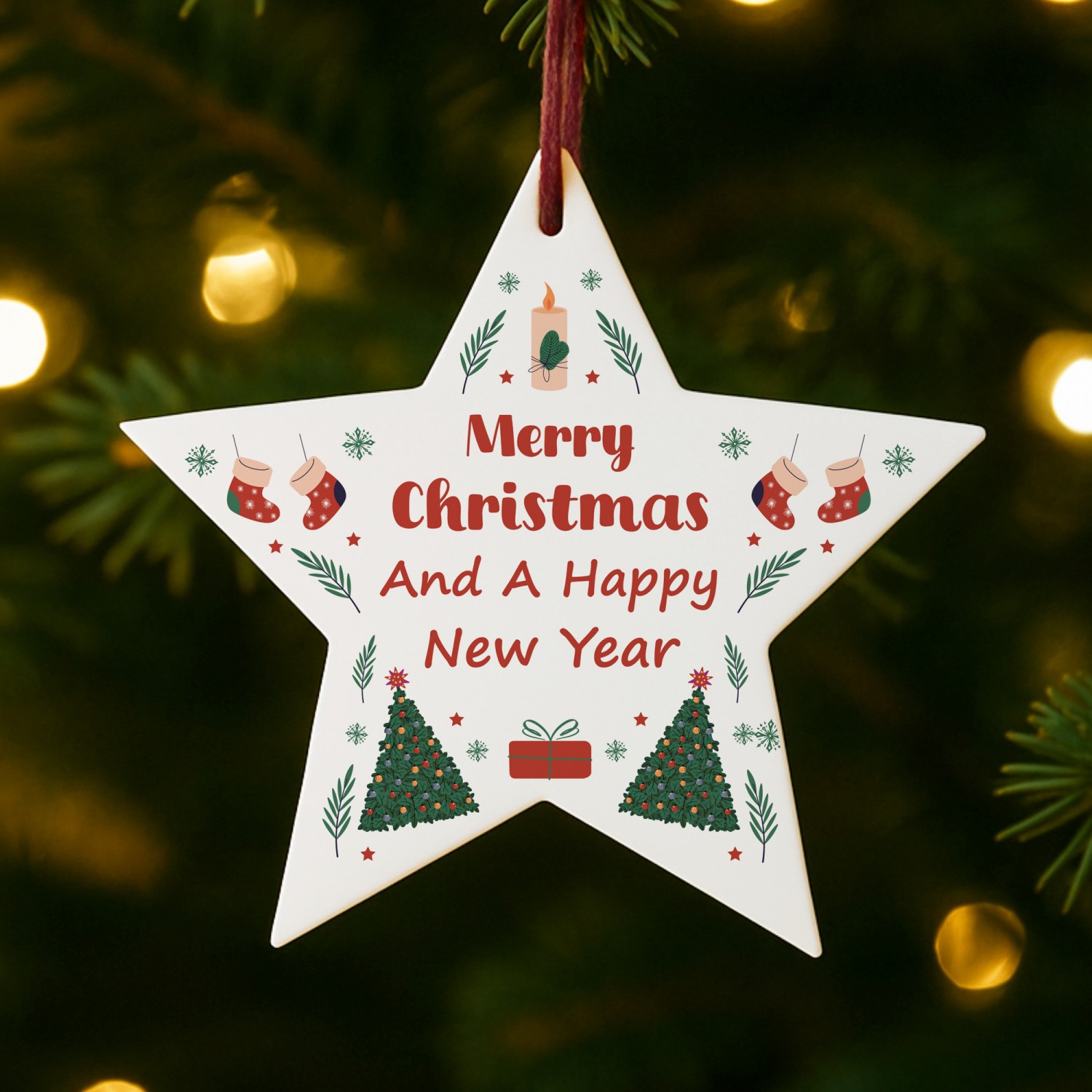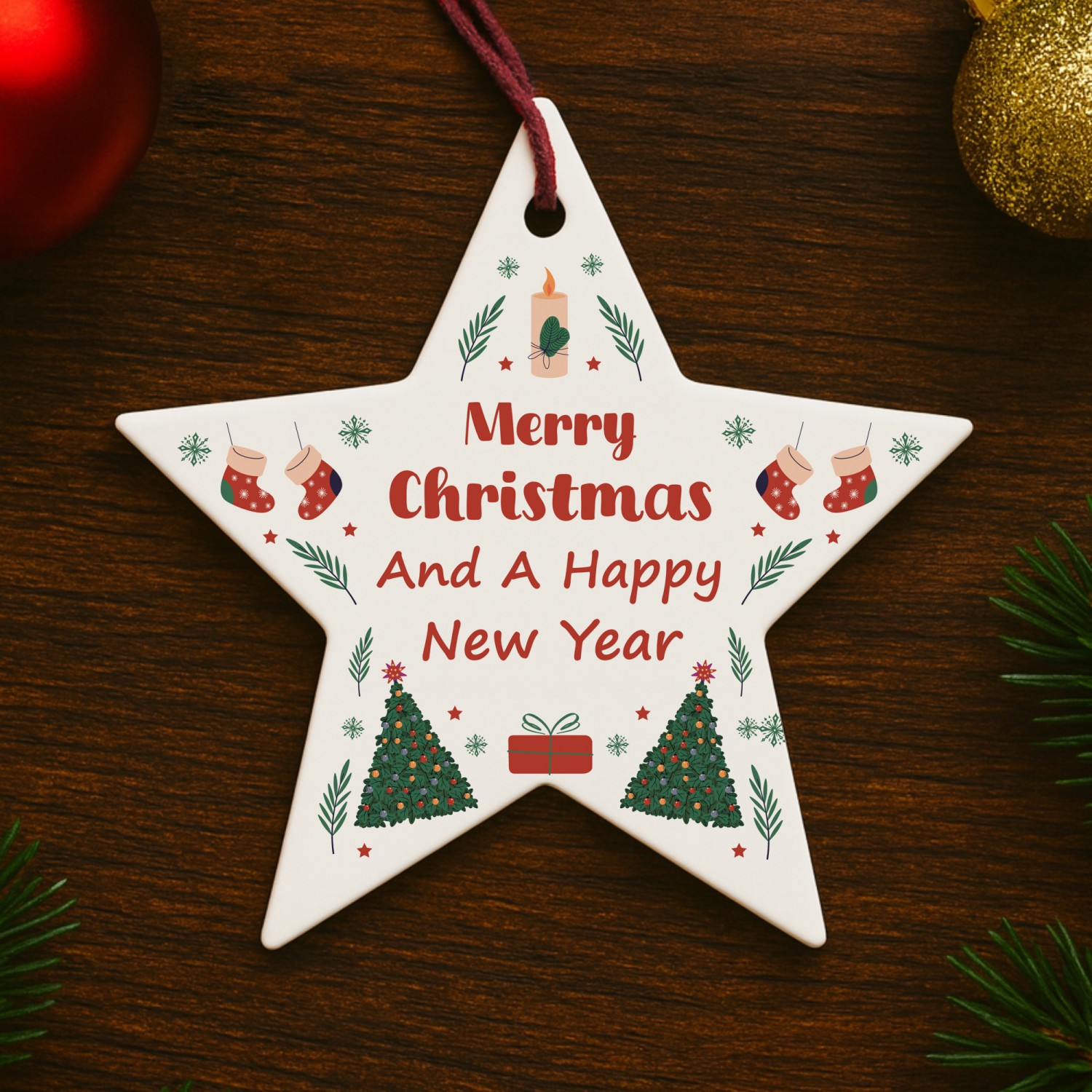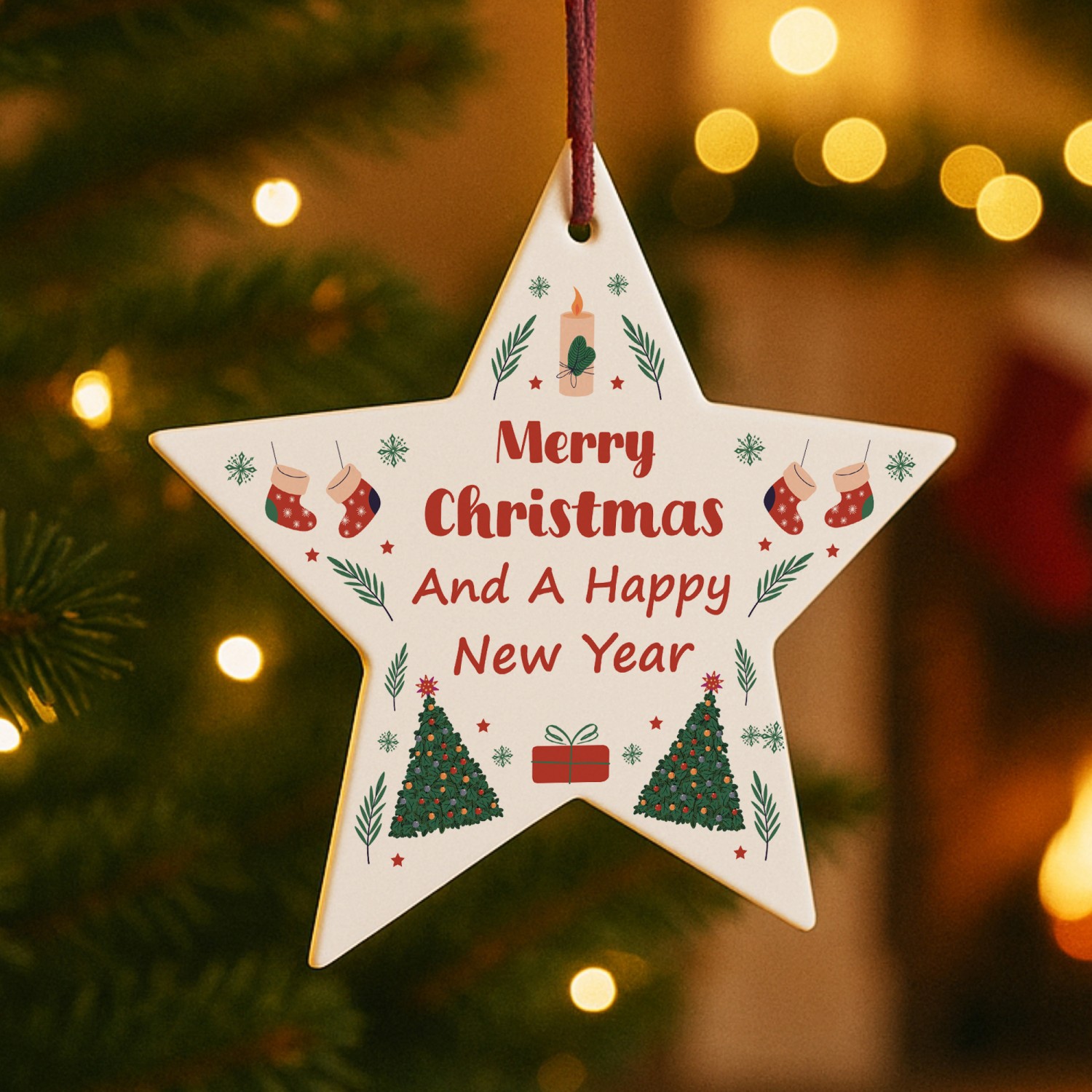 Merry Christmas And A Happy New Year Bauble Xmas Tree Ornament