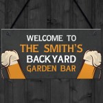 Personalised Back Yard Bar Sign Home Bar Man Cave Pub Plaque