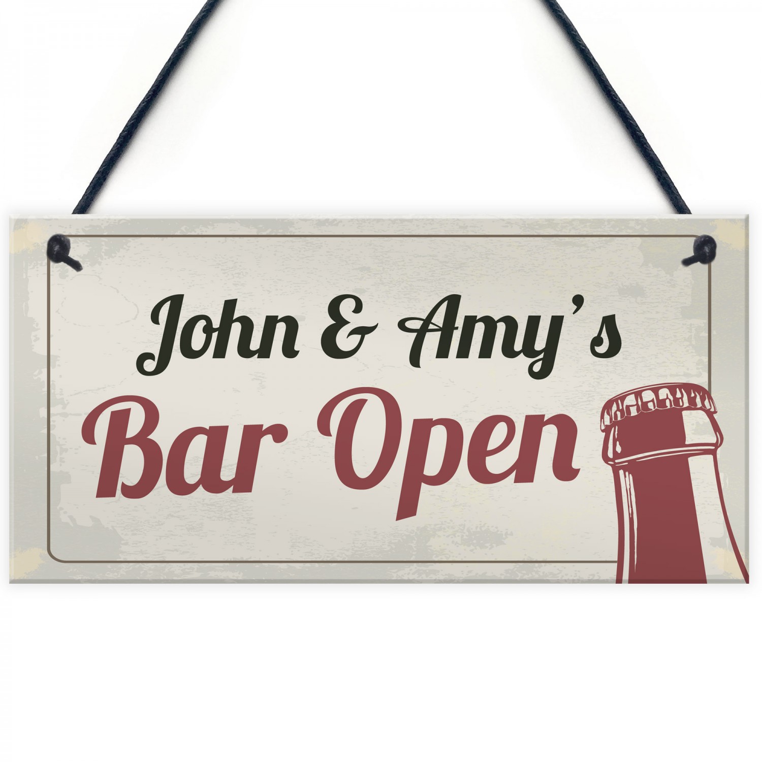 The perfect personalised home bar sign! Let everyone know when your bar is open! A stylish novelty hanging sign that will look fantastic hung up in your home, add a personalised touch to your home today. This gorgeous plaque makes an amazing Birthday or Christmas gift but is also a great gift anytime of the year. Supplied ready to hang, a beautiful keepsake that will be treasured for years to come.