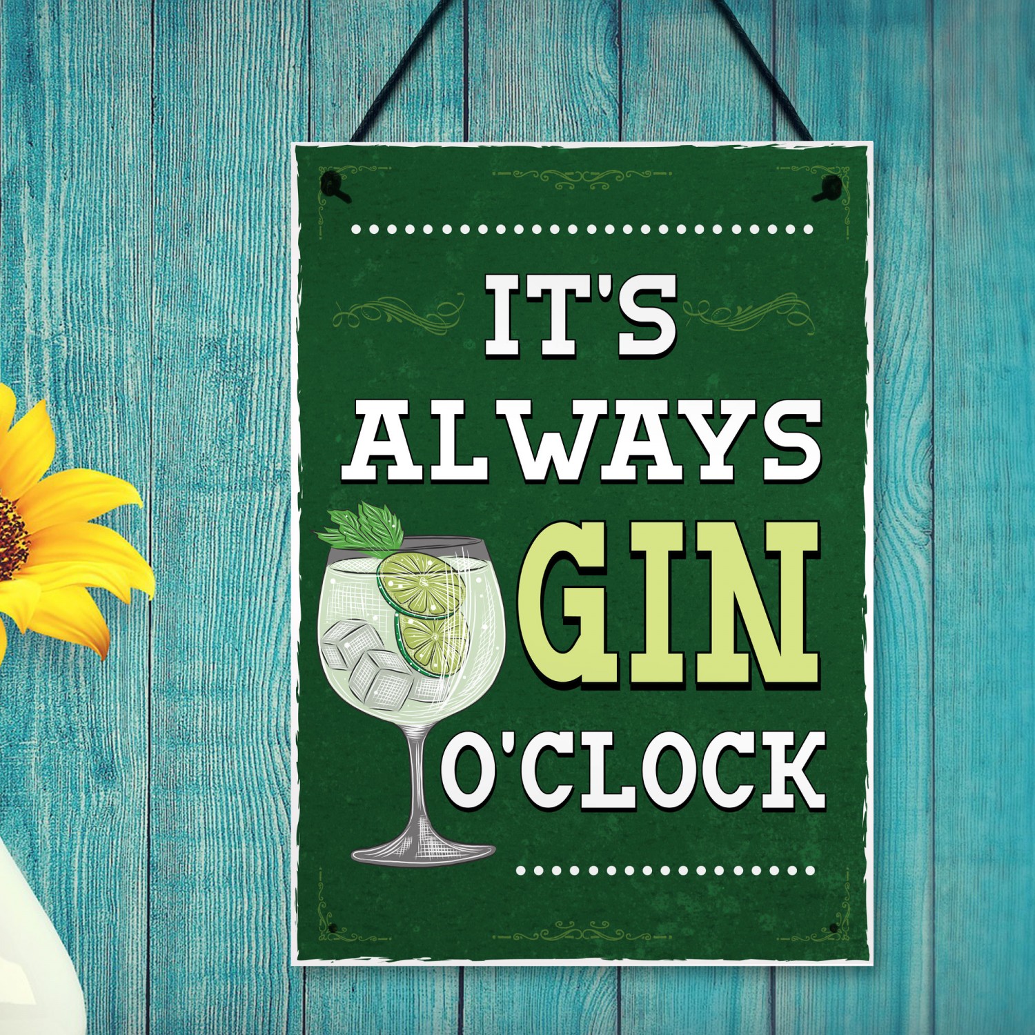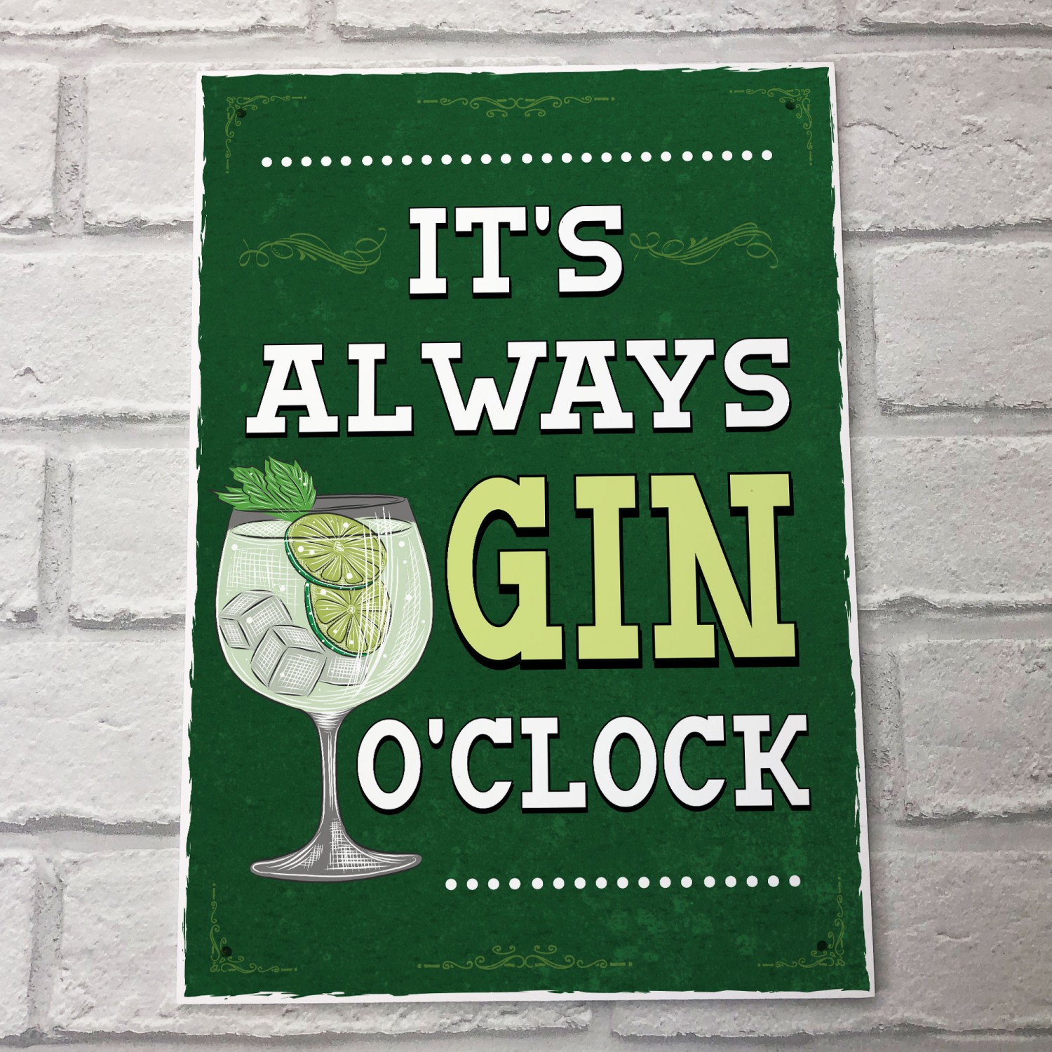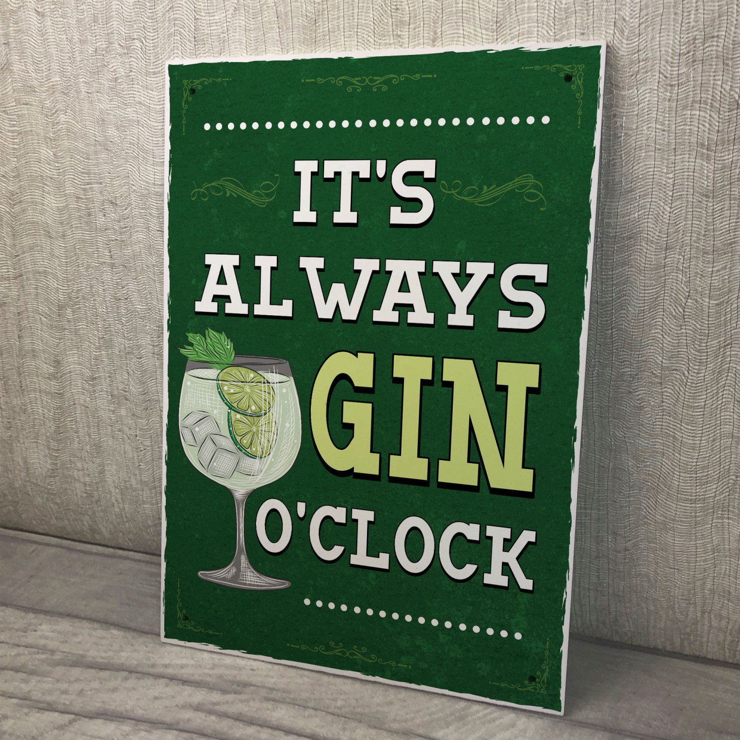 Retro Style Its Always Gin OClock Bar Sign Gin Lover Gift Decor
