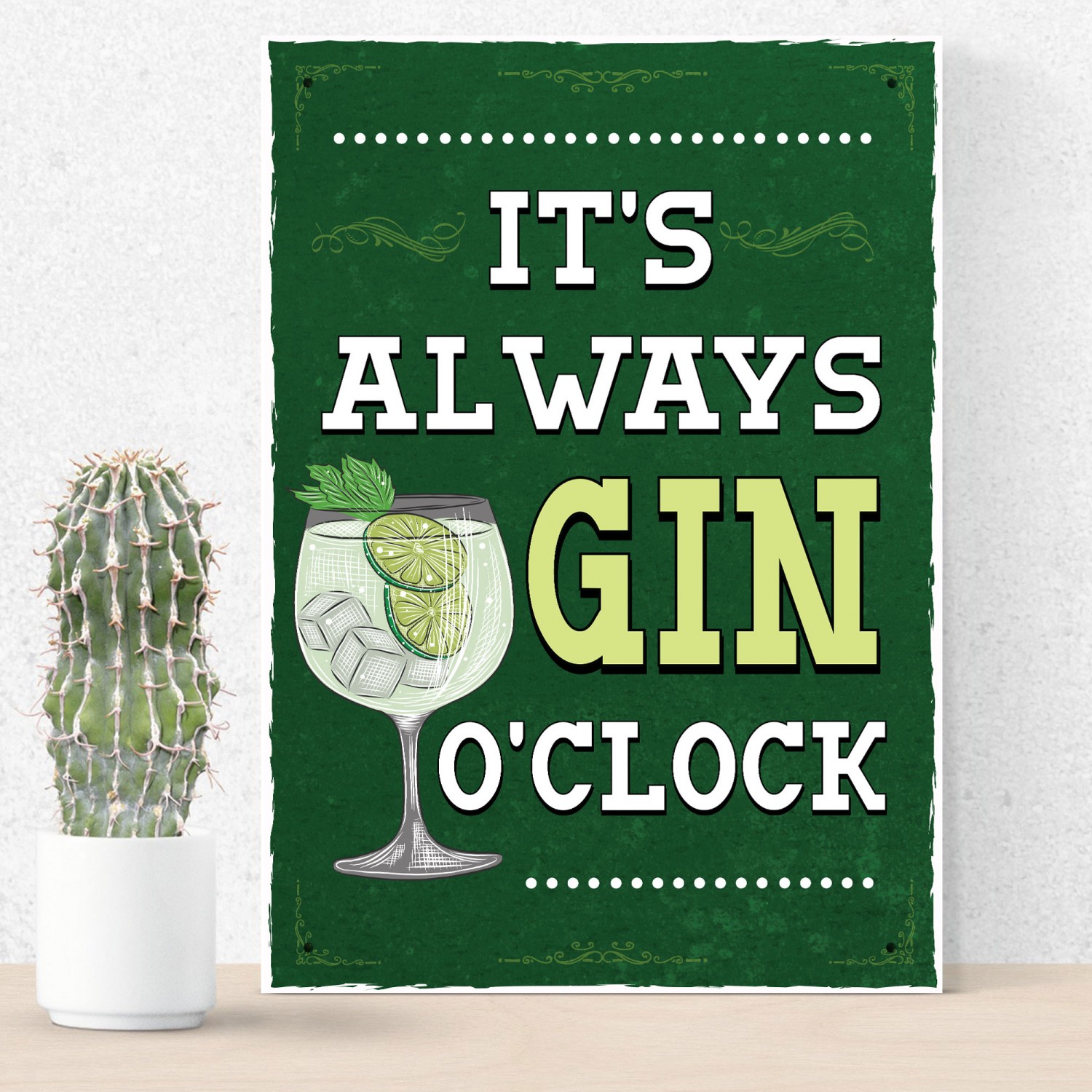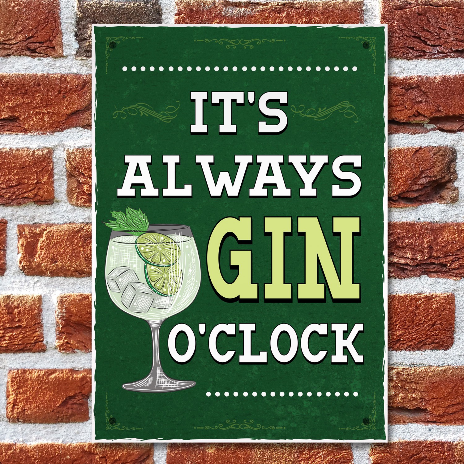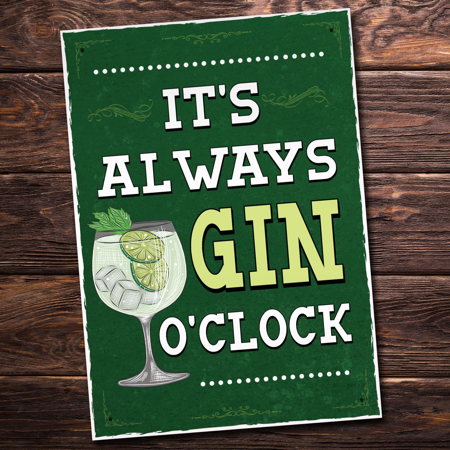Retro Style Its Always Gin OClock Bar Sign Gin Lover Gift Decor
