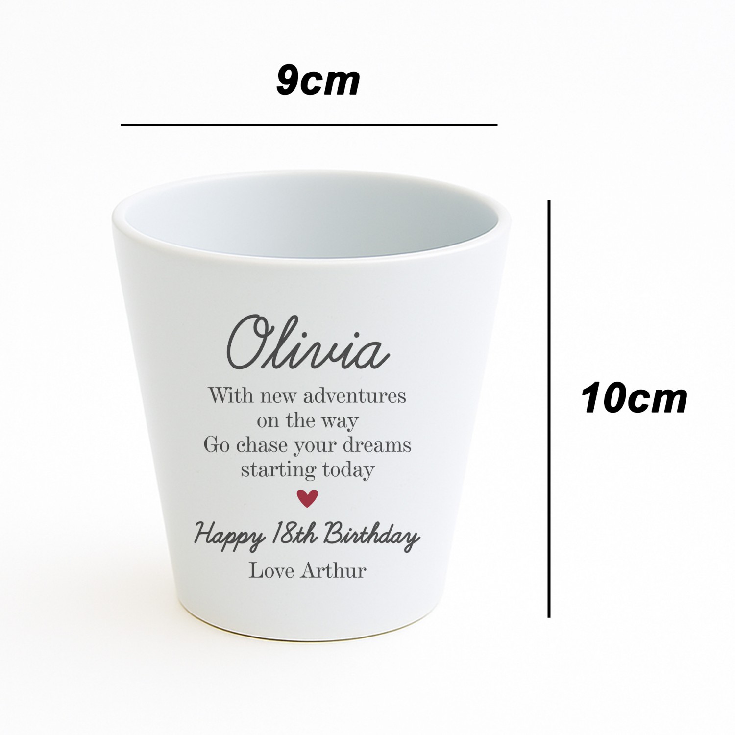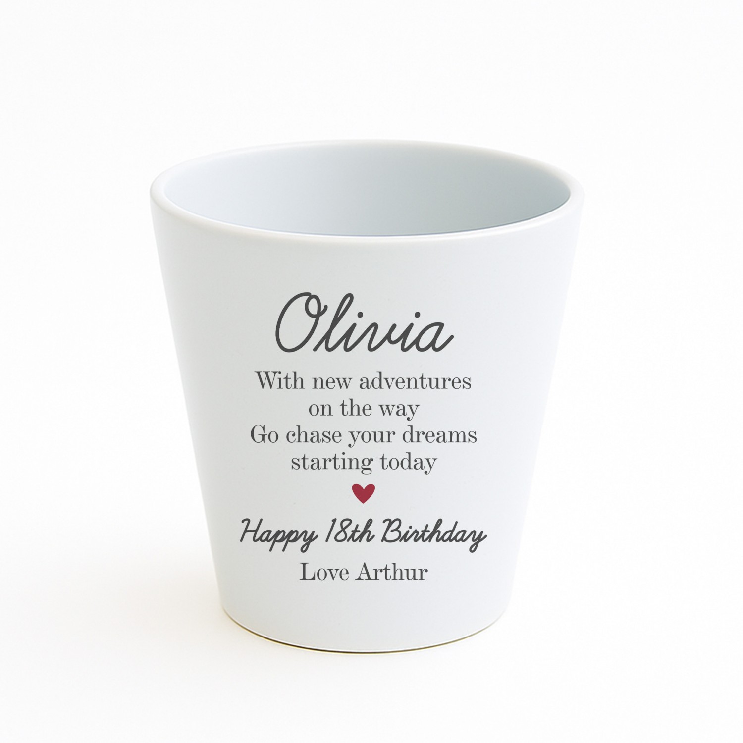 The ULTIMATE Gift for a friend or family member who deserves a blooming reminder of how loved they are! Celebrate their 18th Birthday, with this beautiful ceramic flower pot, the perfect blend of heartfelt gratitude and everyday charm. This pot is a touching tribute to their love!