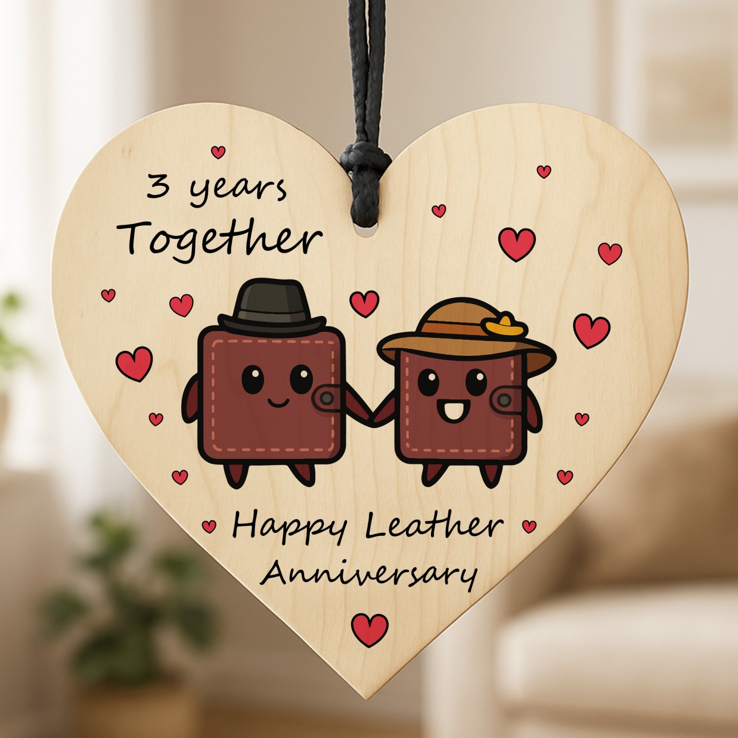 The sign is made from high quality, and the design is permanently printed into the heart. The wooden heart is supplied with waxed cotton rope in both black and red colours to allow easy hanging and looks great in any room of the house.