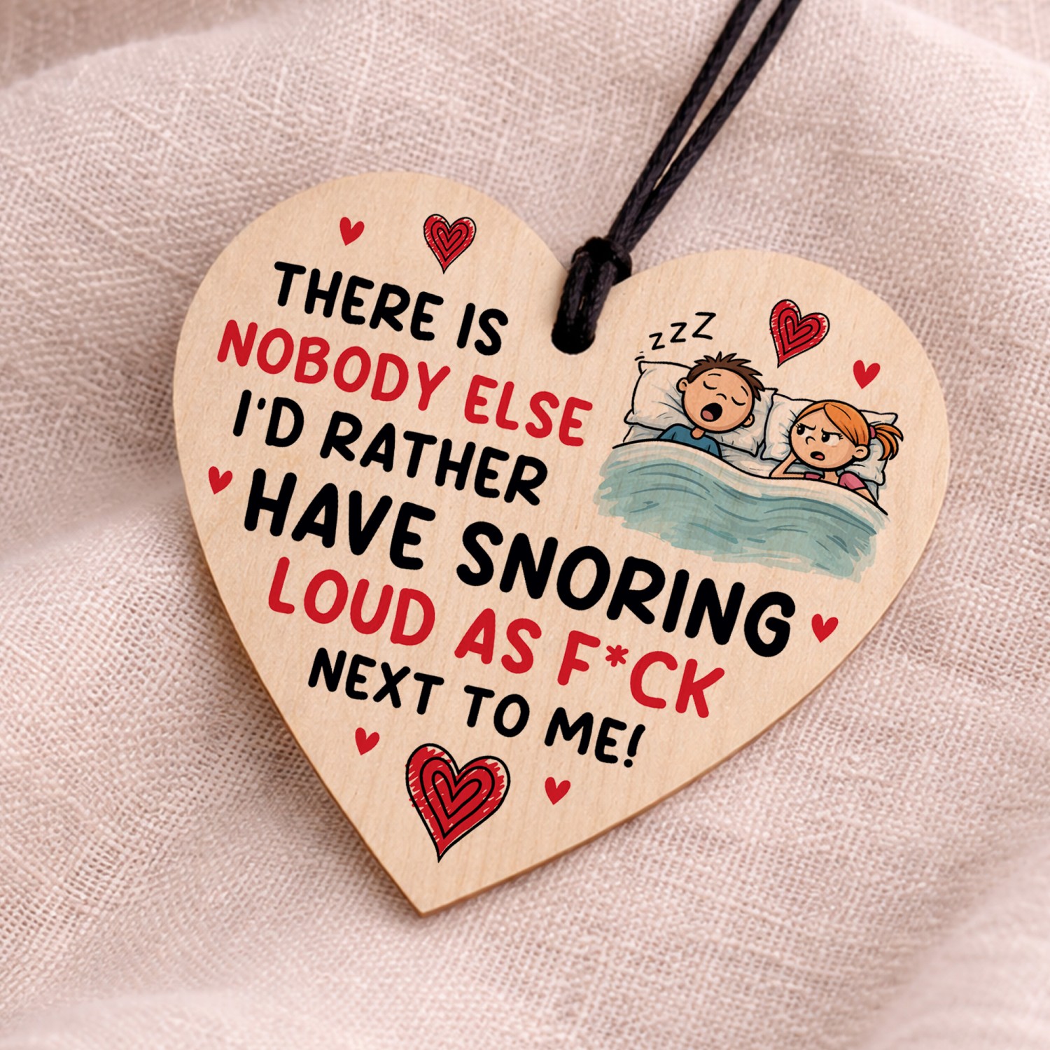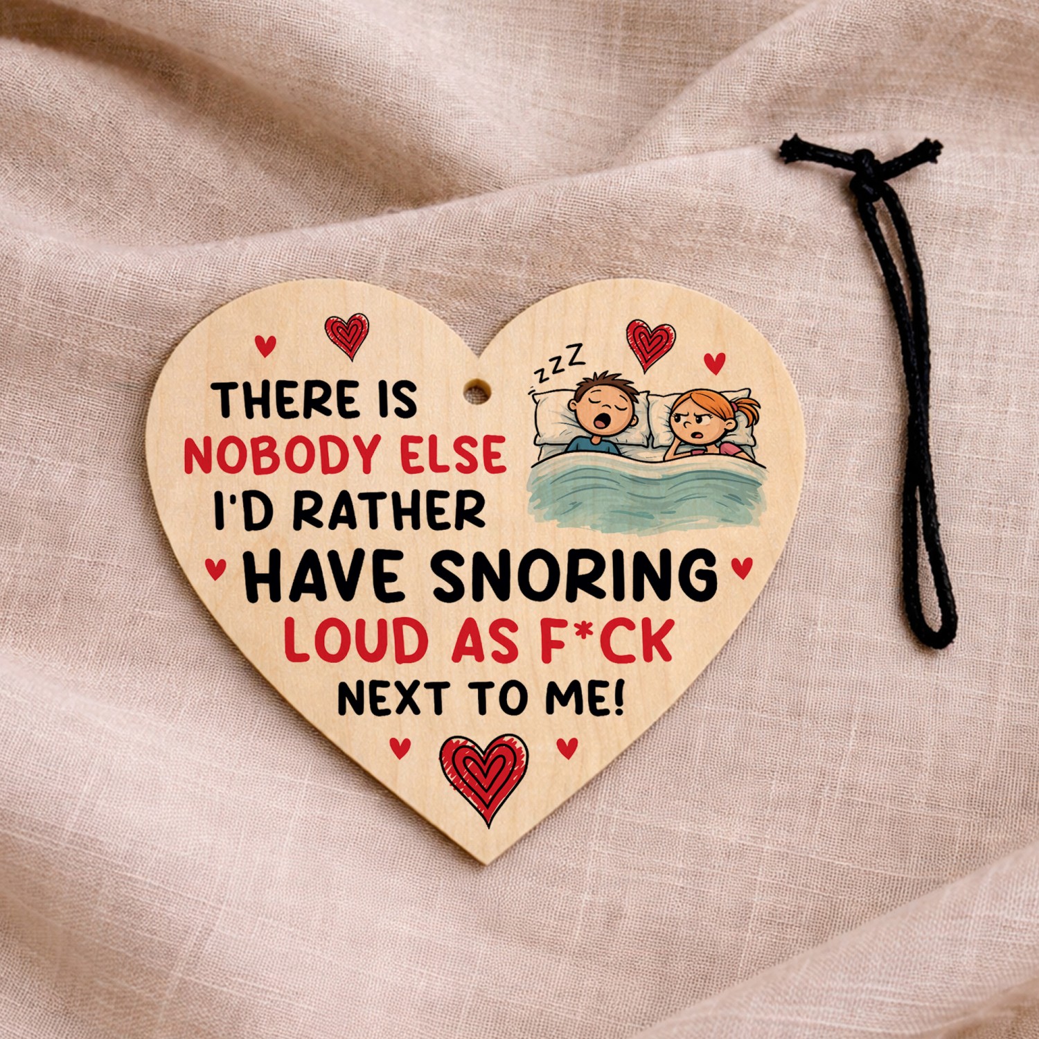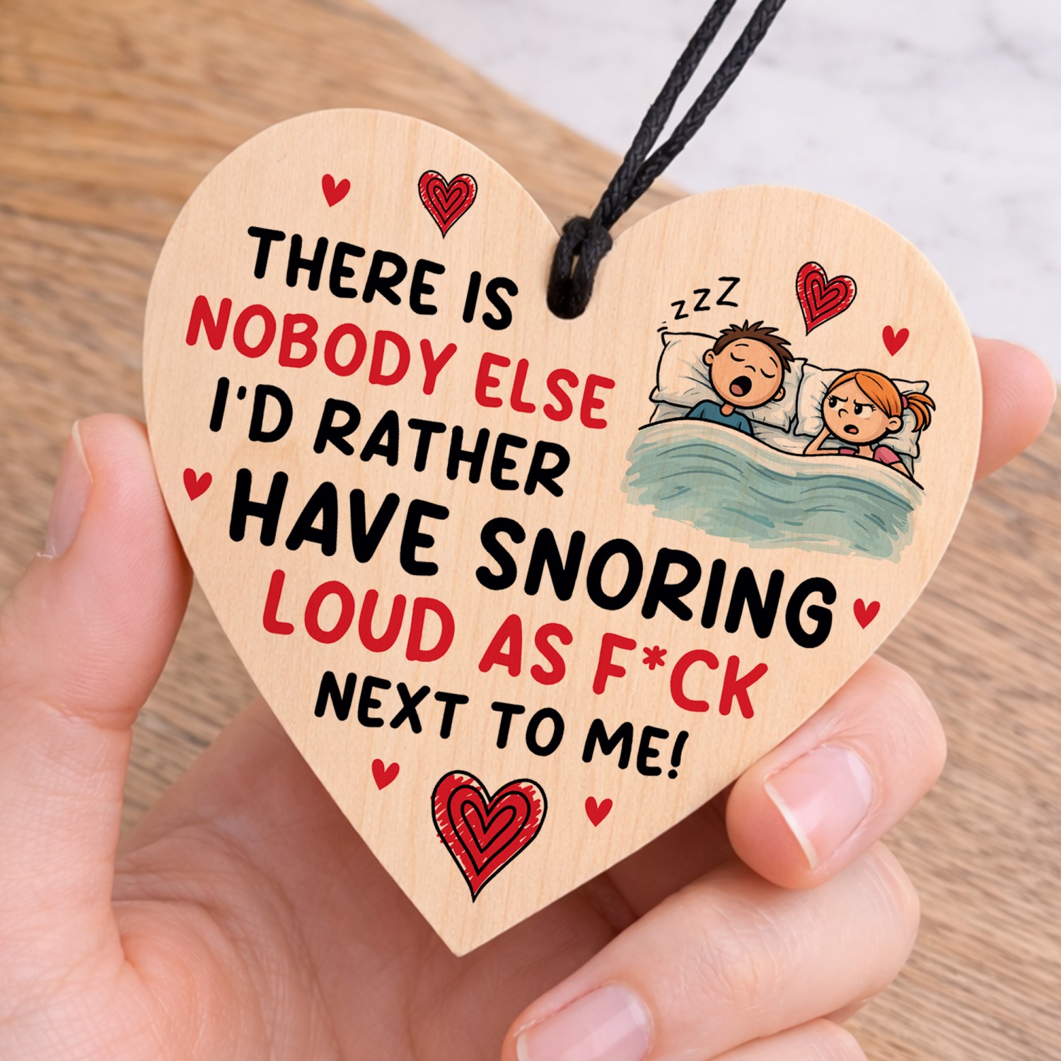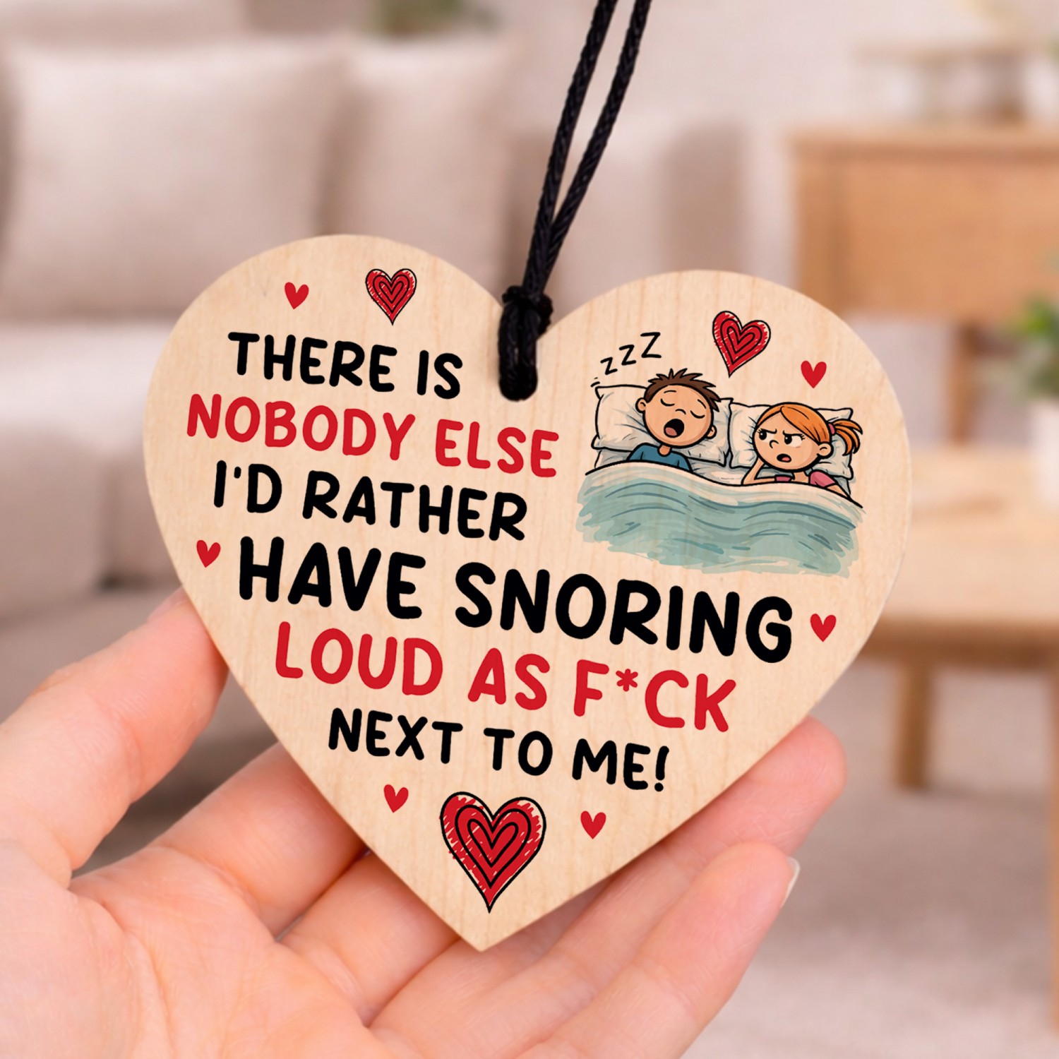The sign is made from high quality, and the design is permanently printed into the heart. The wooden heart is supplied with waxed cotton rope in both black and red colours to allow easy hanging and looks great in any room of the house.