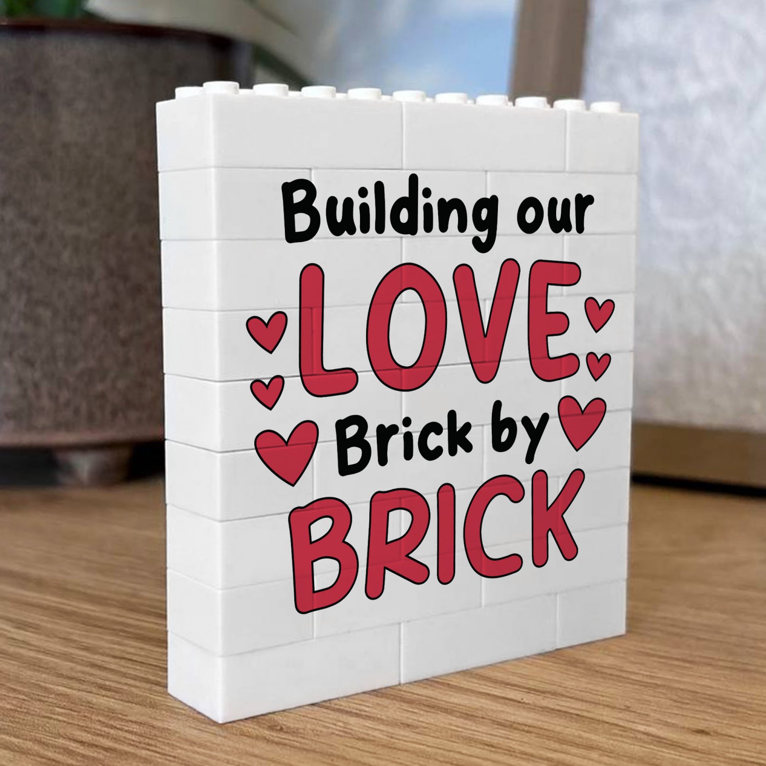 Whether you are looking for a romantic home decor piece, a novelty couples gift, or a unique Valentines keepsake, this white building block display offers a memorable alternative to traditional cards or framed prints.