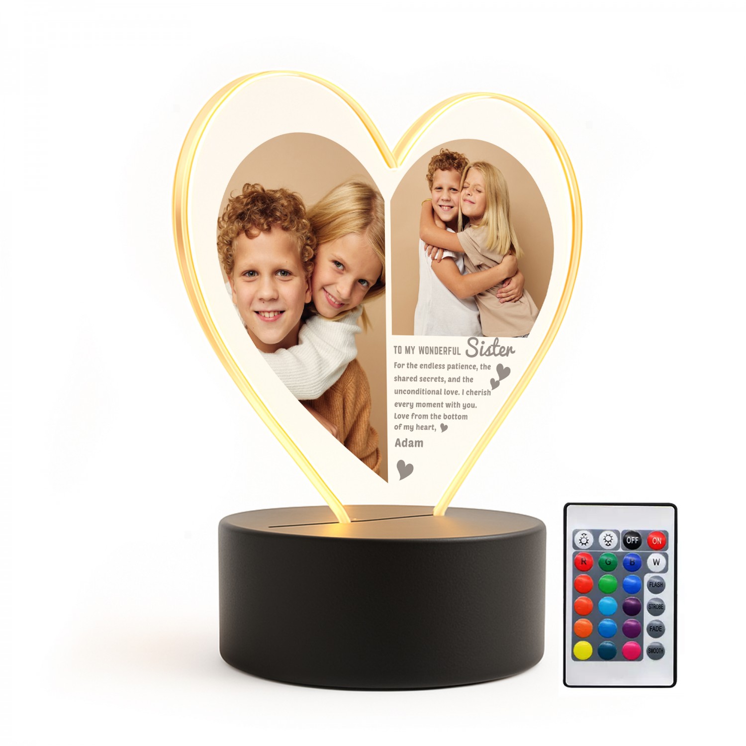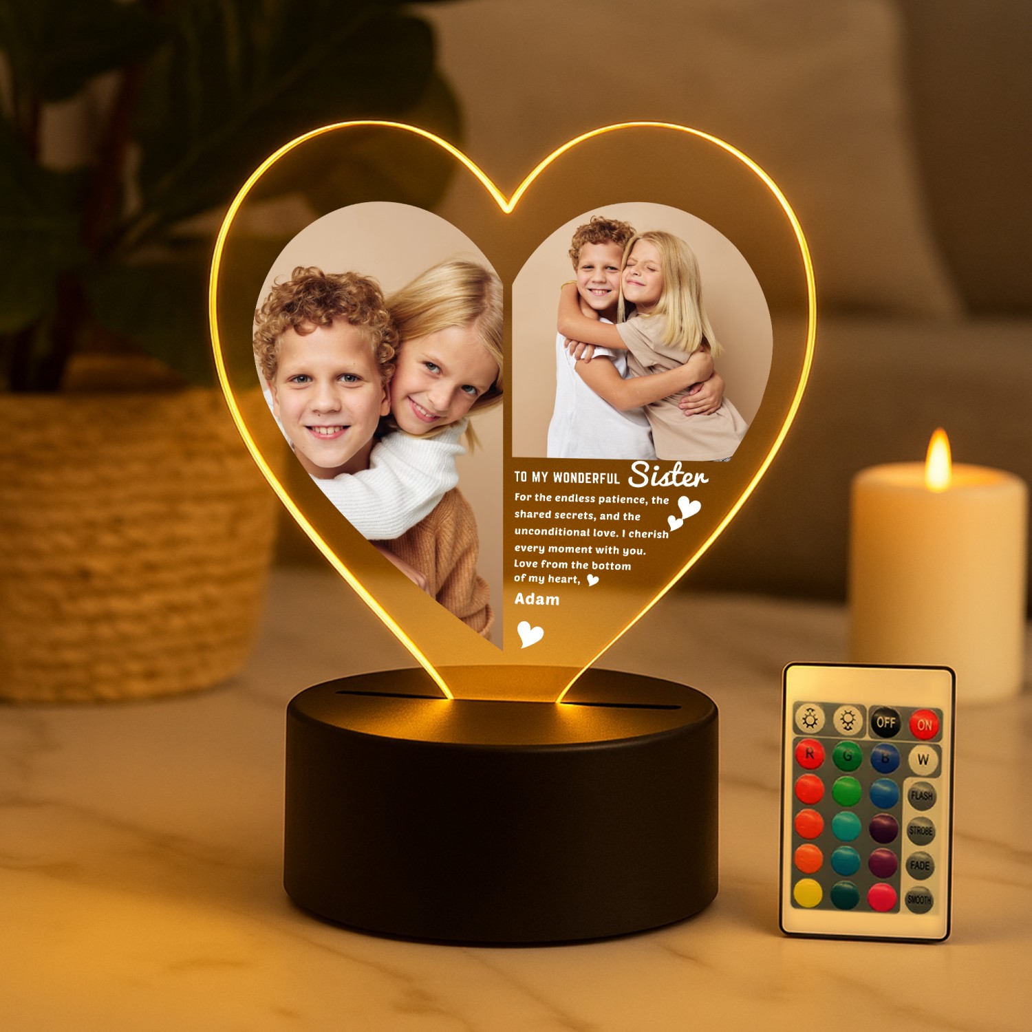 Custom Sister Gift Photo Plaque With LED Light Gift For Sister