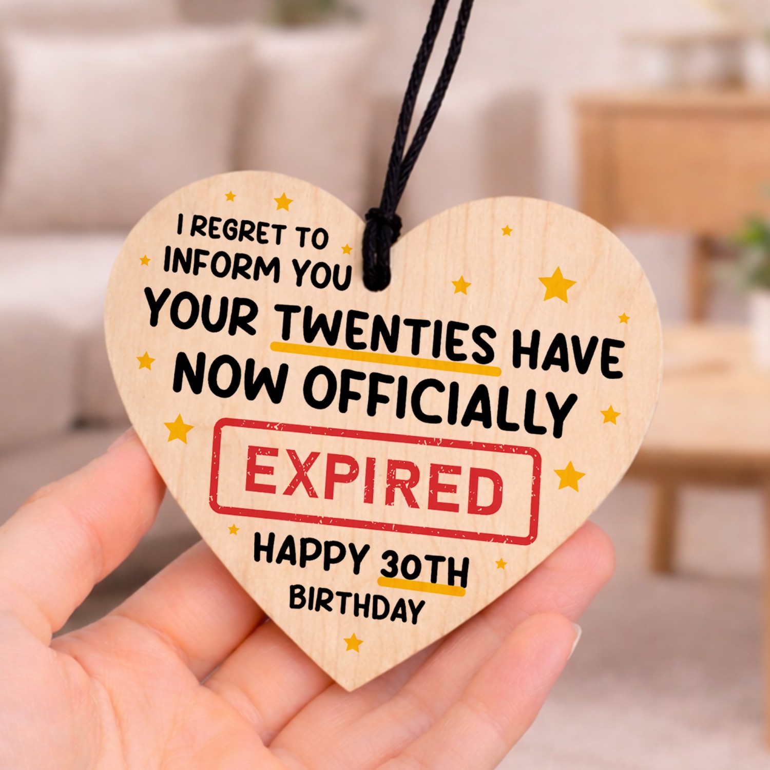 The sign is made from high quality, and the design is permanently printed into the heart. The wooden heart is supplied with waxed cotton rope in both black and red colours to allow easy hanging and looks great in any room of the house.