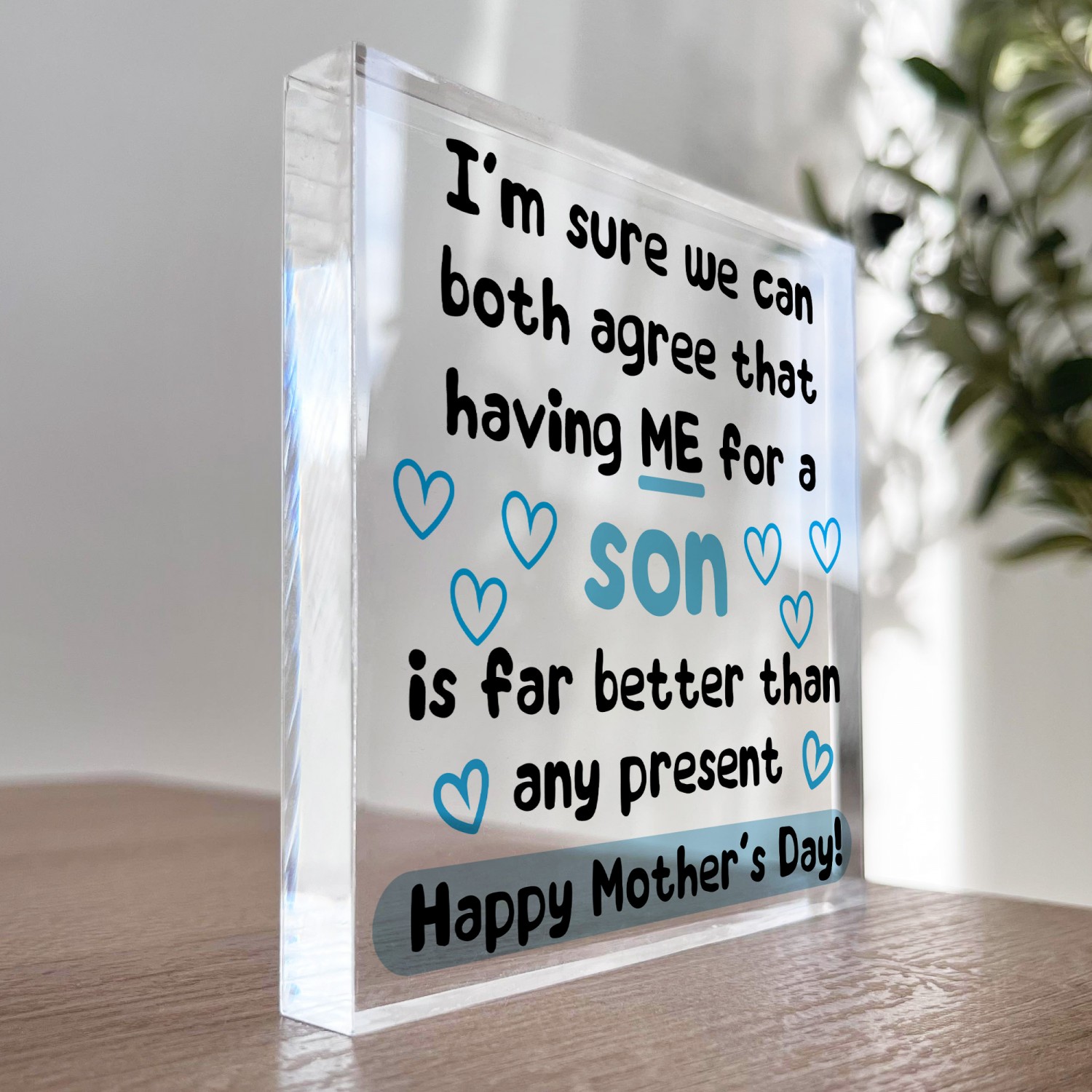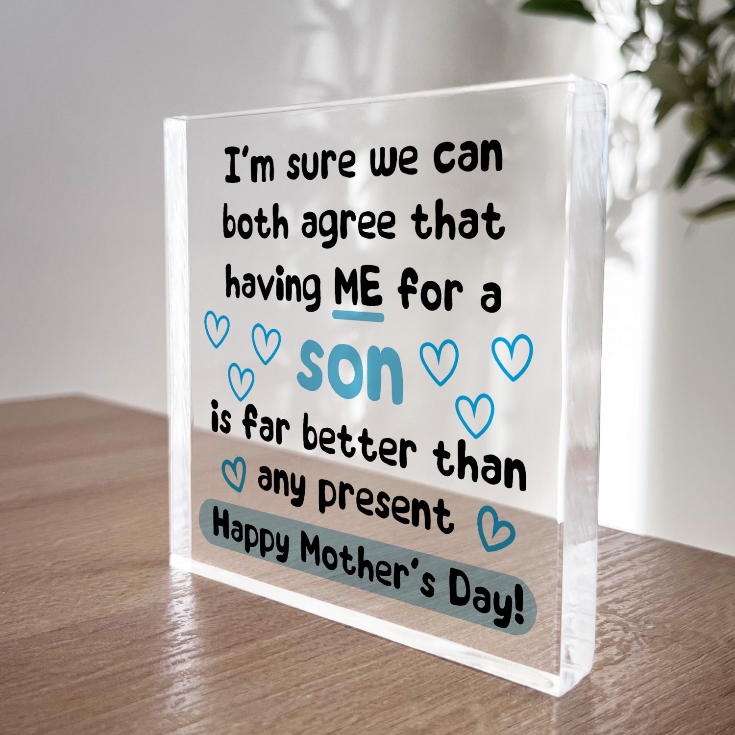 This sign effortlessly adapts to the way you want to display it as it freestanding and the clear material will make it shine where ever it is placed in the room. The plaque is handmade so it means you will receive the best quality gift and is something unique you won't find anywhere else.