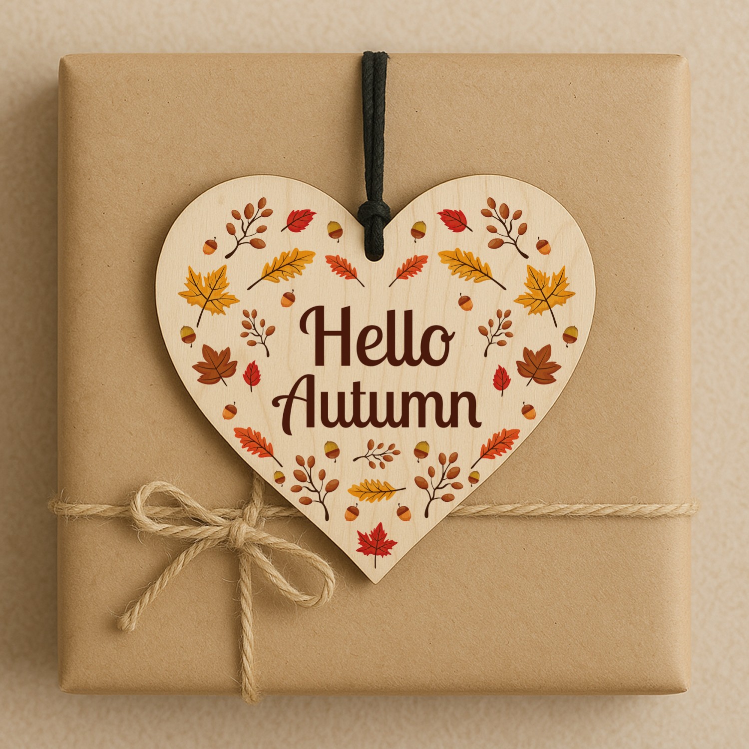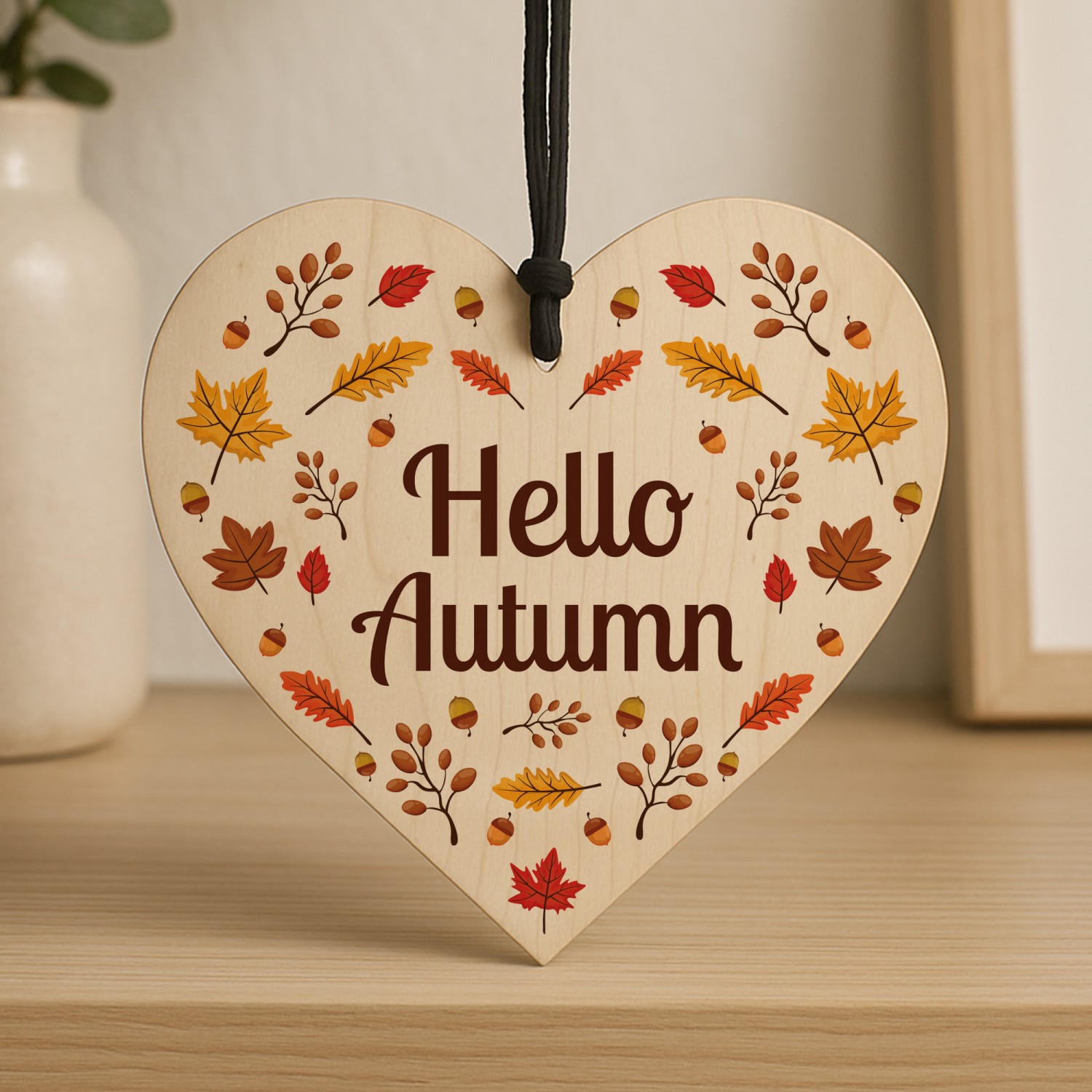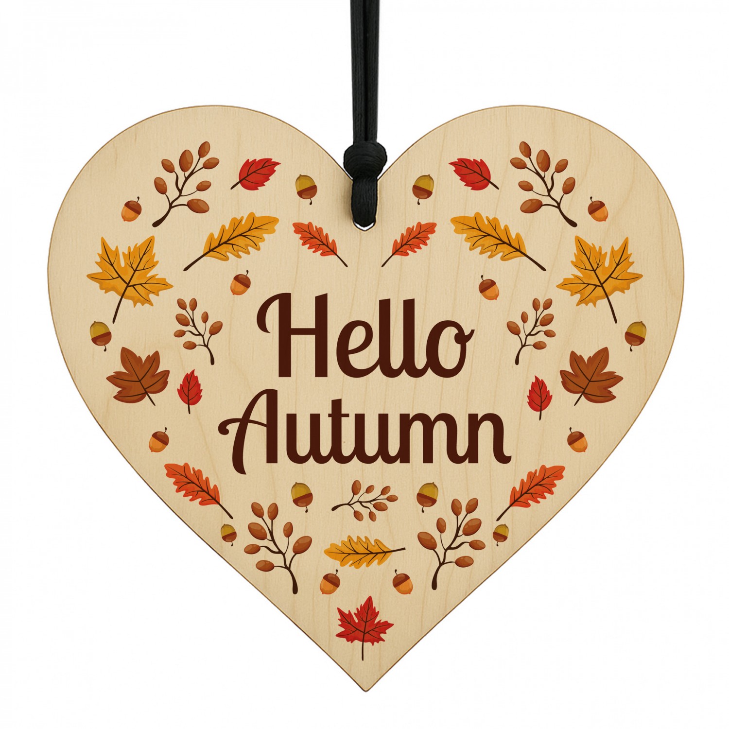 Hello Autumn Decorations Autumn Gifts Wooden Heart Plaque