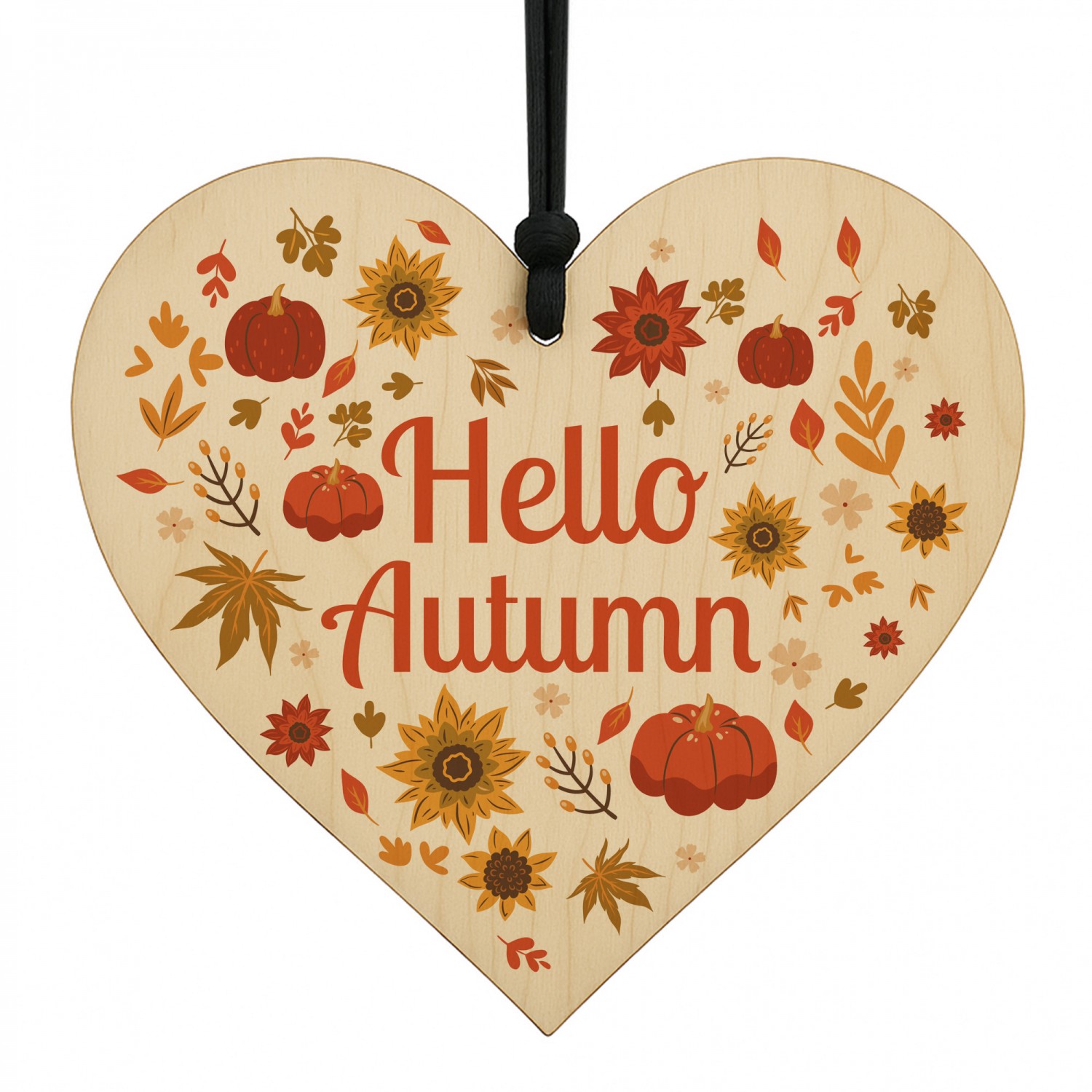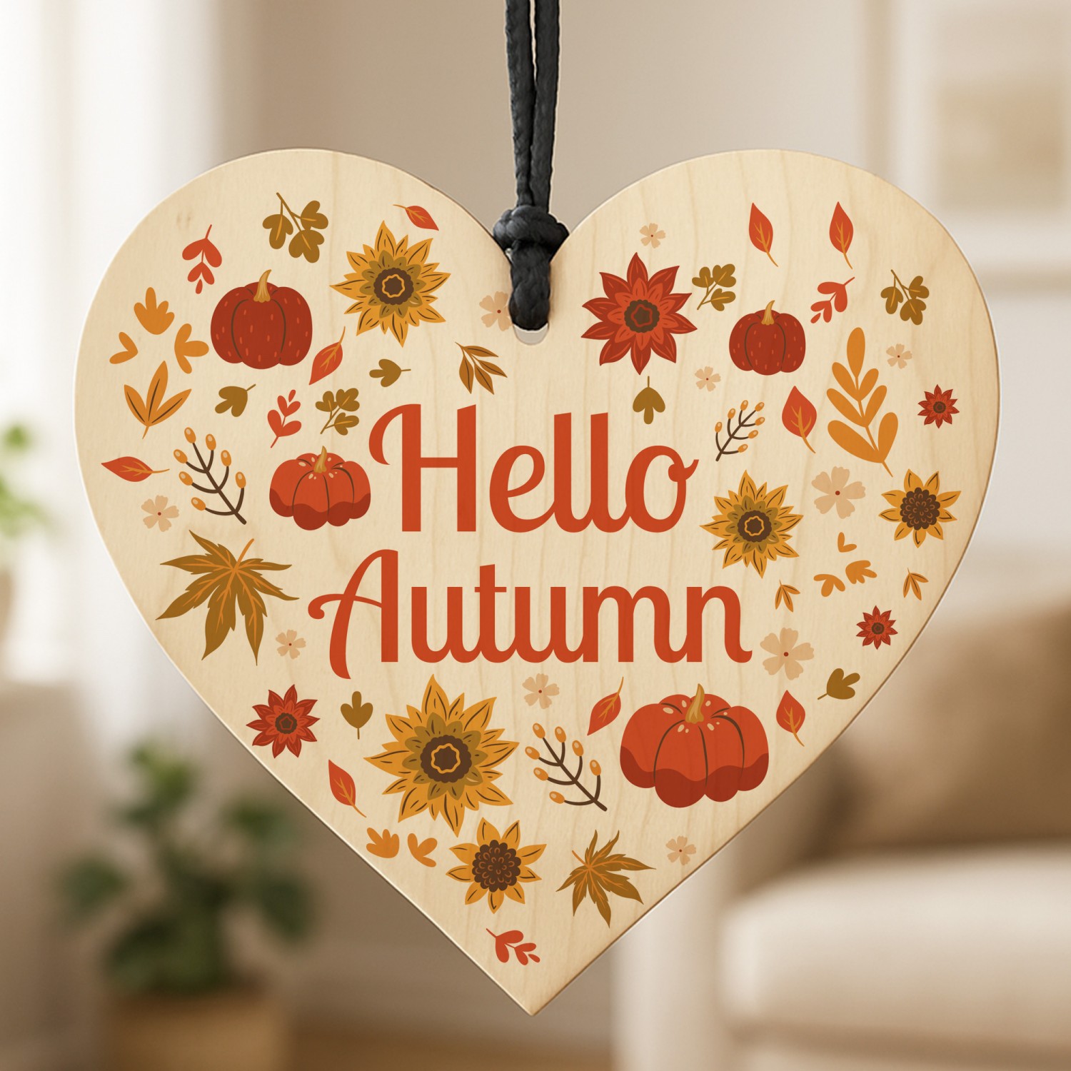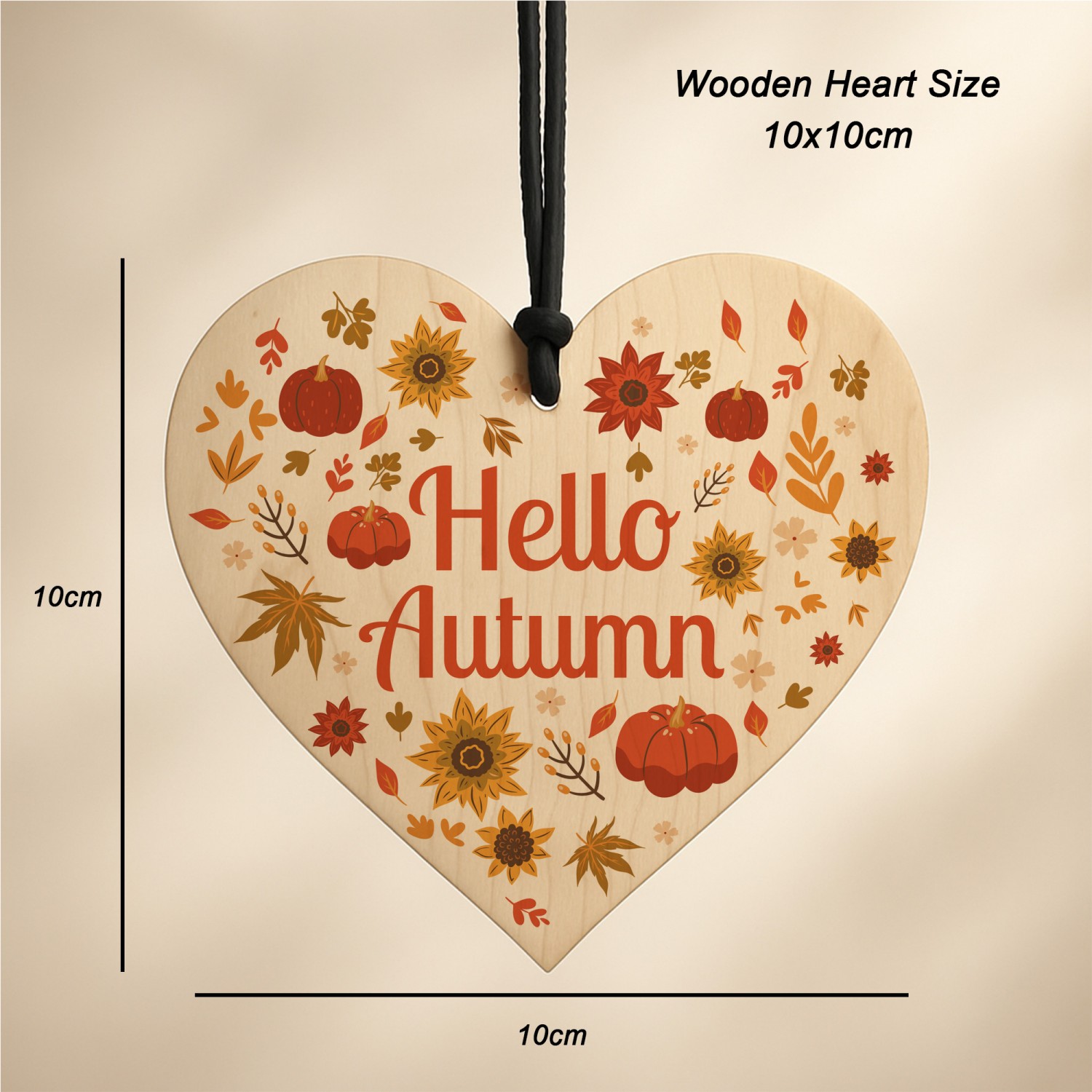 Hello Autumn Decorations For Home Hanging Wooden Heart Plaque