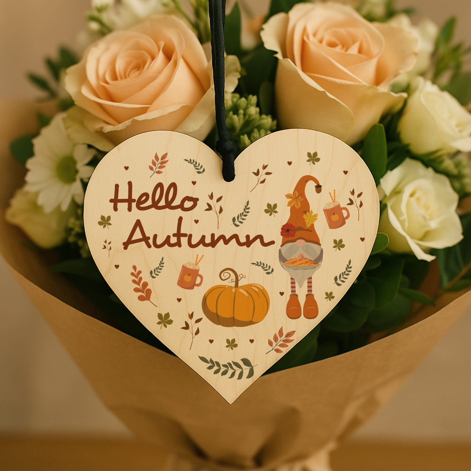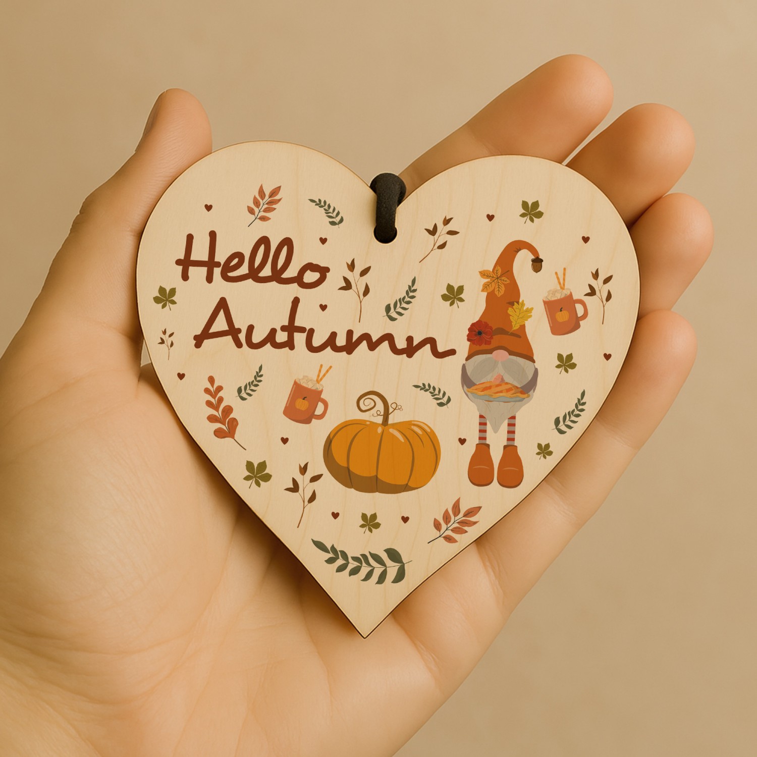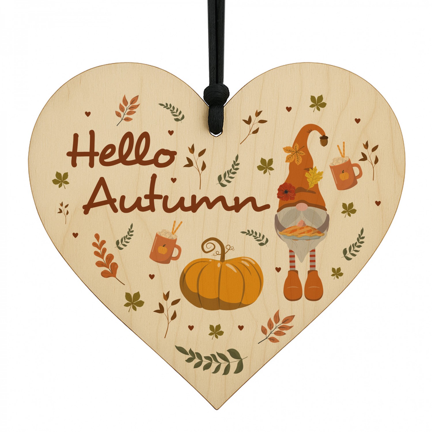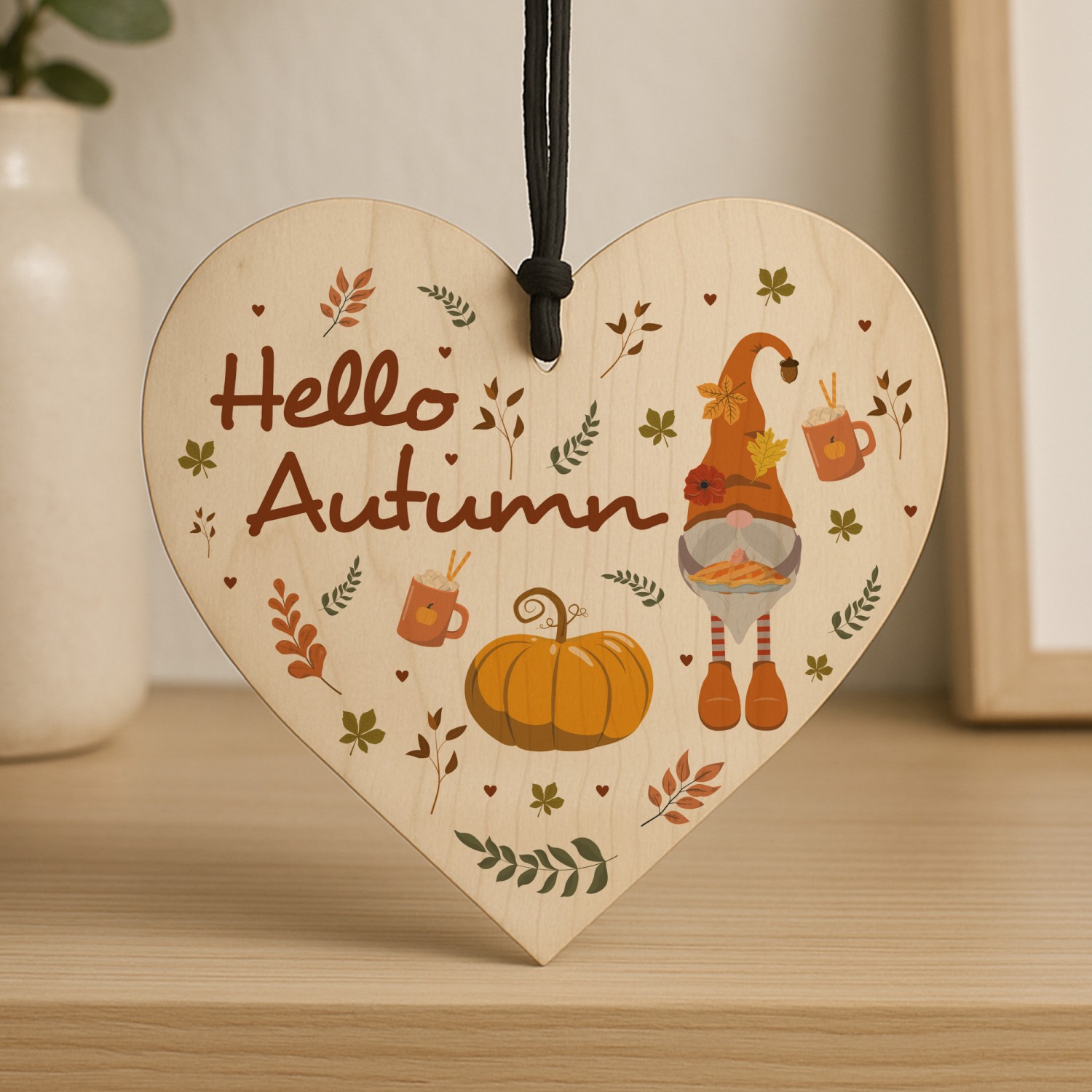 Hello Autumn Decorations Gifts Wooden Heart Hanging Plaque