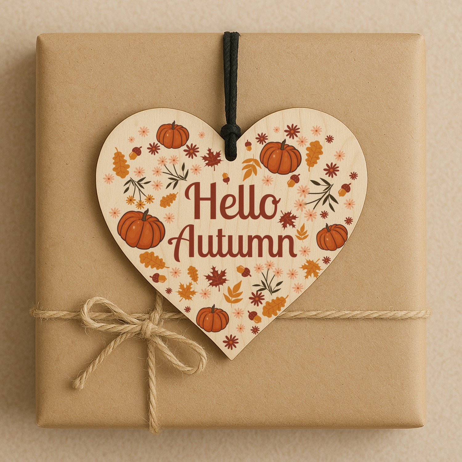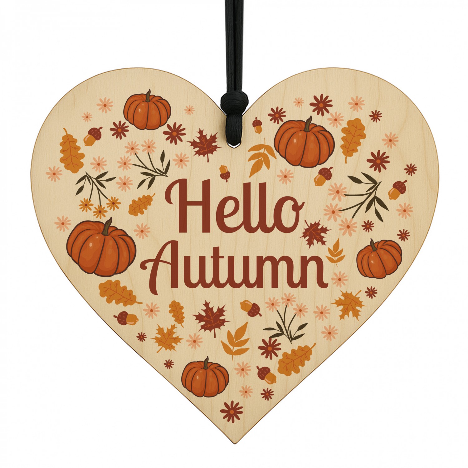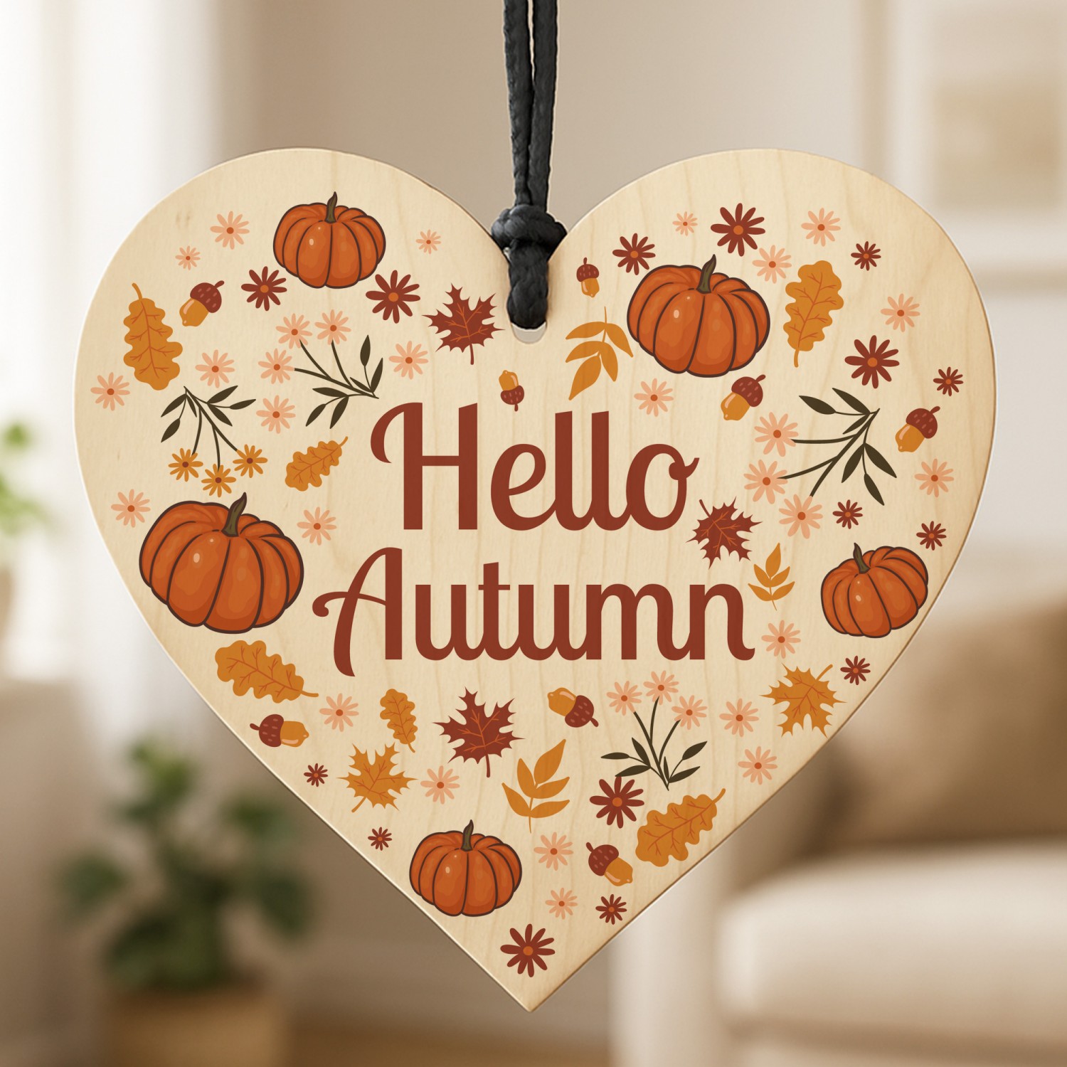 Hello Autumn Decorations Hanging Wooden Heart Plaque Autumn Gift