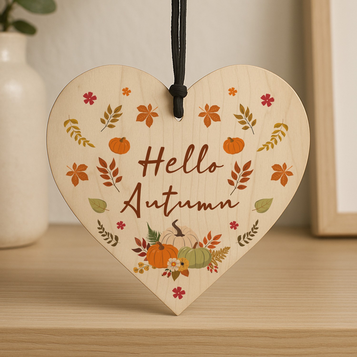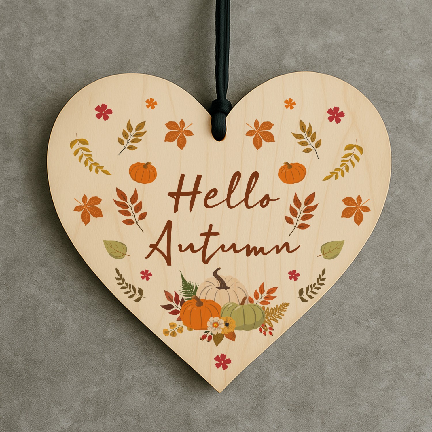 Hello Autumn Home Decor Gifts For Home Wooden Heart Plaque