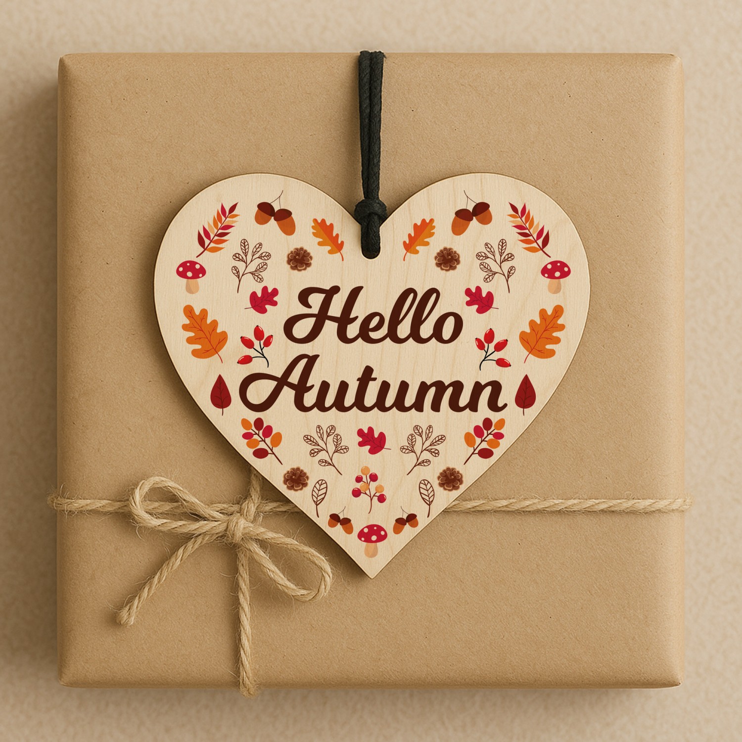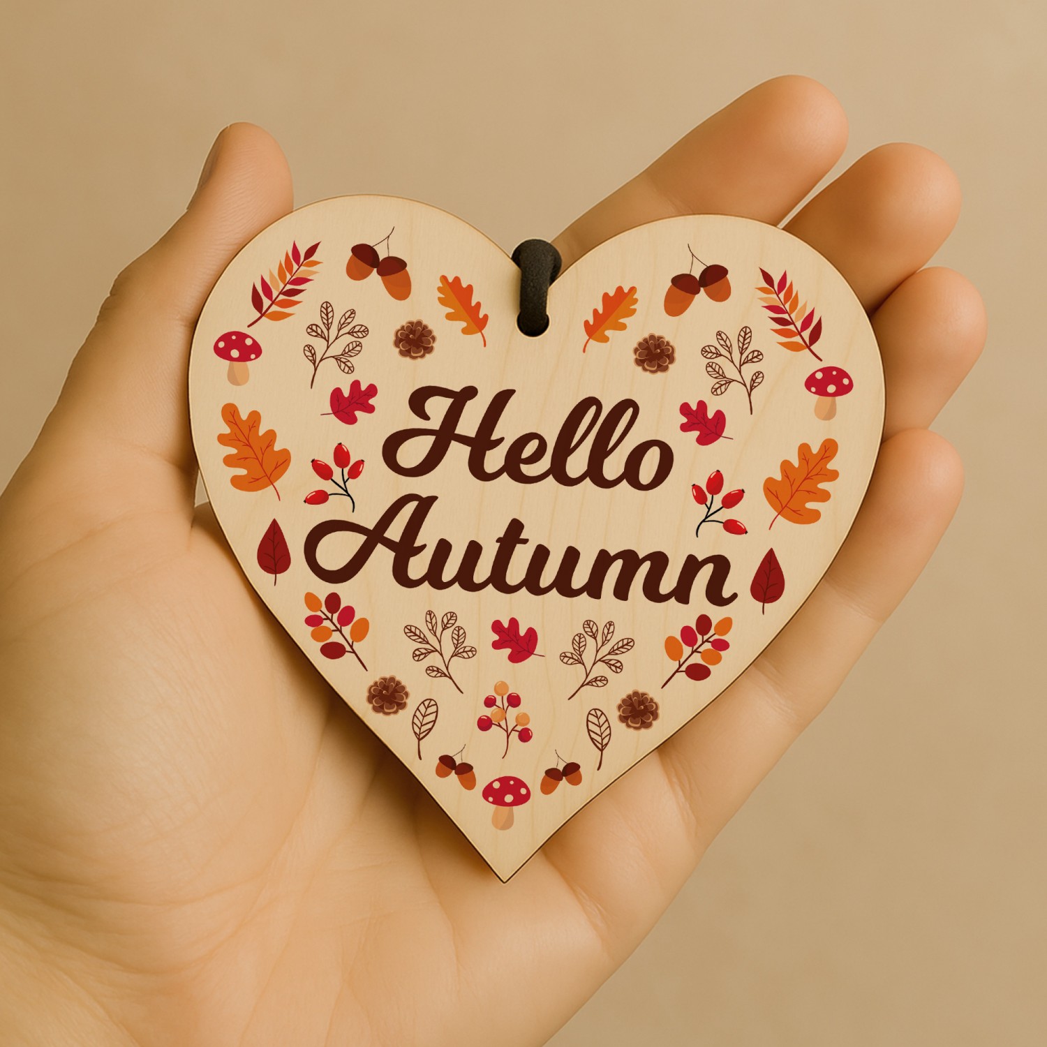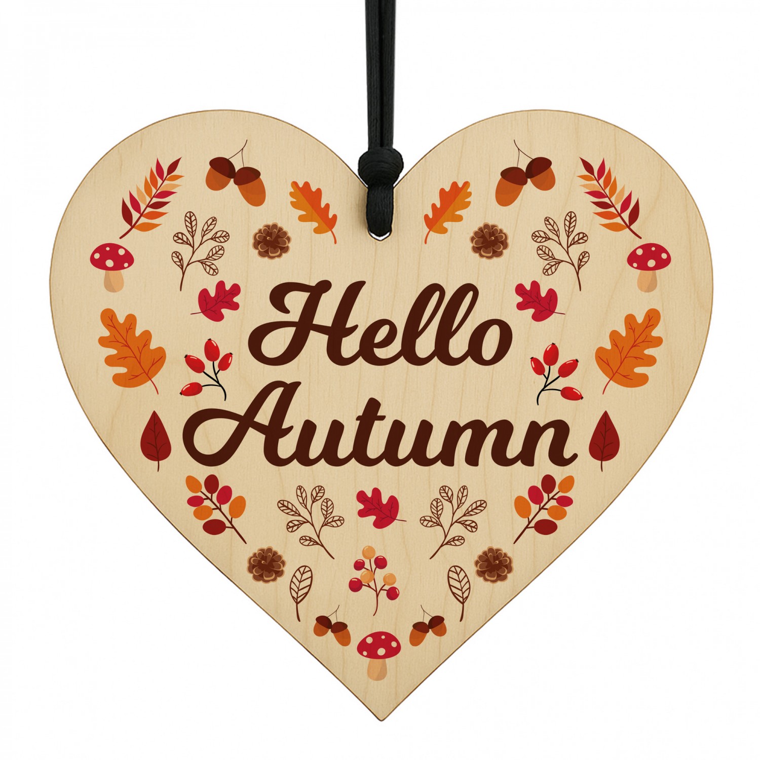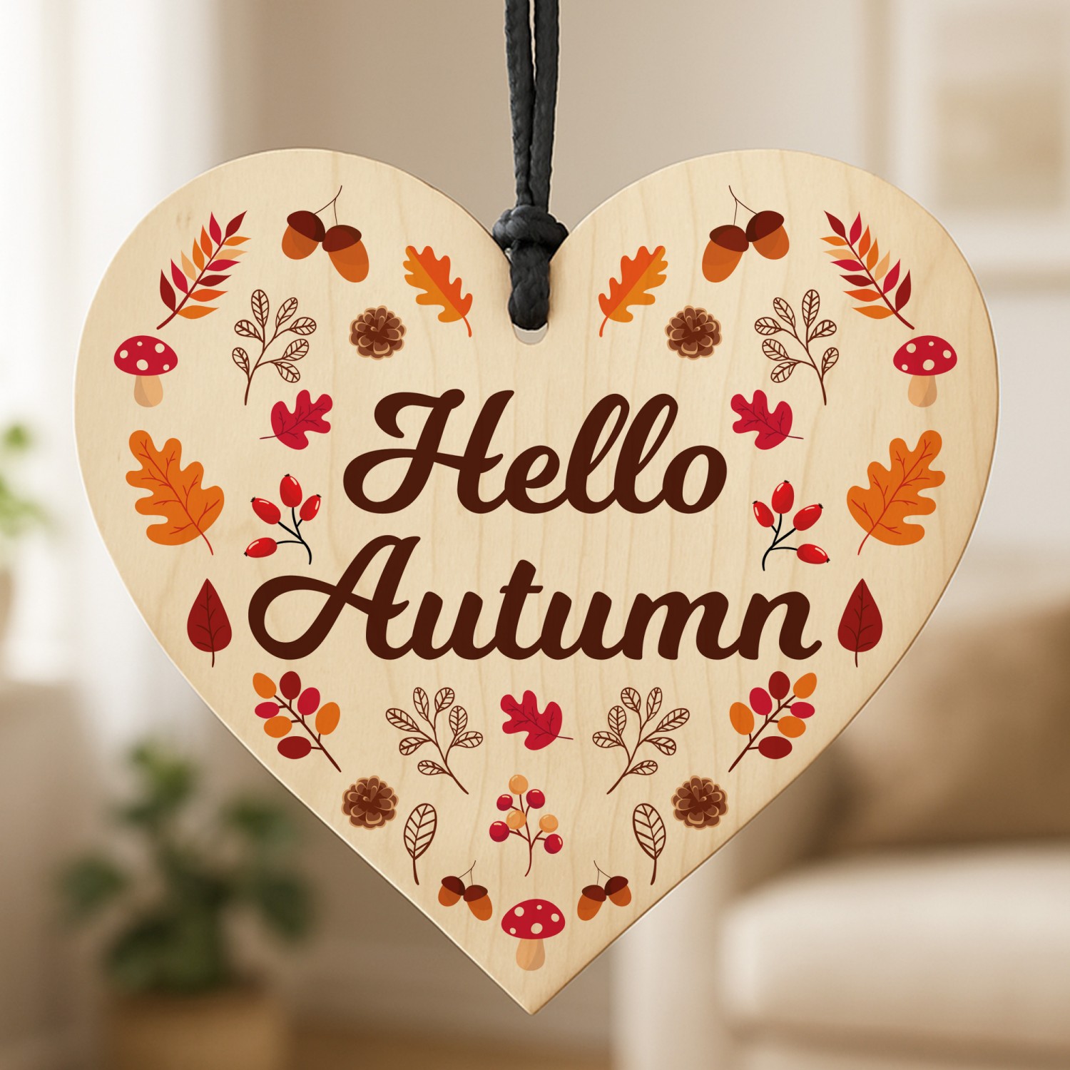 Hello Autumn Sign House Decor Autumnial Wooden Heart Sign