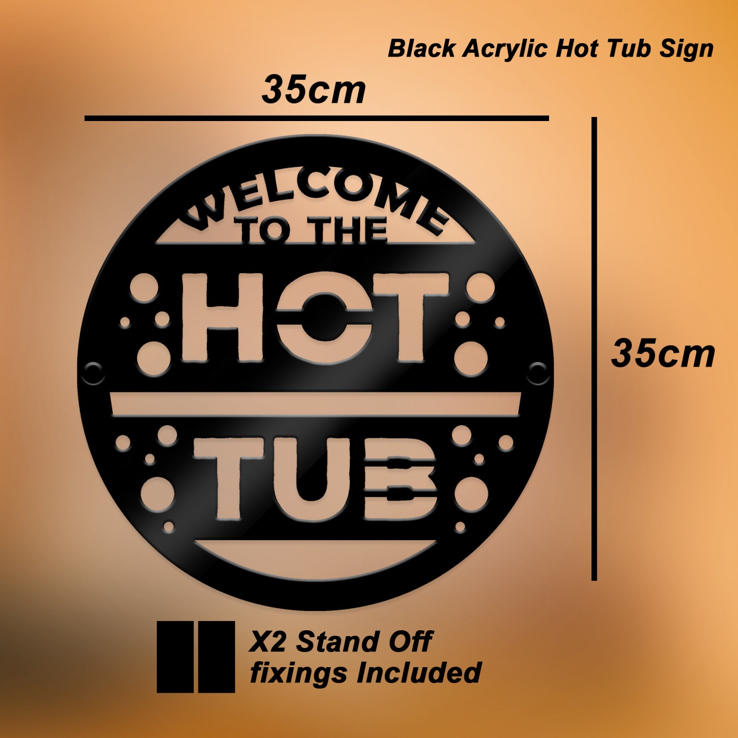 Introducing our stunning 35x35cm Black Acrylic, Circle, Hot Tub Welcome