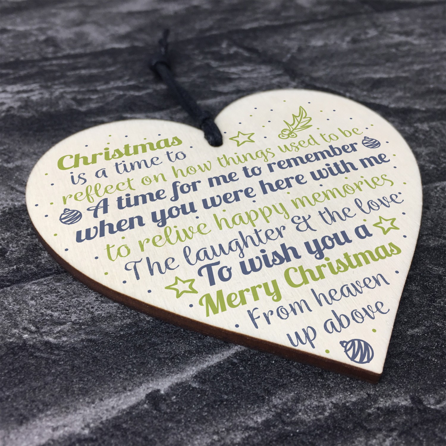 This gorgeous wooden heart plaque printed with this beautiful message would be a lovely gift in memory of your Mum, Dad, Nan, Grandad or Friend at Christmas this year. Give this gift with love and put a smile on their face when they get to hang this up.