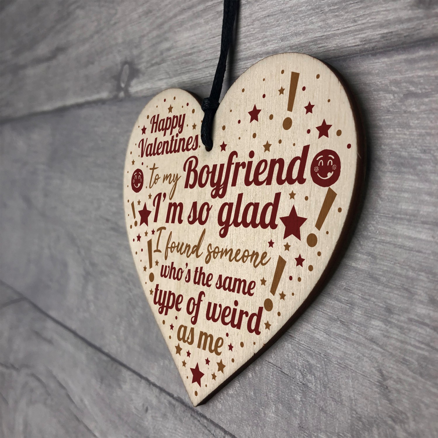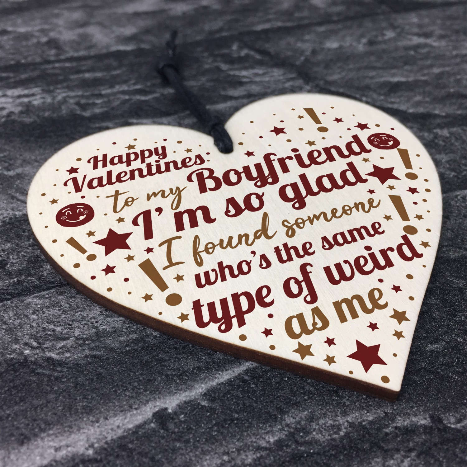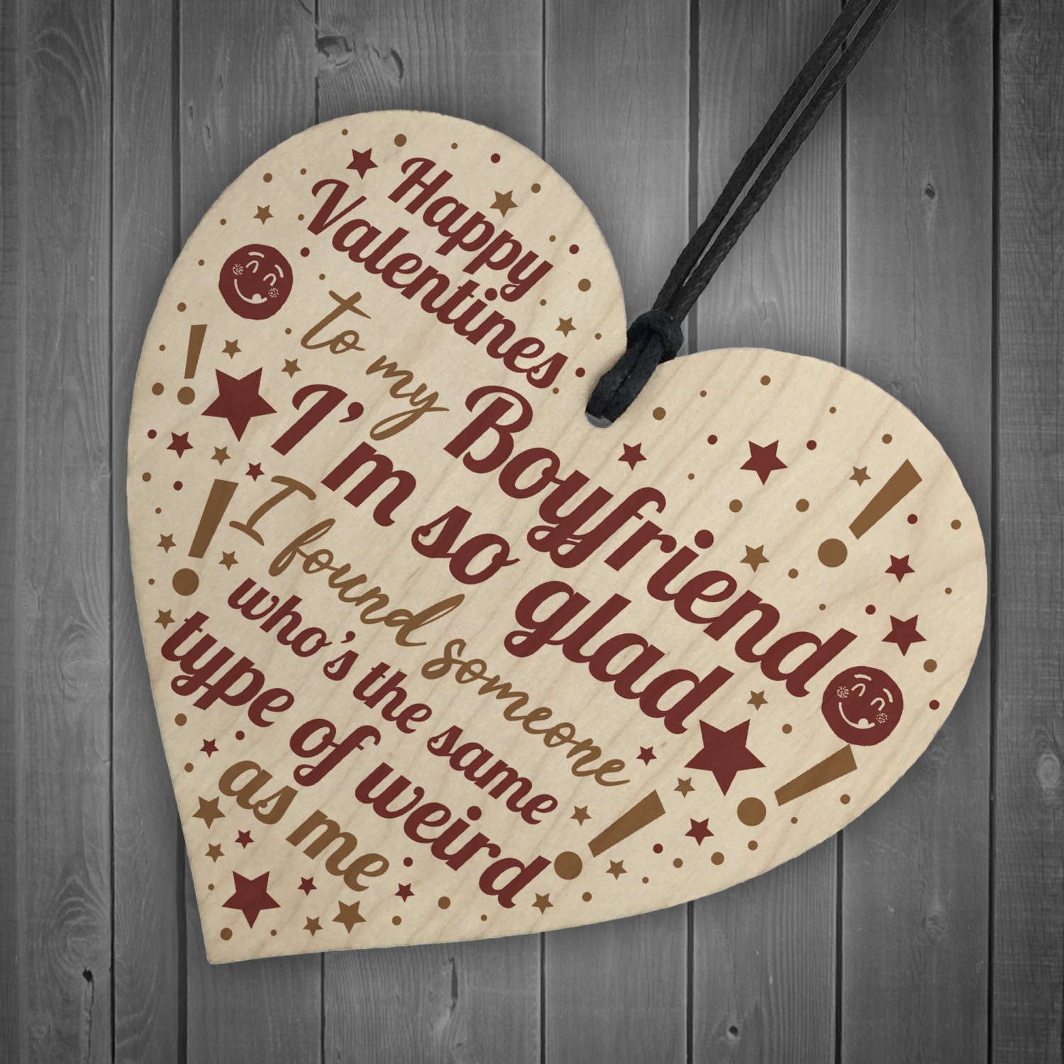 A gorgeous wooden heart plaque printed with a beautiful message that is the perfect gift to give to your boyfriend to let him know just how much you love him! A unique and quirky alternative to a card that he can treasure forever. Give this gift with love and put a smile on your boyfriend's face every time he reads it.