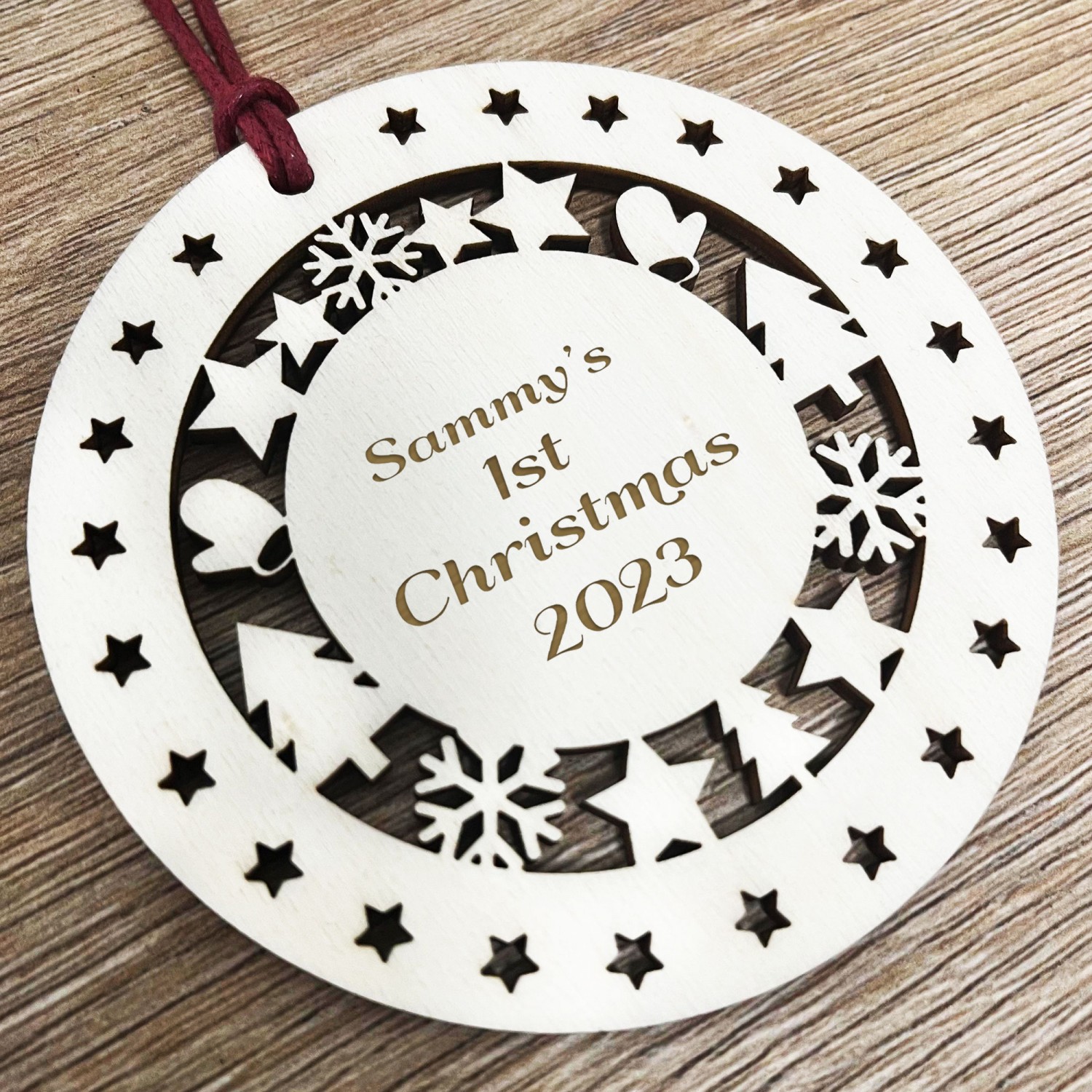 Introducing our beautiful handmade engraved wooden bauble, a captivating work of art that combines the natural beauty of wood with high quality engraving. This wooden bauble makes a lovely Christmas decoration which you can hang upon your Christmas Tree or anywhere in the home and it brings joy to everyone that sees it, especially the recipient.