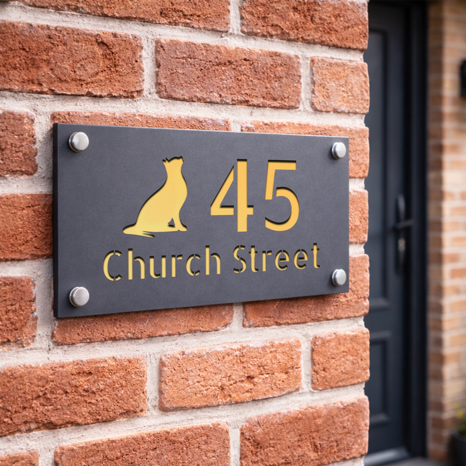 The laser cut 3D numbers and text ensure a crisp, professional finish, while the 4 silver standoffs add a subtle yet sophisticated mounting detail. Designed for durability, this sign is weather-resistant, UV-protected, and built to withstand the British climate without fading or warping.