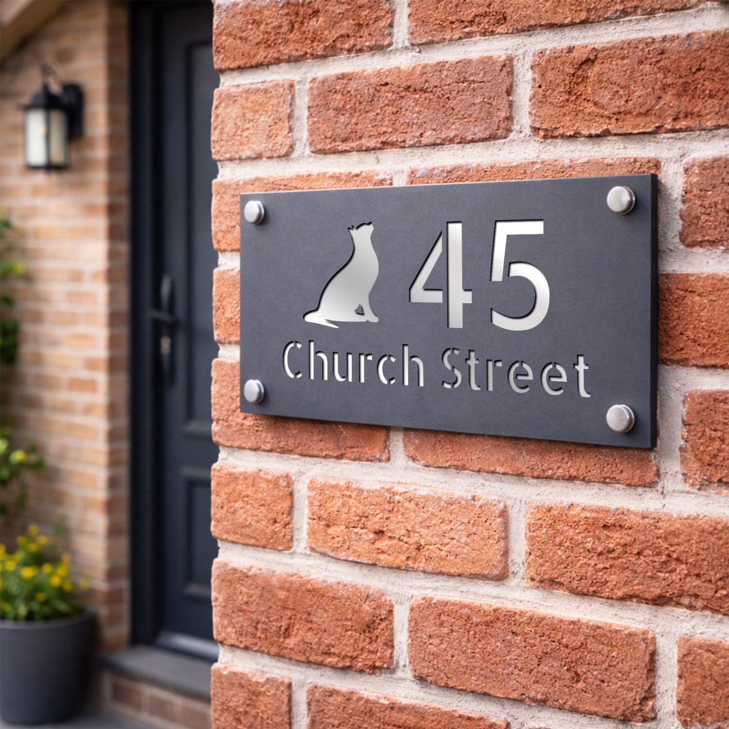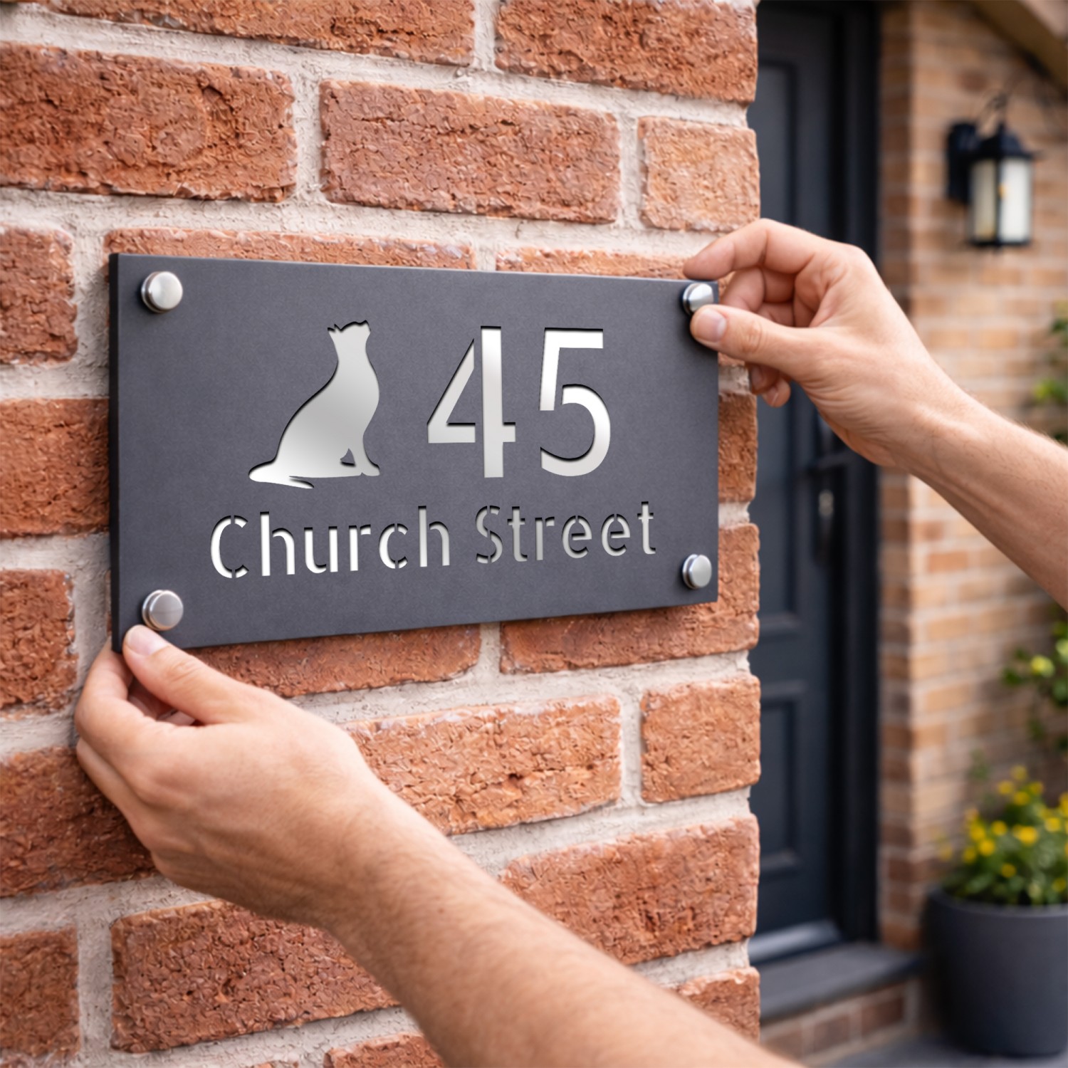 The laser cut 3D numbers and text ensure a crisp, professional finish, while the 4 silver standoffs add a subtle yet sophisticated mounting detail. Designed for durability, this sign is weather-resistant, UV-protected, and built to withstand the British climate without fading or warping.