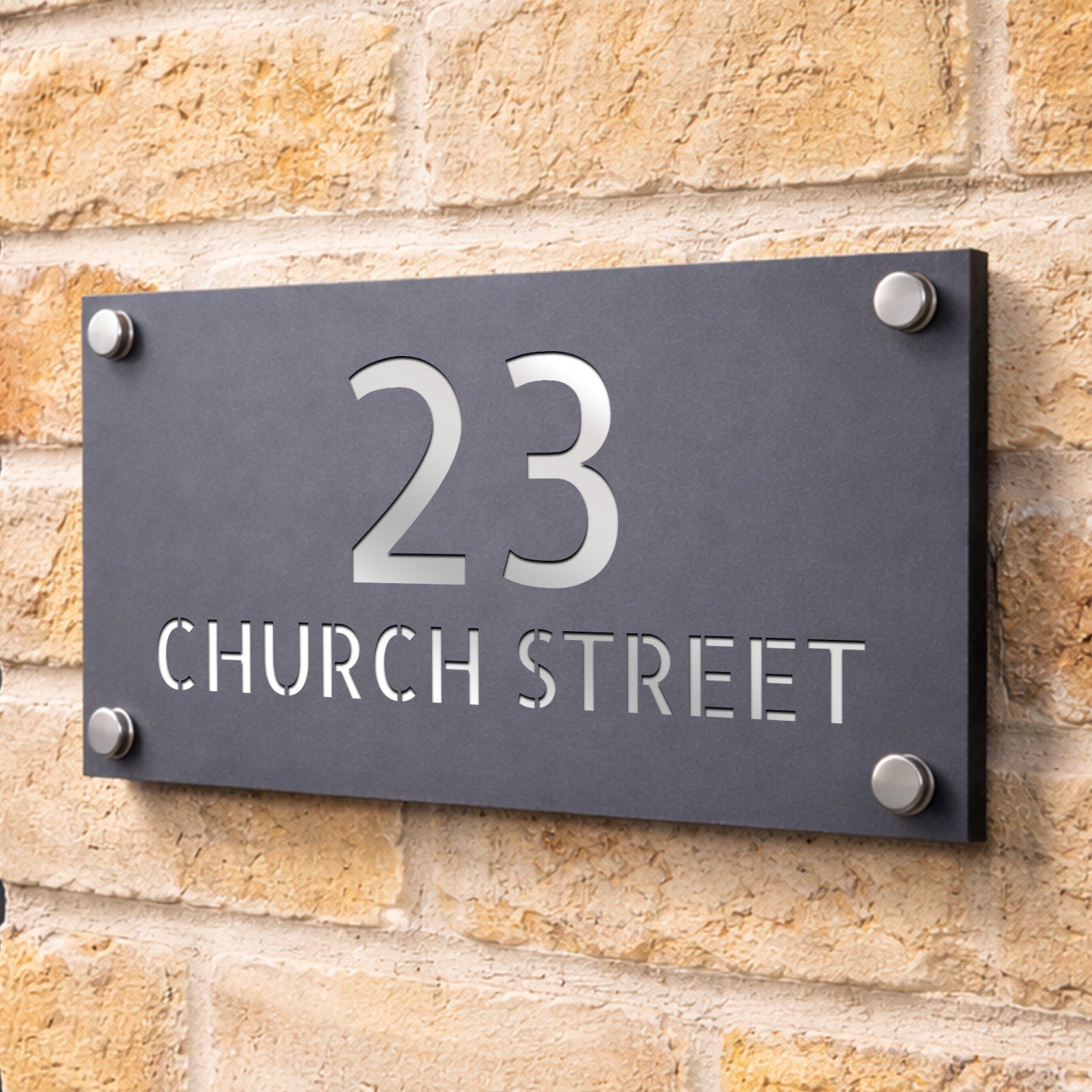 The laser cut 3D numbers and text ensure a crisp, professional finish, while the 4 silver standoffs add a subtle yet sophisticated mounting detail. Designed for durability, this sign is weather-resistant, UV-protected, and built to withstand the British climate without fading or warping.