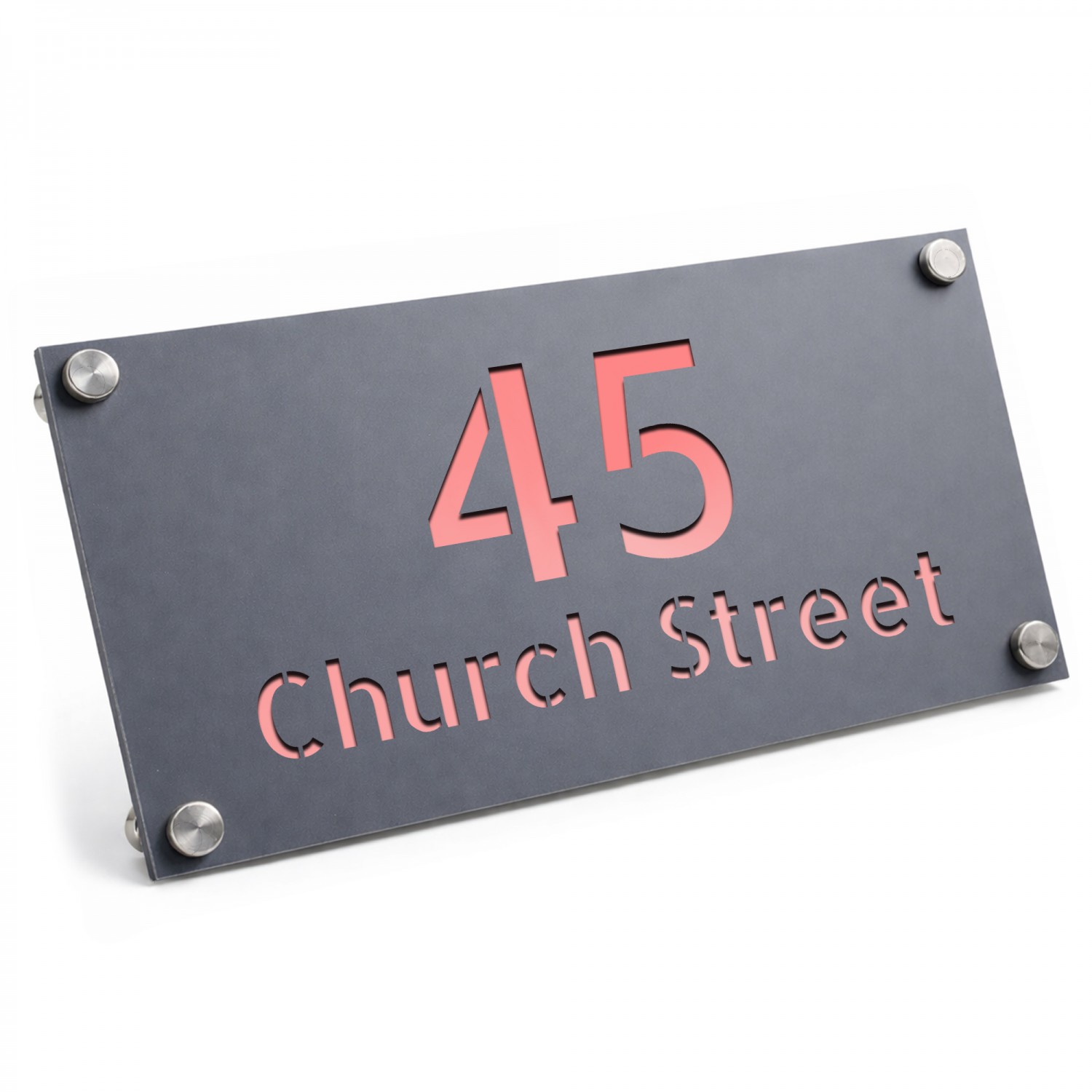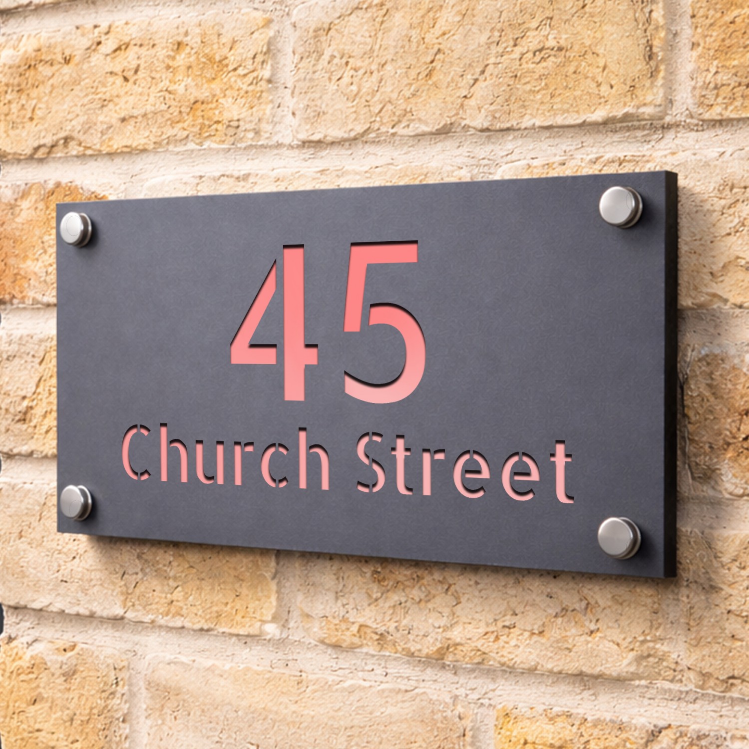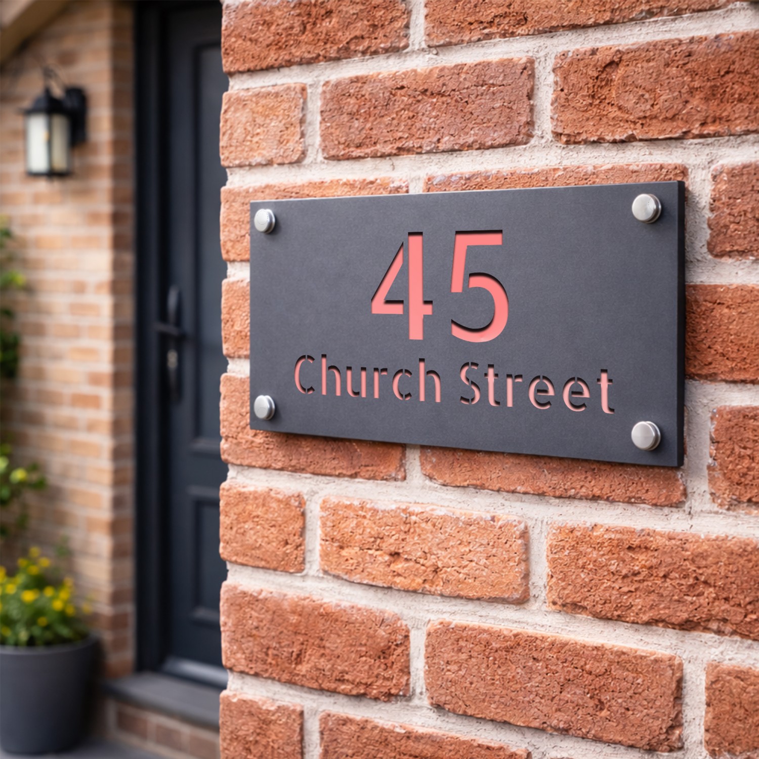The laser cut 3D numbers and text ensure a crisp, professional finish, while the 4 silver standoffs add a subtle yet sophisticated mounting detail. Designed for durability, this sign is weather-resistant, UV-protected, and built to withstand the British climate without fading or warping.