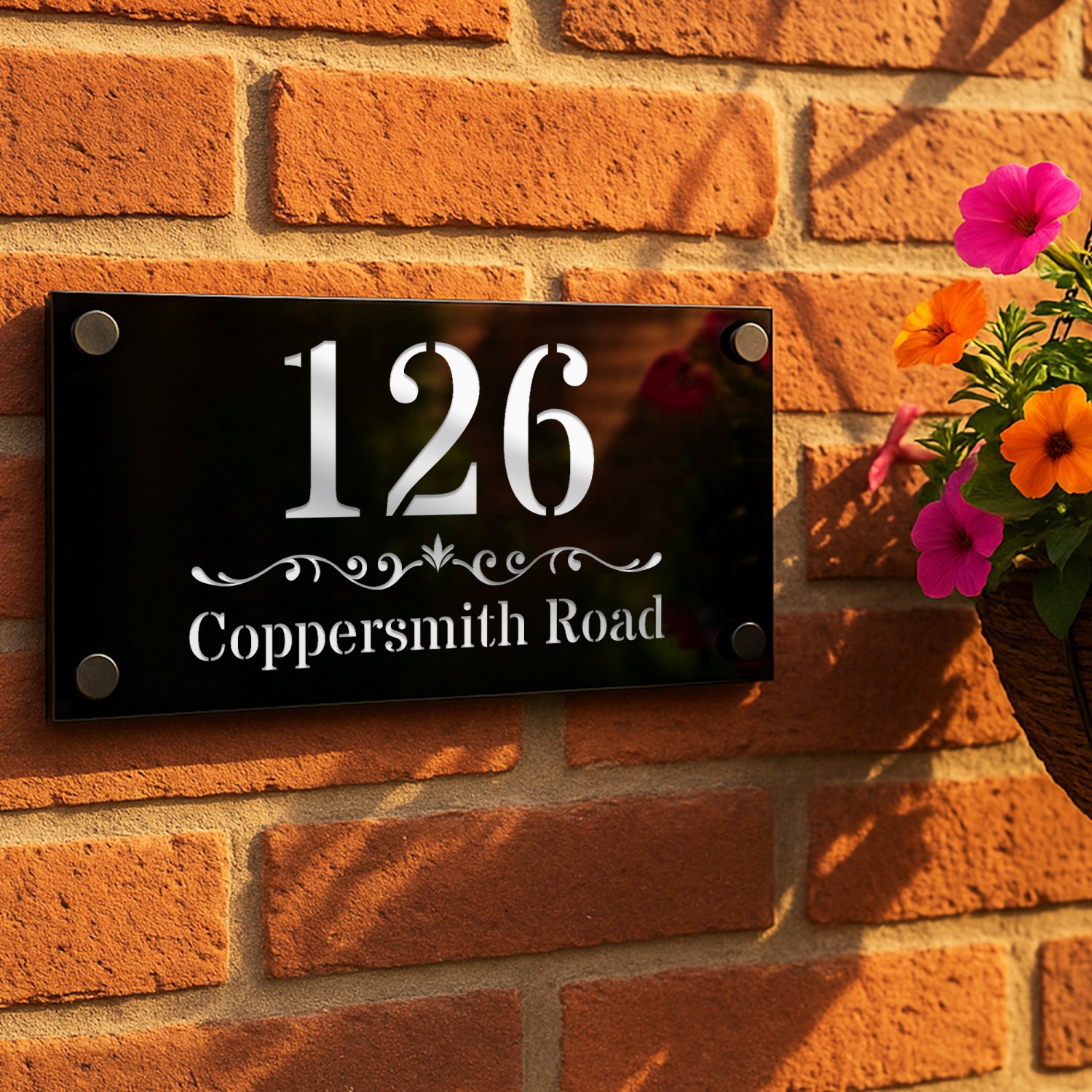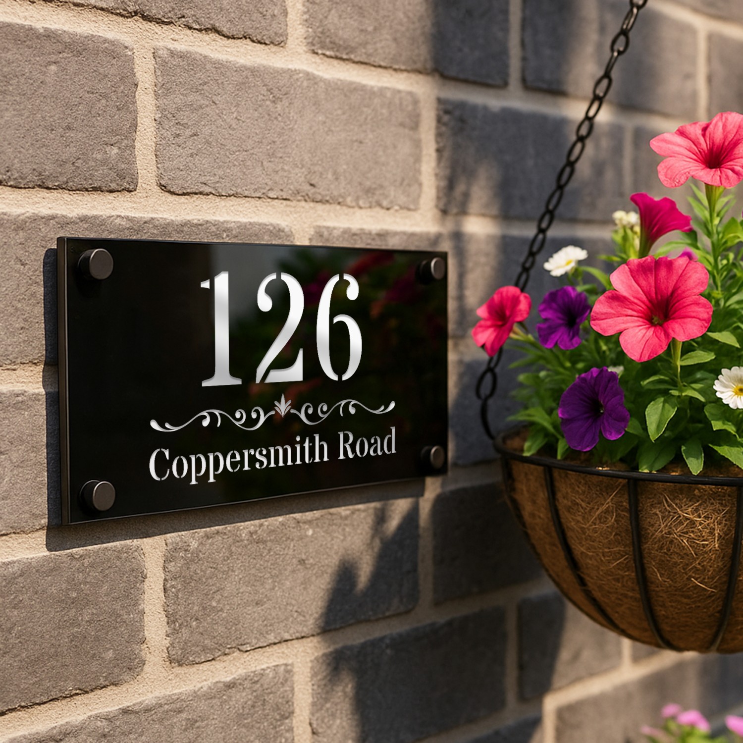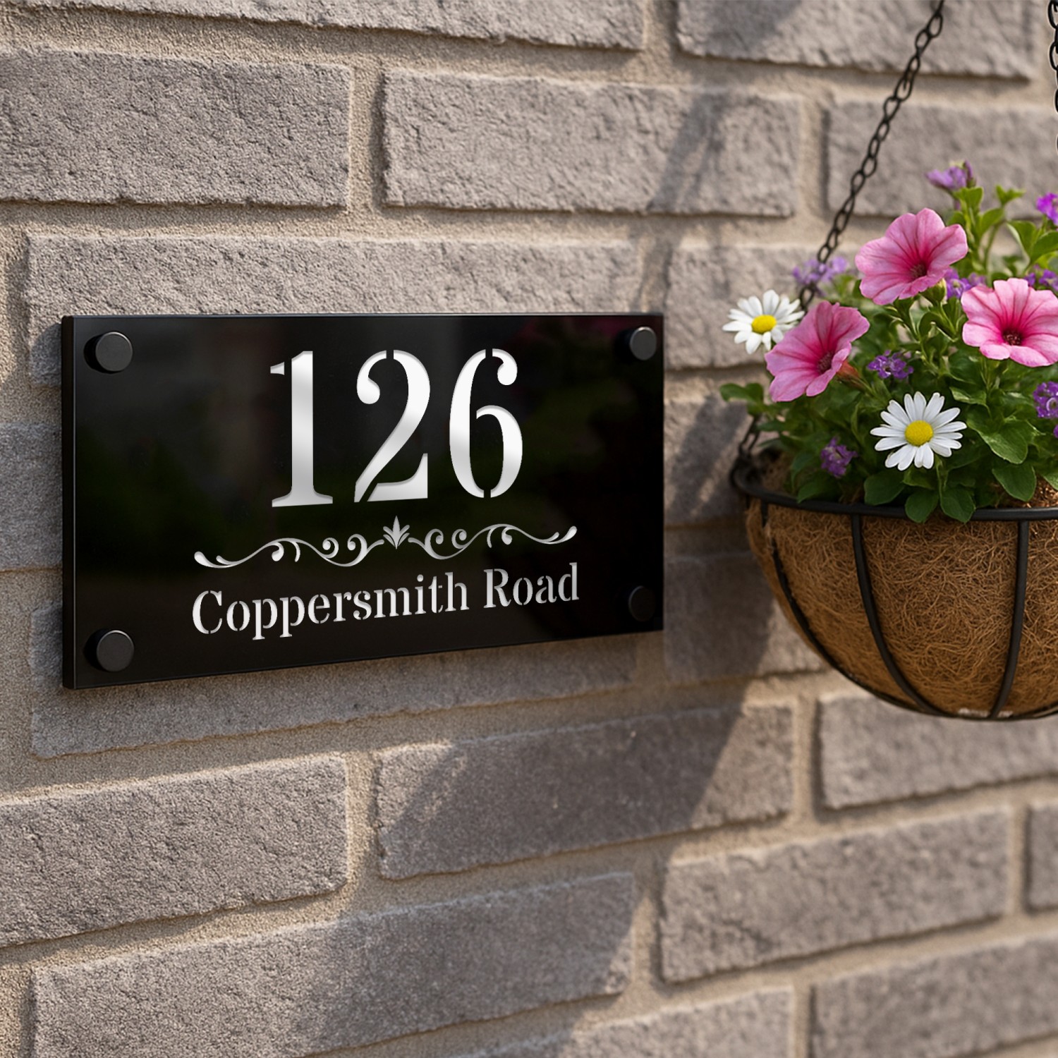 The laser cut 3D numbers and text ensure a crisp, professional finish, while the 4 matte black standoffs add a subtle yet sophisticated mounting detail. Designed for durability, this sign is weather-resistant, UV-protected, and built to withstand the British climate without fading or warping.