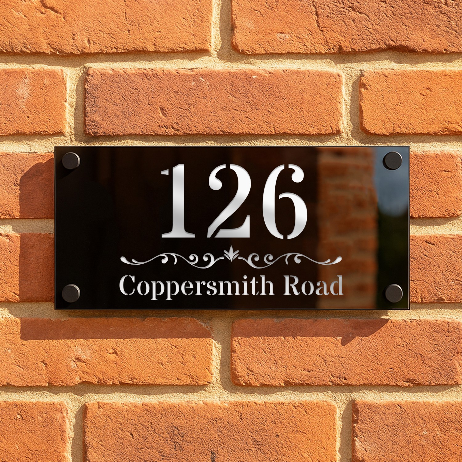 Add a touch of contemporary elegance to your home's exterior with this premium acrylic house sign. Measuring 280 x 140mm, this sleek, modern sign is crafted with a stunning silver mirror back plate and a shiny black front plate, creating a striking contrast that's both stylish and easy to read.