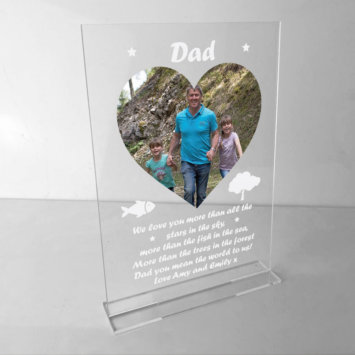 A Beautifully Printed A5 Personalised Clear Acrylic standing plaque with