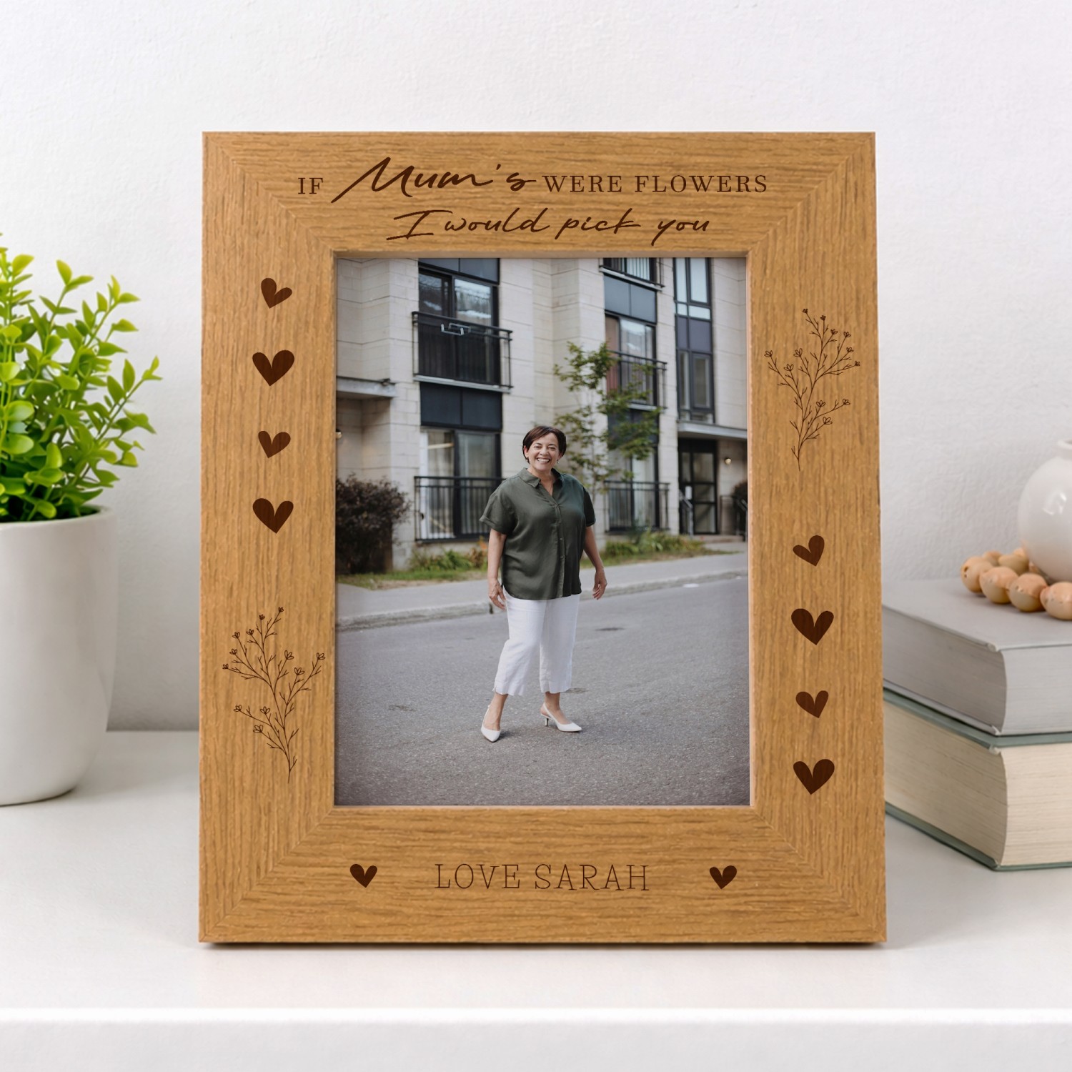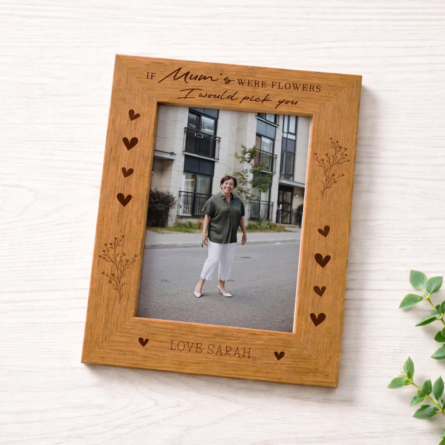 Additionally, our Wooden Oak Photo Frame can be customised, if the personalisation option is available. Embrace the opportunity to personalise this extraordinary piece by printing names, dates, or heartfelt messages onto the wood surface. The option to add a personal touch elevates this frame into a truly meaningful and heartfelt gift, making it perfect for weddings, anniversaries, graduations, or any other special occasion.