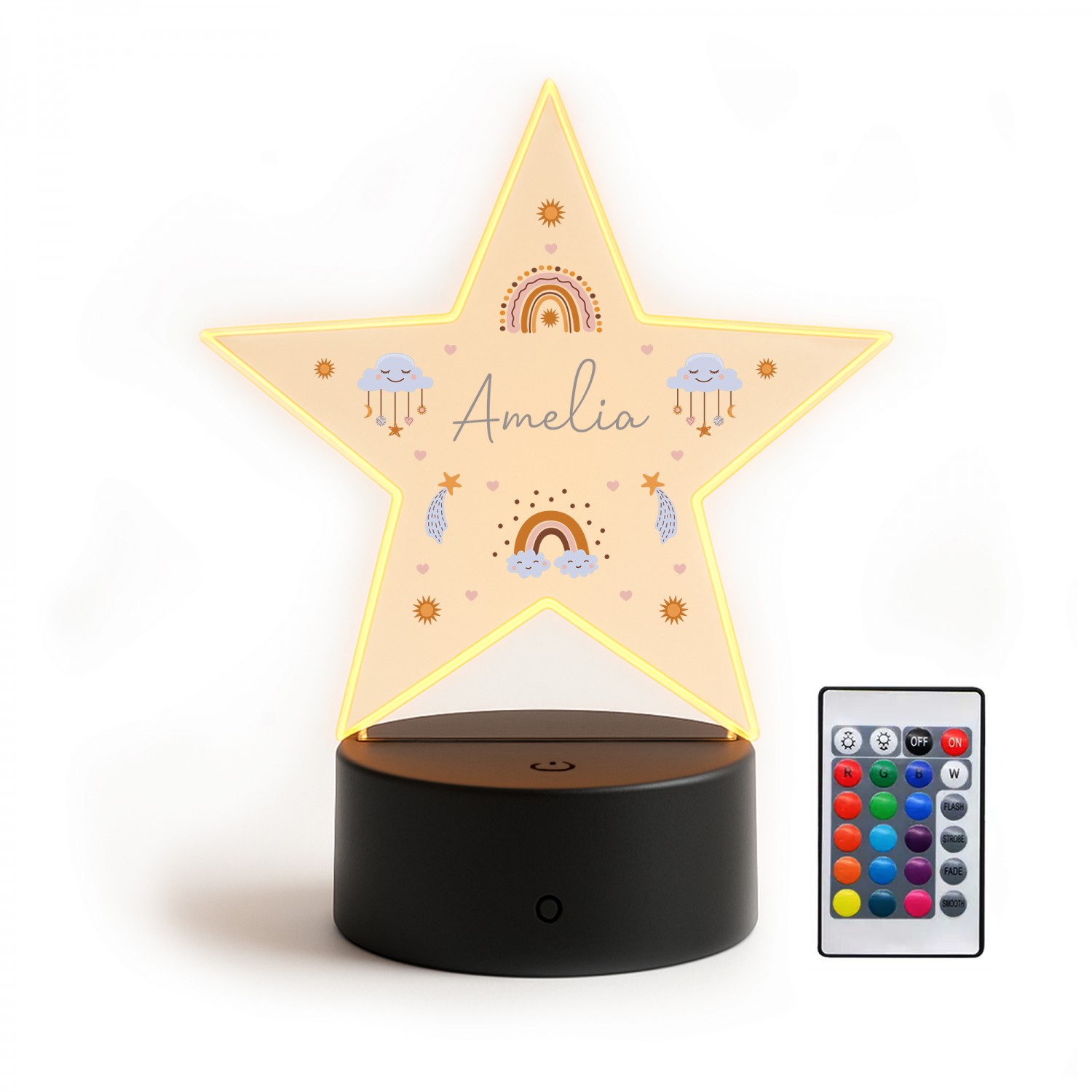 The plaque is made from high quality acrylic, which will last for years to come. The design is printed onto the plaque, paying close attention to fine details and finishing. The plaque is supplied with an LED base and you can use either the USB or battery option so the light can be free standing on a shelf or desk. The LED Base needs 3 x AAA Batteries (not included). The remote comes with a battery inside.