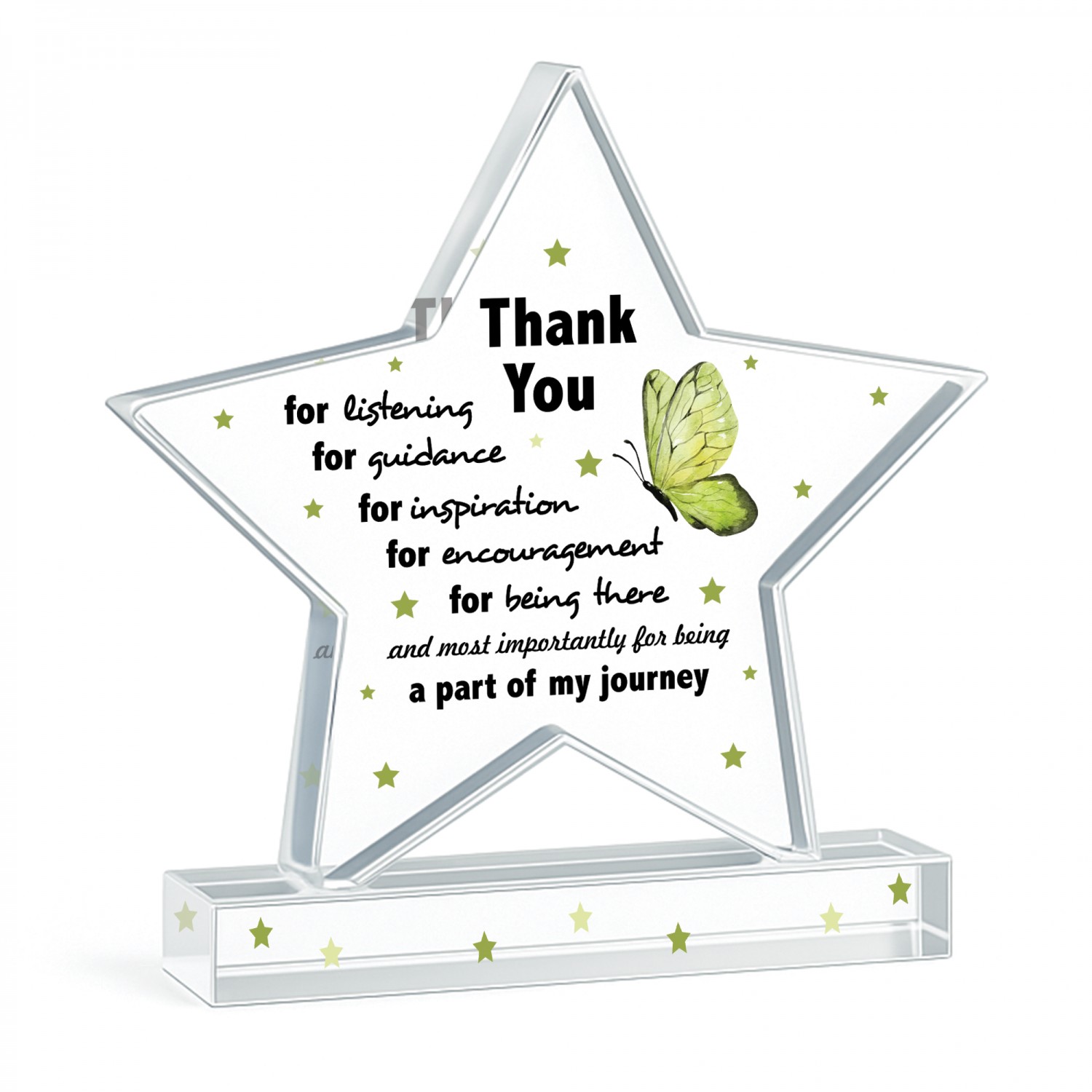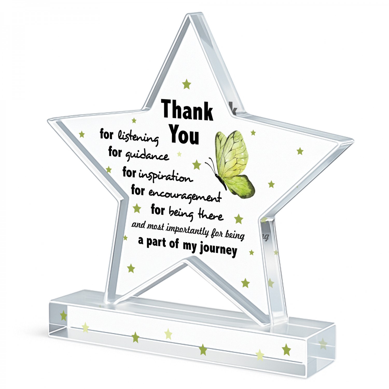 Whether you're expressing thanks to a colleague, friend or loved one, this acrylic star makes a stylish, sentimental and lasting gift that will be cherished for years to come.