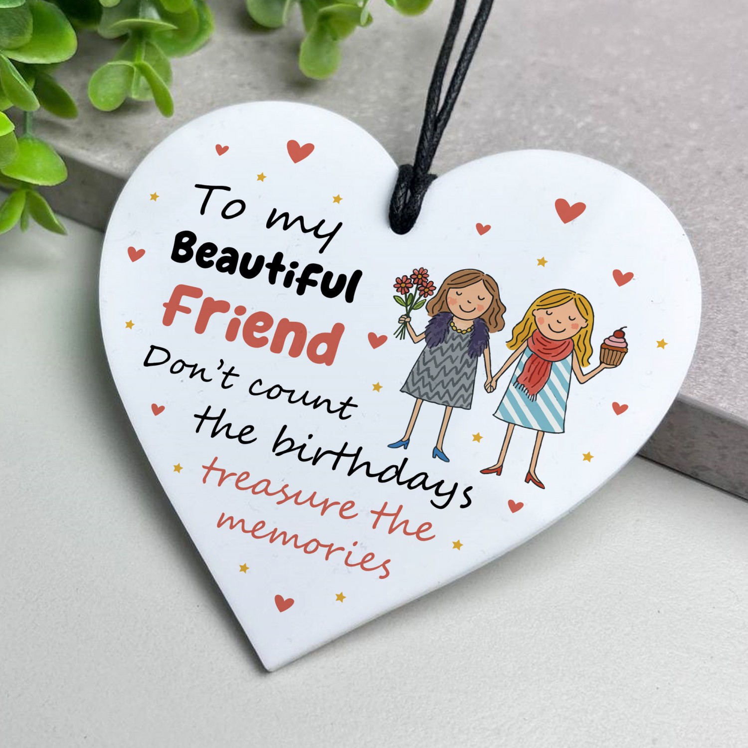Each plaque arrives beautifully packaged and ready to gift. It's the perfect present for your Friend to wish her a Happy Birthday!