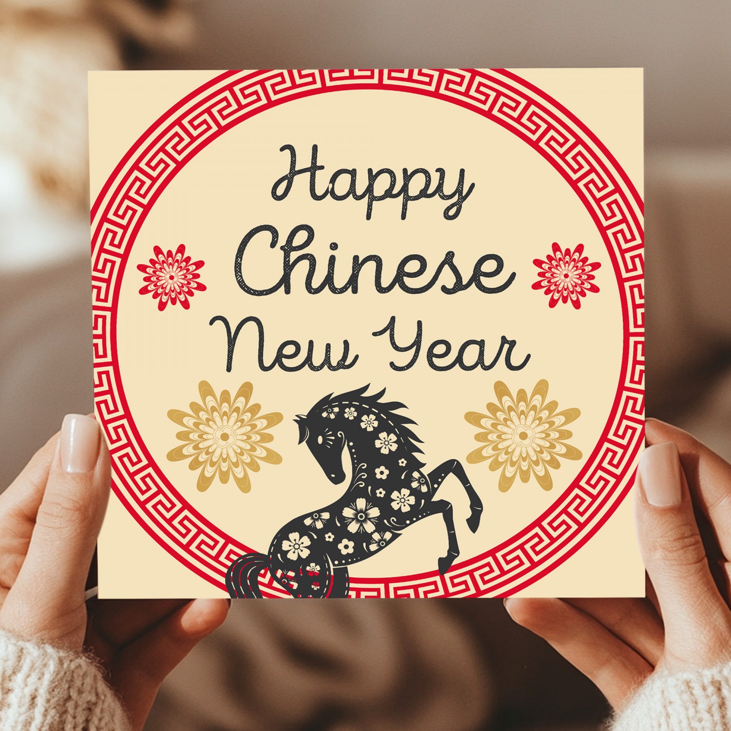 This Chinese New Year card 2026 is perfect for celebrating the Lunar New Year, Spring Festival, and Year of the Horse celebrations. The elegant Horse (Luna) design represents strength, energy, confidence, and forward momentum - ideal for welcoming the new year with positive wishes.