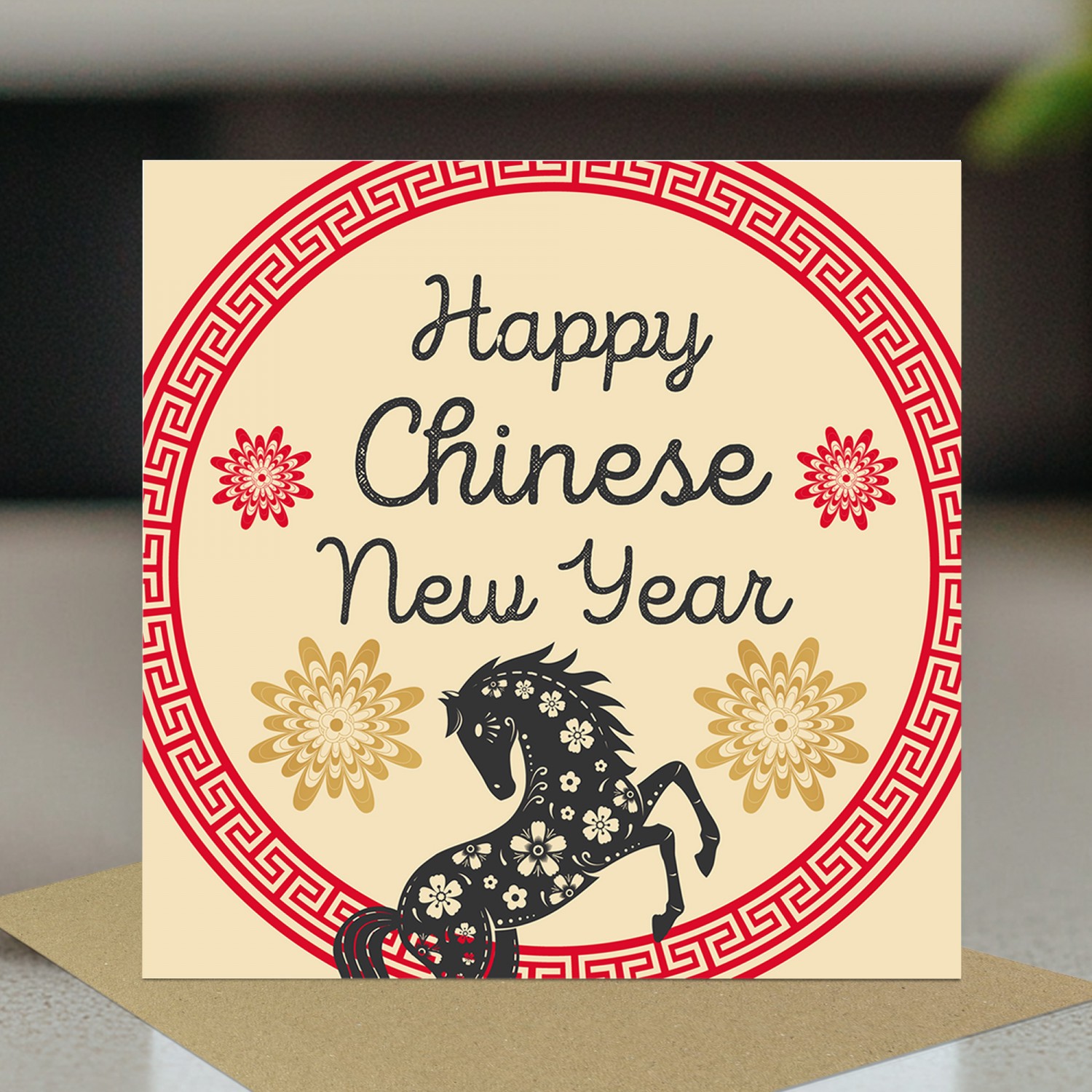 Celebrate Chinese New Year 2026 with this beautifully designed Lunar New Year greeting card, featuring the Year of the Horse in a traditional red and gold colour scheme symbolising luck, prosperity, success, and good fortune.
