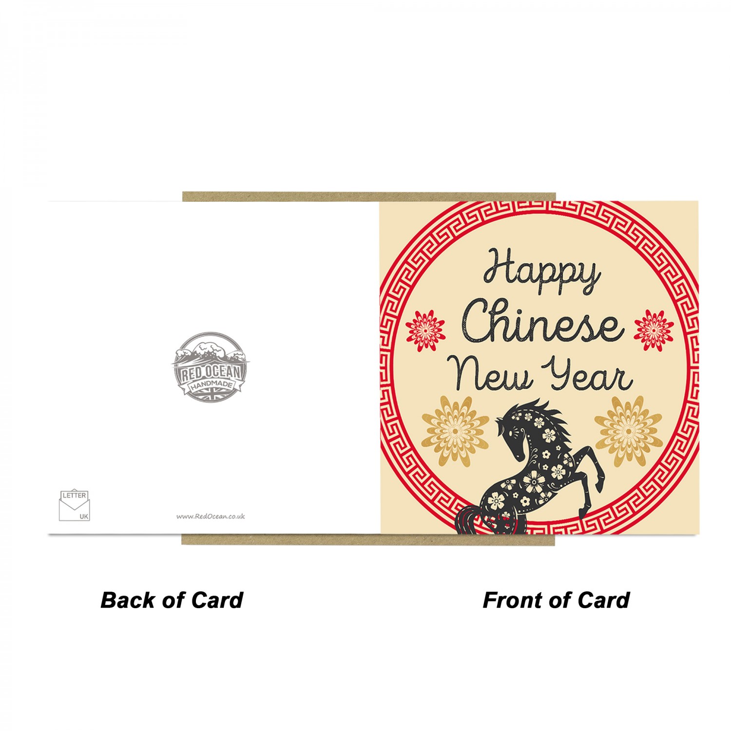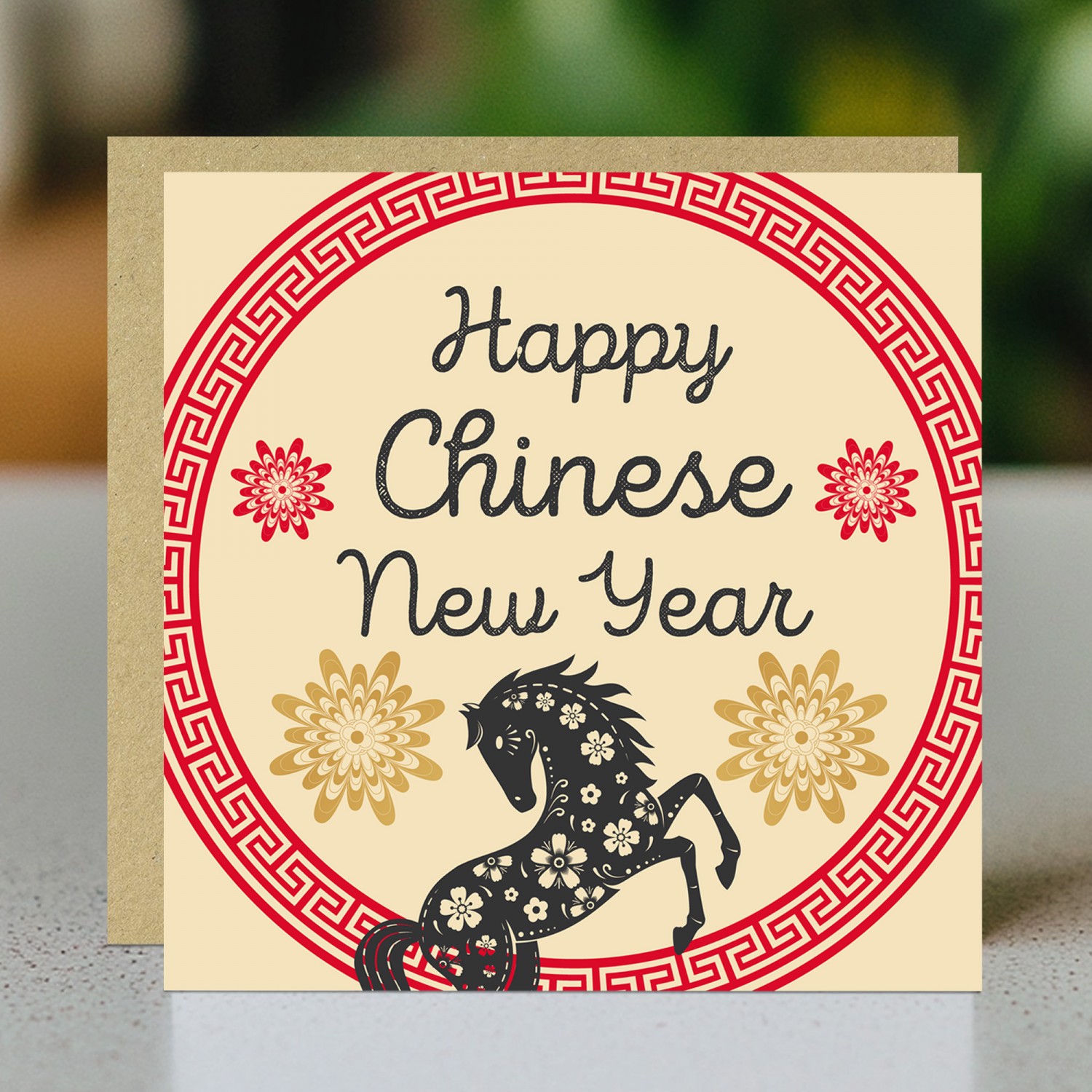 Printed in a 145 x 145mm square format, the card comes complete with a kraft brown envelope, making it suitable for gifting to family, friends, colleagues, clients, or business partners. The inside is blank, allowing you to add your own personalised New Year message.