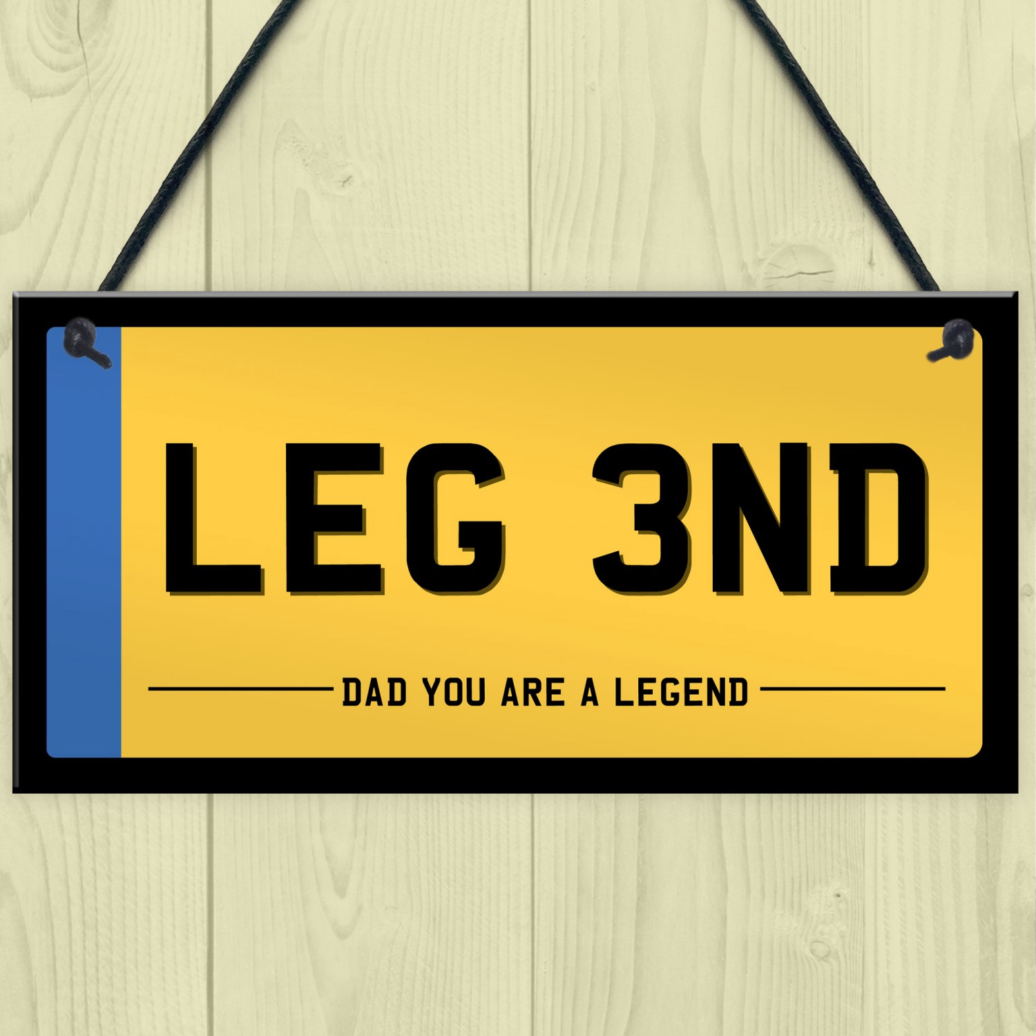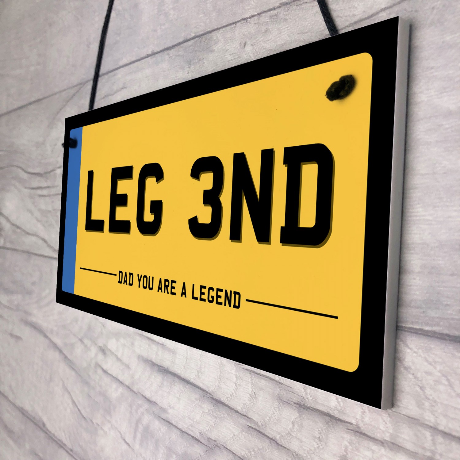 Celebrate the greatest man in your life with this bold and brilliant "LEG 3ND" novelty number plate sign. Styled just like a UK registration plate but with a fun personalised twist, this eye-catching sign makes the perfect gift for any dad who deserves a smile.