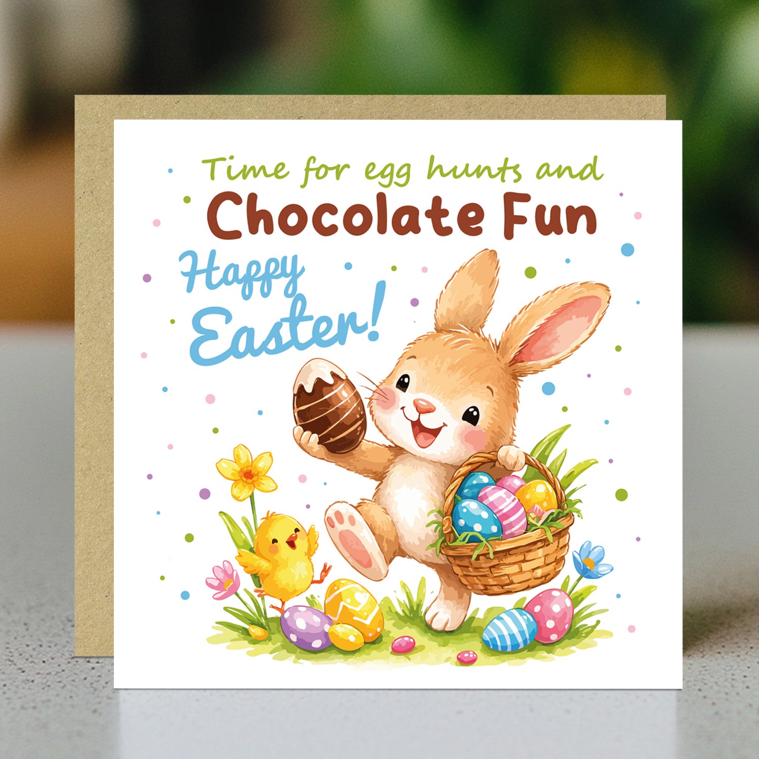 Each card comes with a stylish brown kraft envelope, perfectly complementing the playful Easter design while keeping the card protected and ready to send. Whether you are posting it or hand delivering it, this card is designed to make the recipient feel appreciated and remembered.