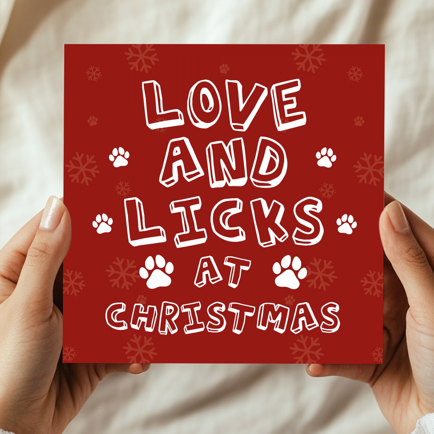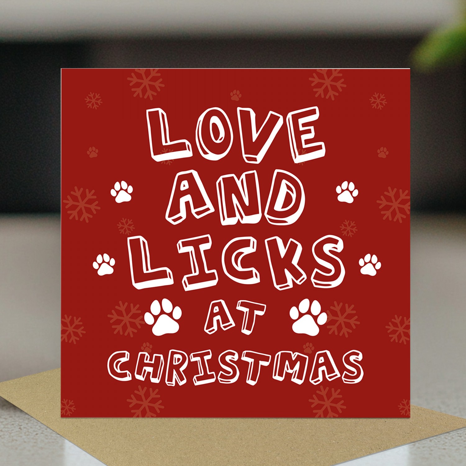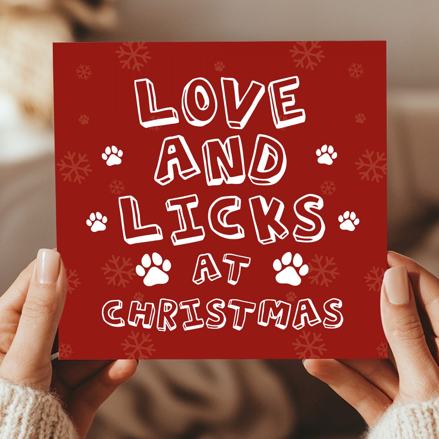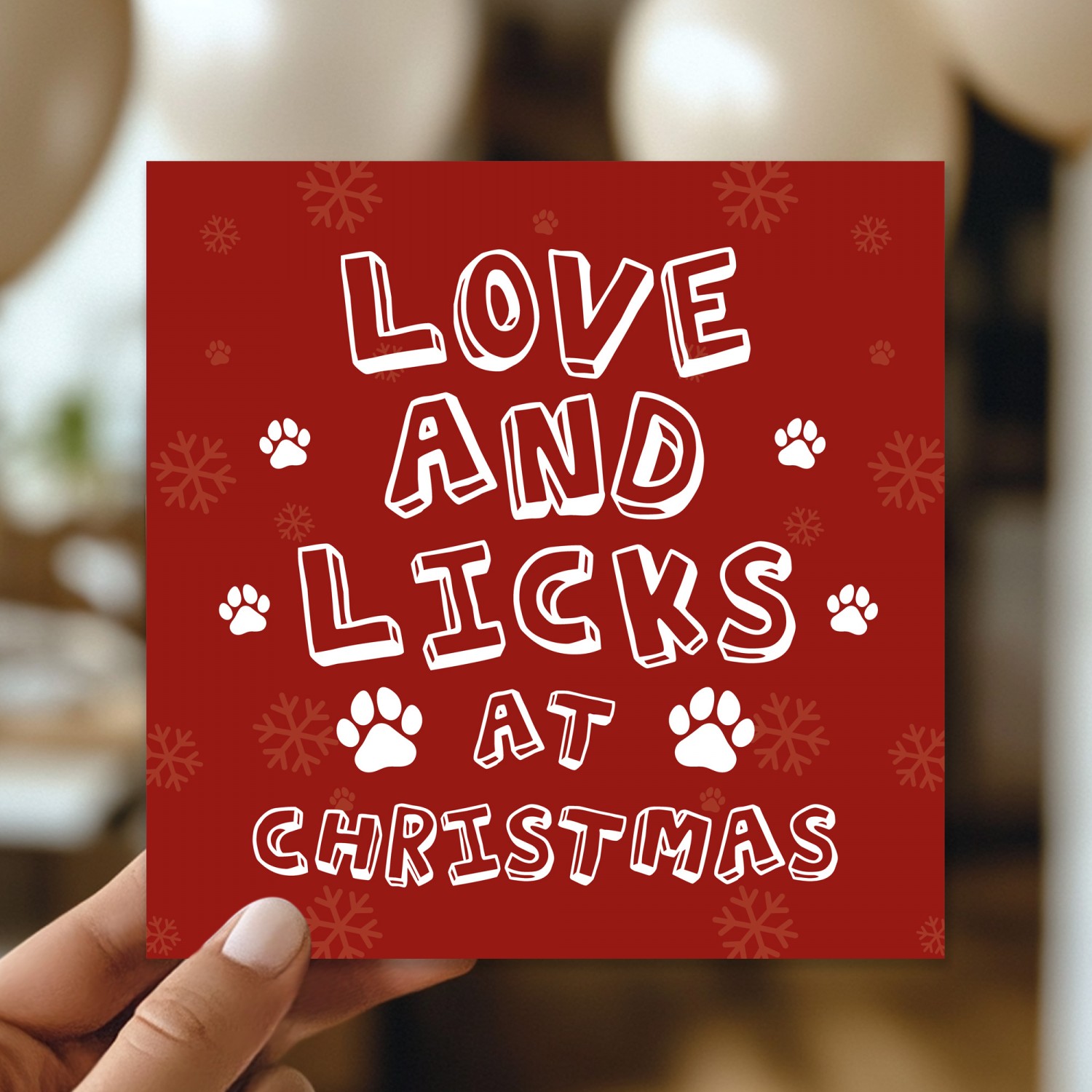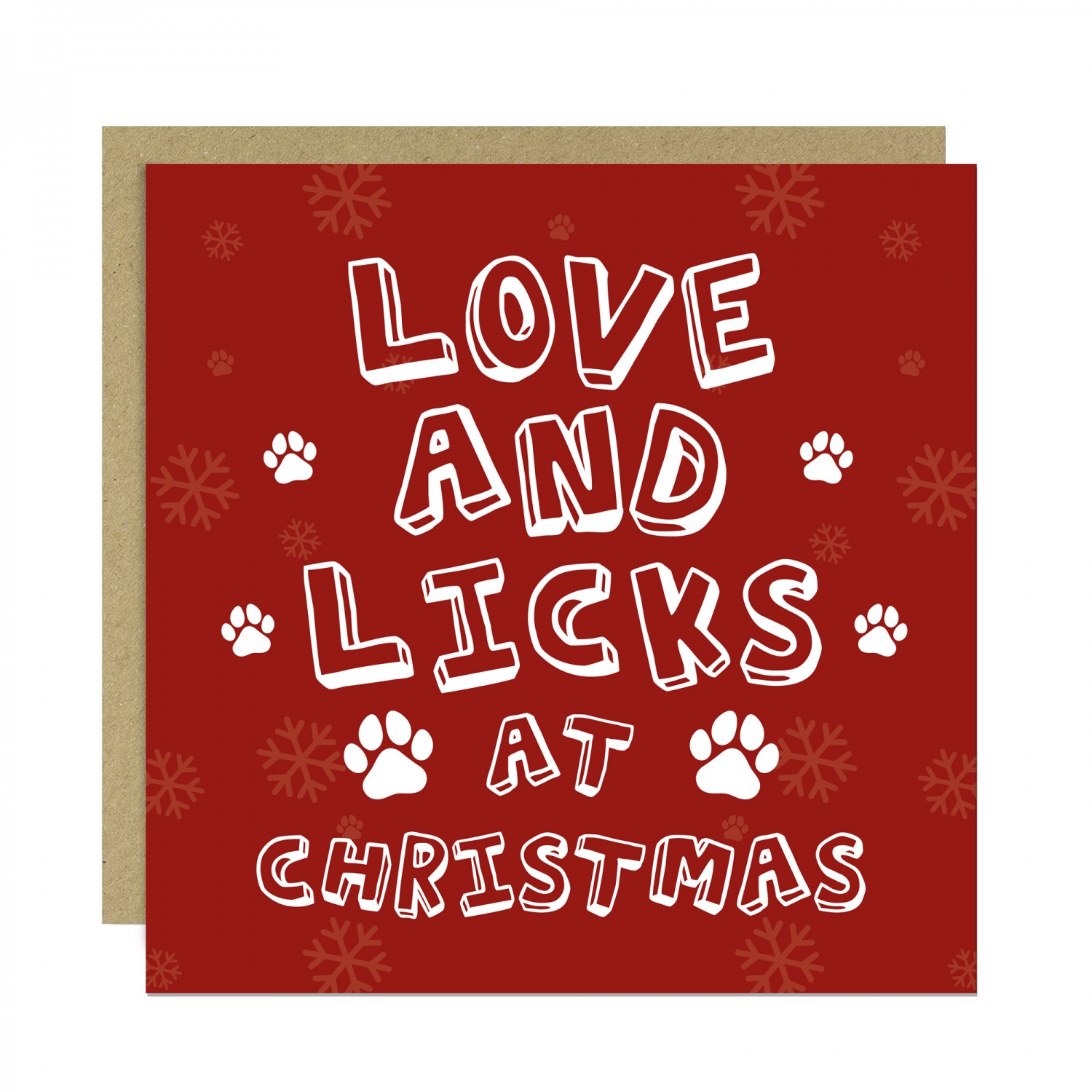 Funny Christmas Card From Dog Puppy LOVE AND LICKS Card For Mum